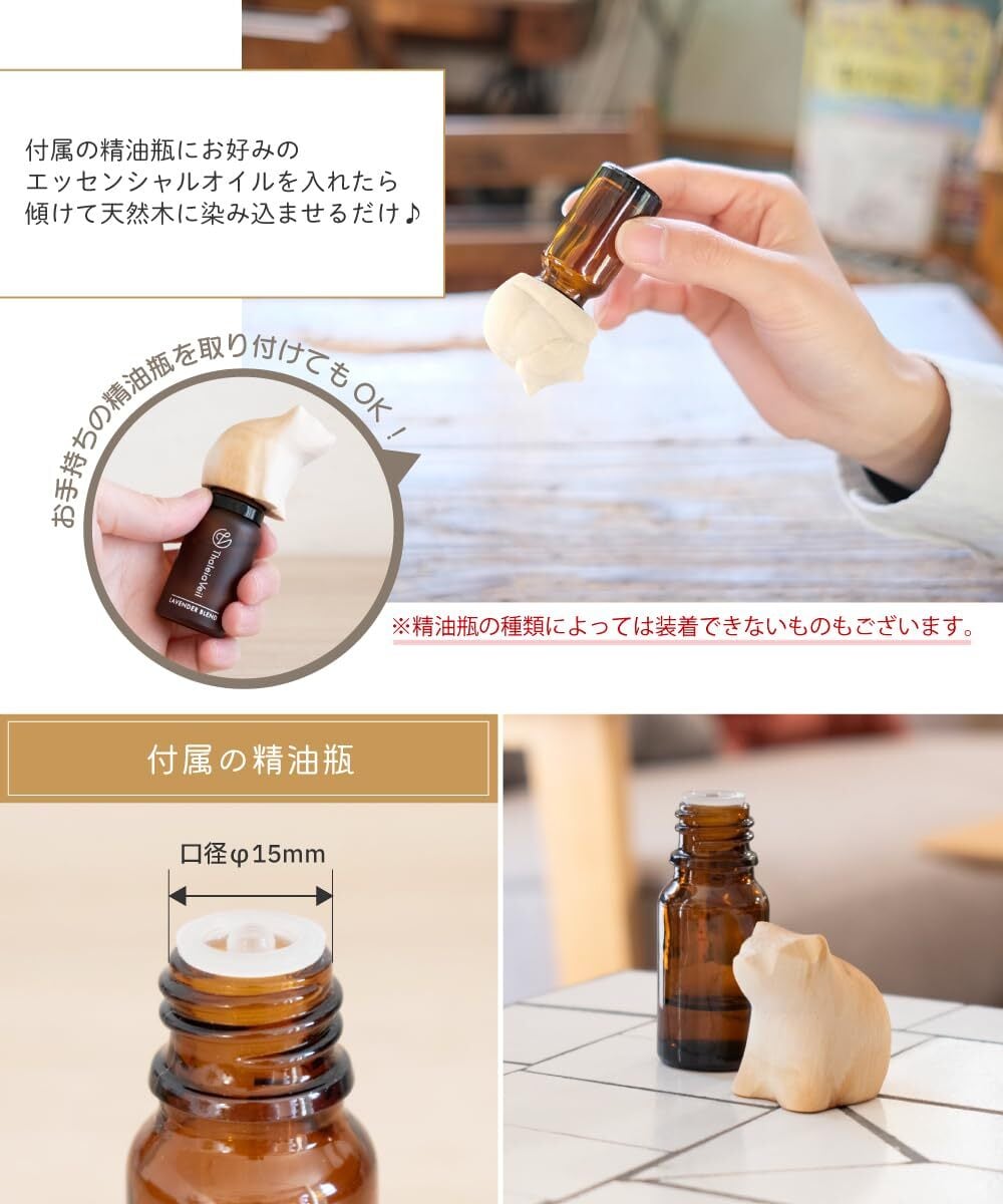 【エッセンシャルオイルを入れて傾けるだけ】 精油瓶付き アロマキャップ 天然木 水不要 気化式 アロマディフューザー 10ml アニマル パーソナルスペース うさぎ ラビット Rabbit
