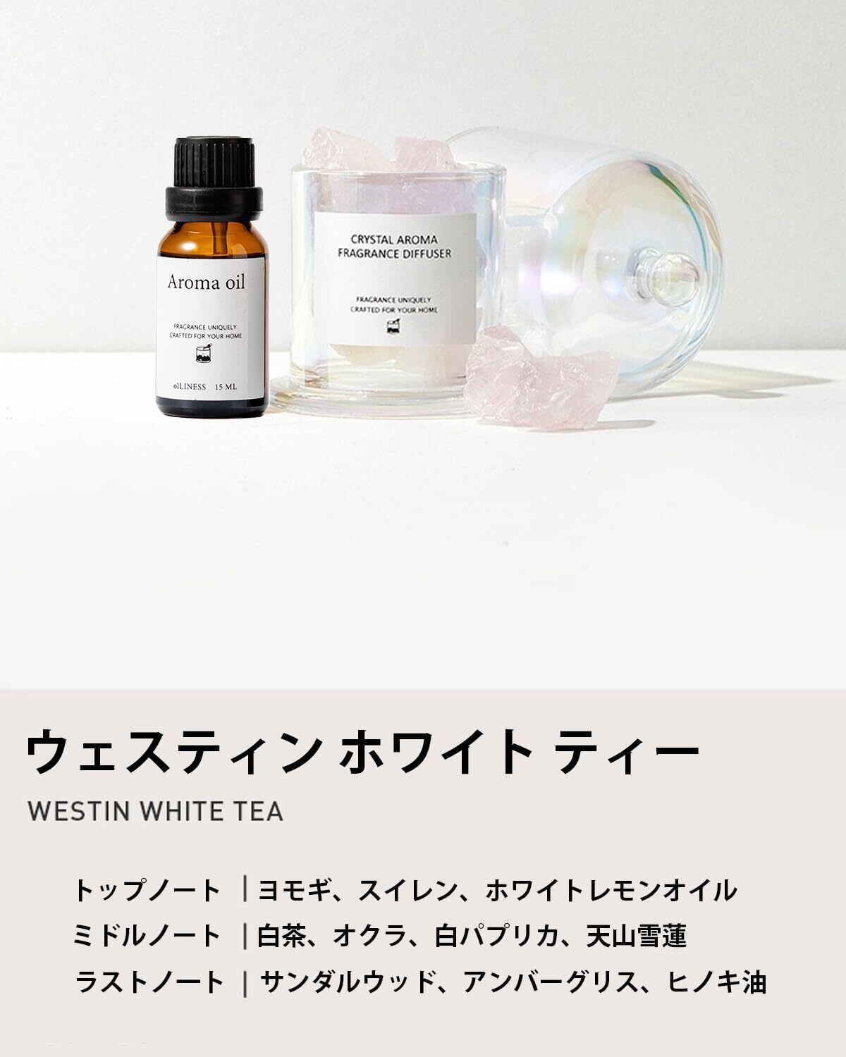 【調香】ウェスティン ホワイト ティー TOP:ヨモギ/スイレン/ホワイトレモンオイル MIDDLE:白茶/オクラ/白パプリカ/天山雪蓮 LAST:サンダルウッド/アンバーグリス/ヒノキ油