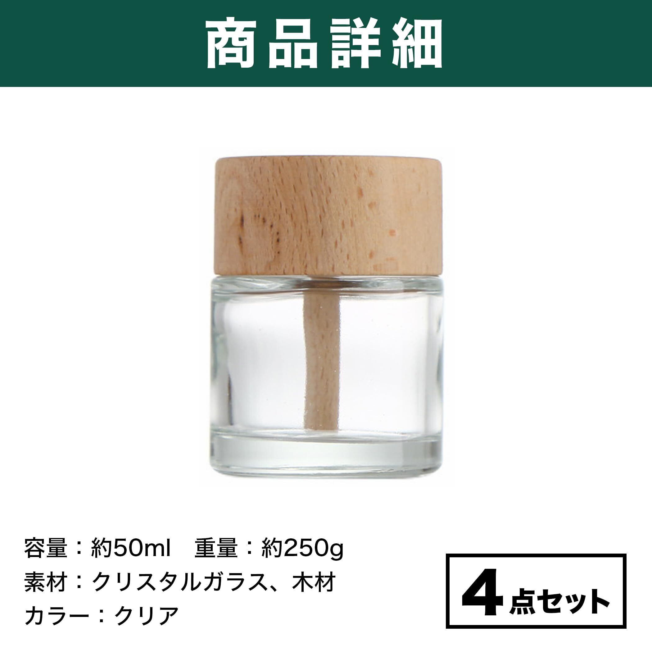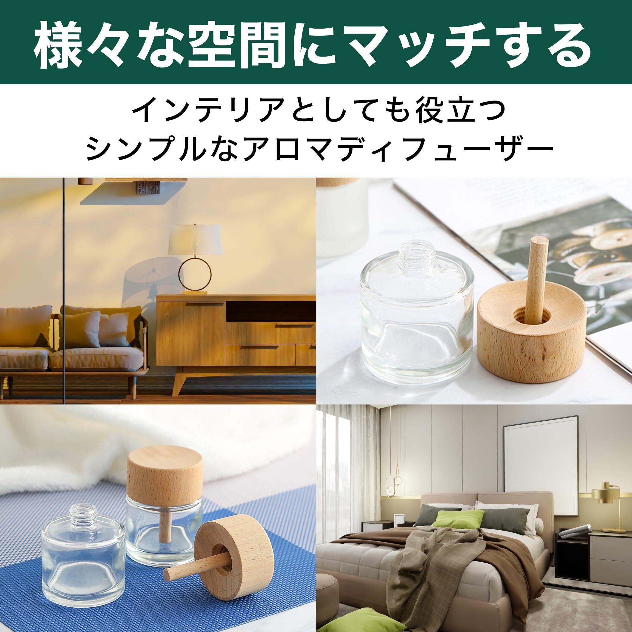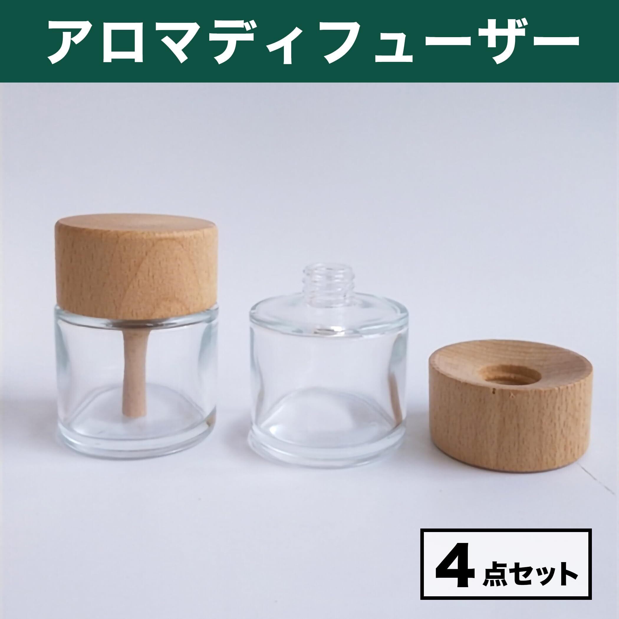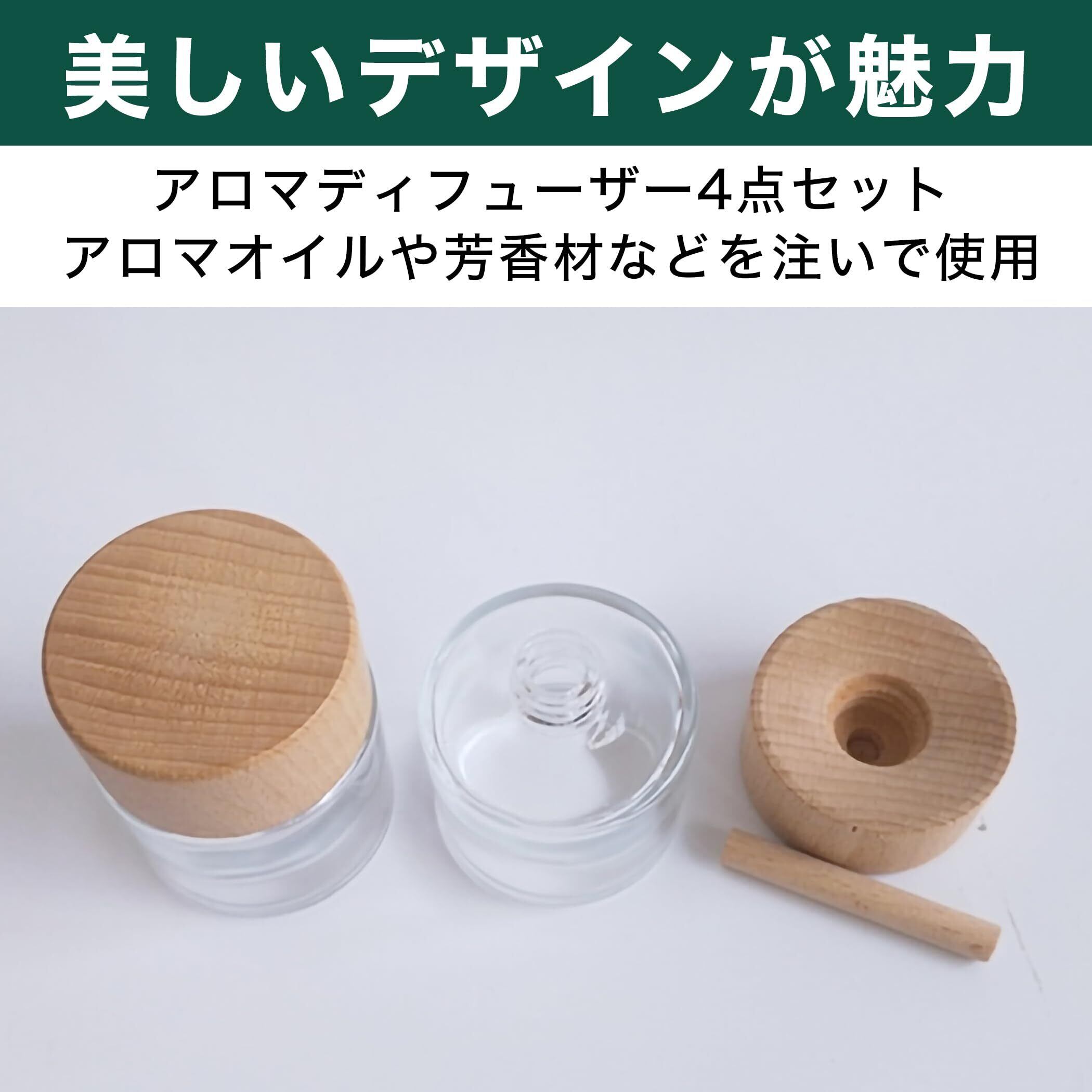 Felimoa アロマディフューザー クリスタルガラス製 木製キャップ 容量約50ml 4点セット