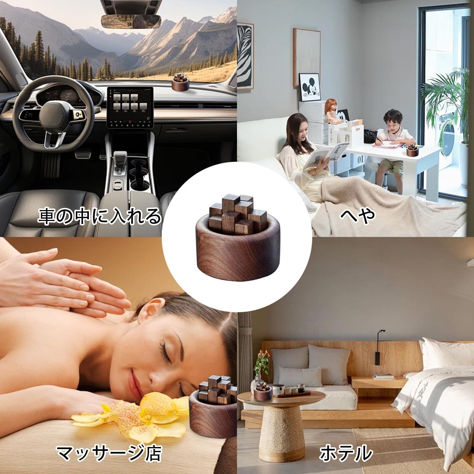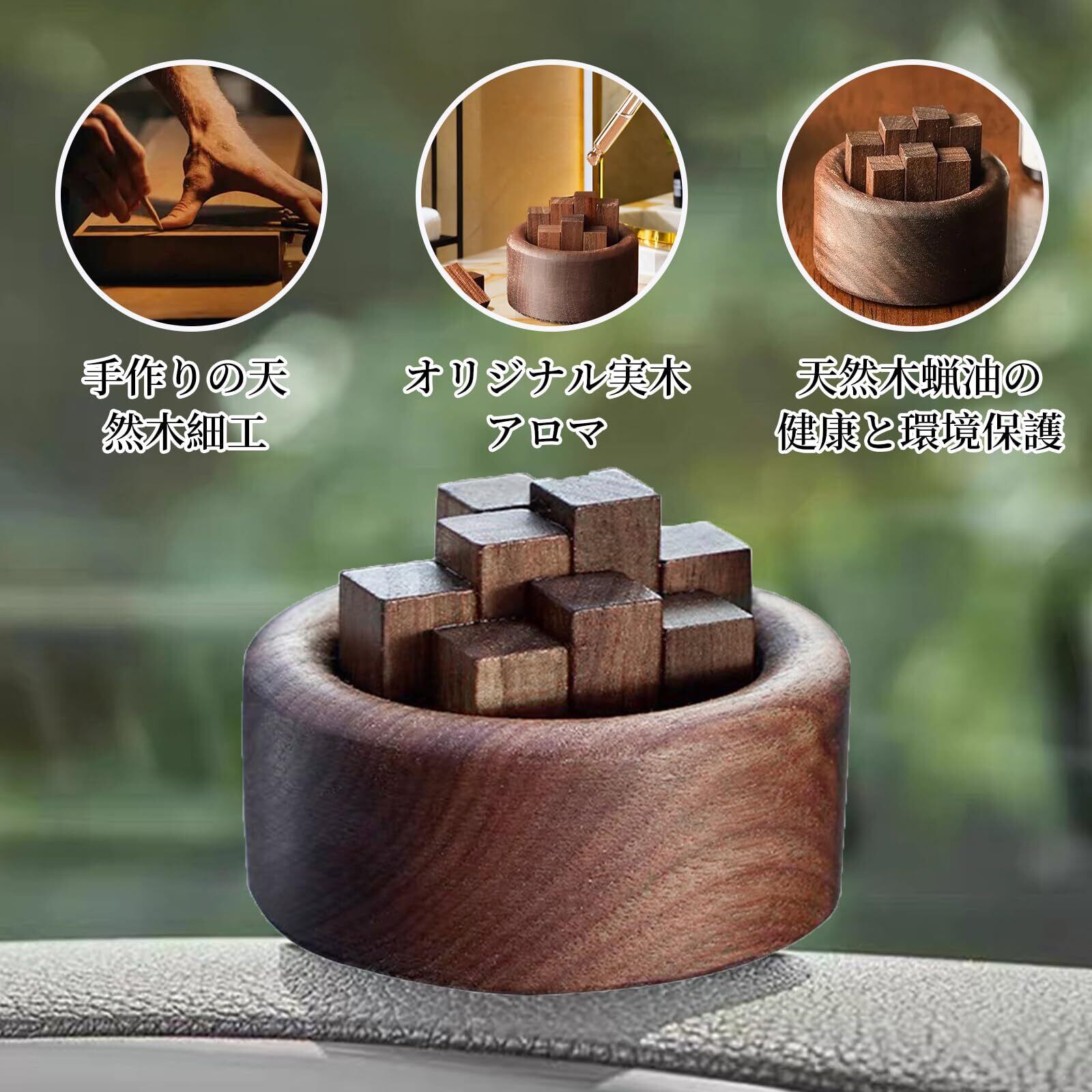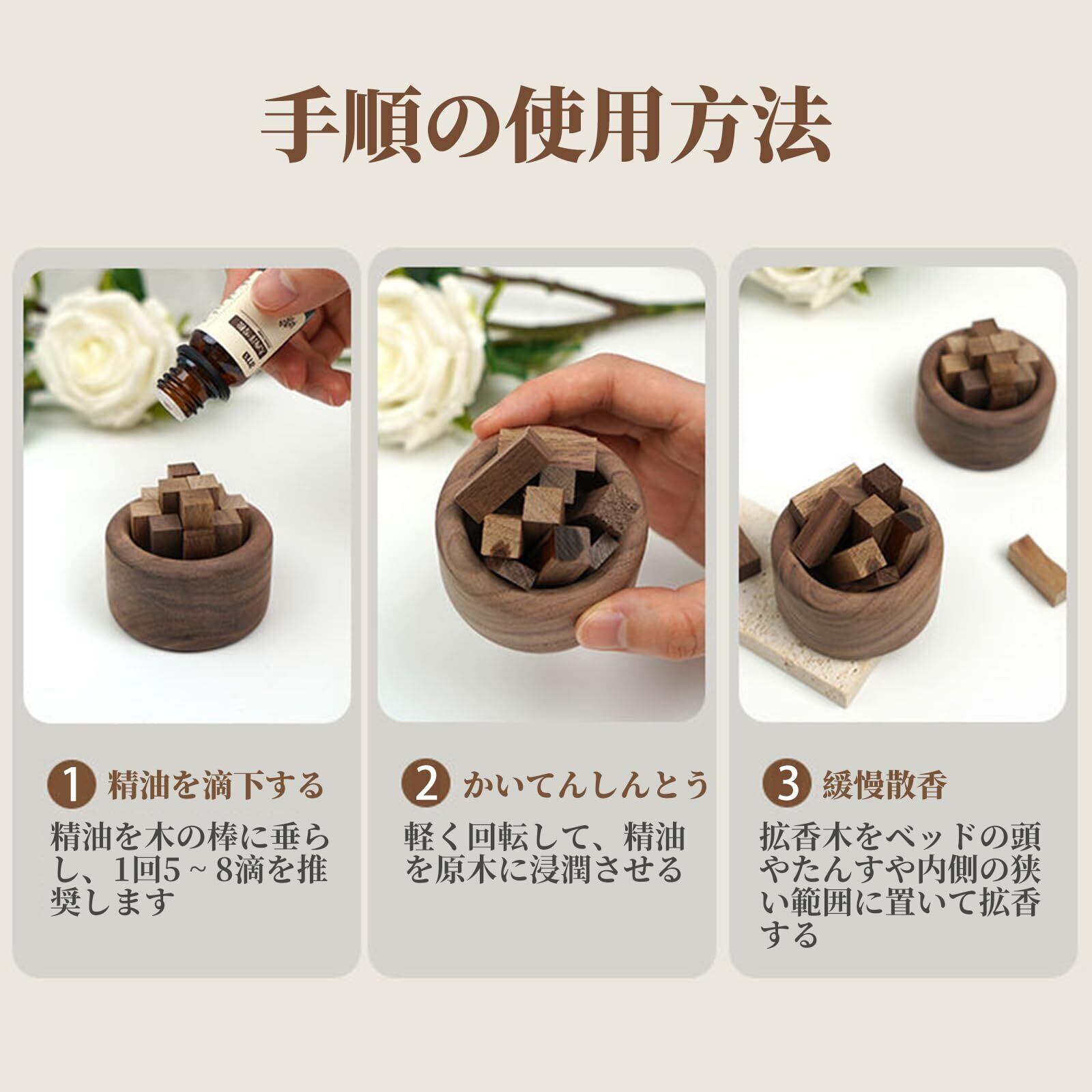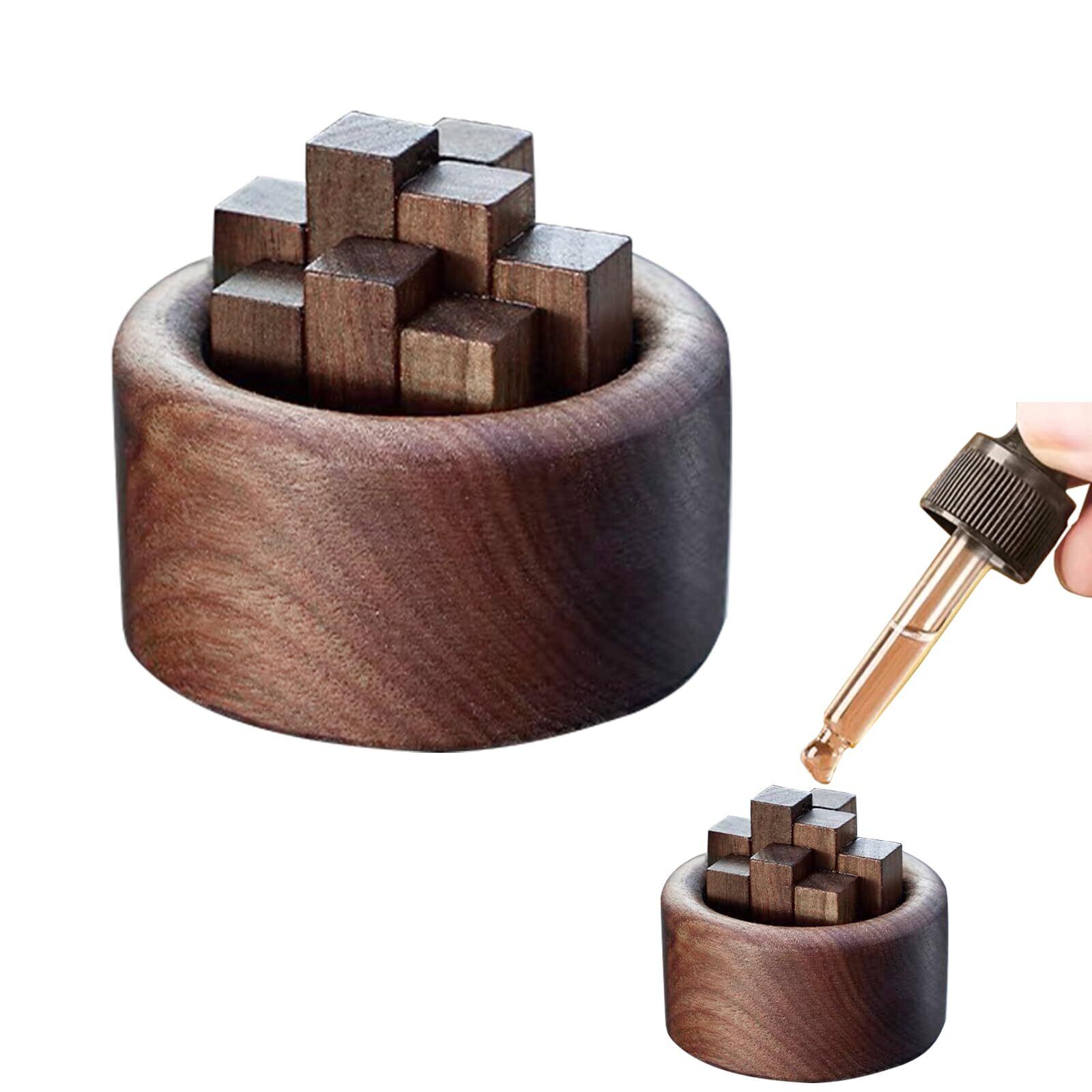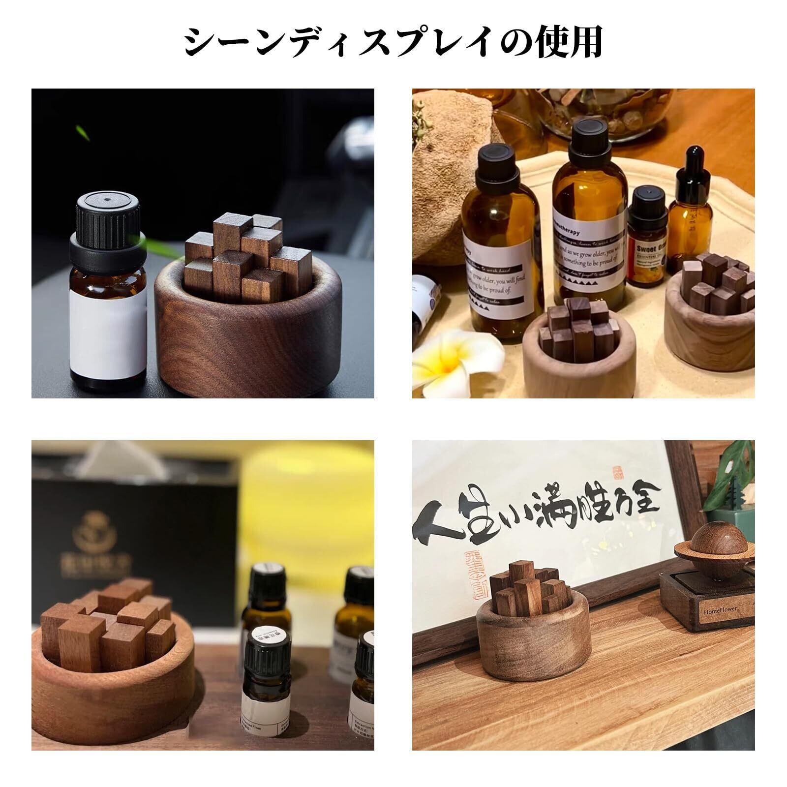 Doyeemei アロマディッシュ 木製 黒胡桃 アロマディフューザー 木目 アロマストーン ポータブル 車載 安眠 瞑想 芳香剤 玄関 アロマオイル
