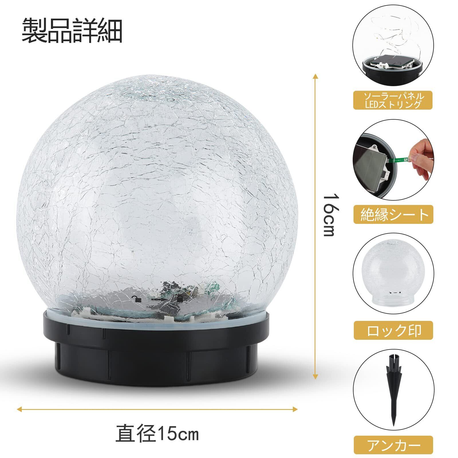 【特長】自社製~ 【お洒落なソーラーボールライト 直径15cmの割れガラスボールランプ、マルチカラーのLEDストリング ソーラーガーデンライト 】幻想的な雰囲気を醸しだす,ボリューム感の光。割れガラスならではの美しいマルチカラー発光色、イベント会場・お庭・公園・ガーデン・卓上のイルミネーションに最適。電源いらず、配線工事・電源不要なソーラー充電。