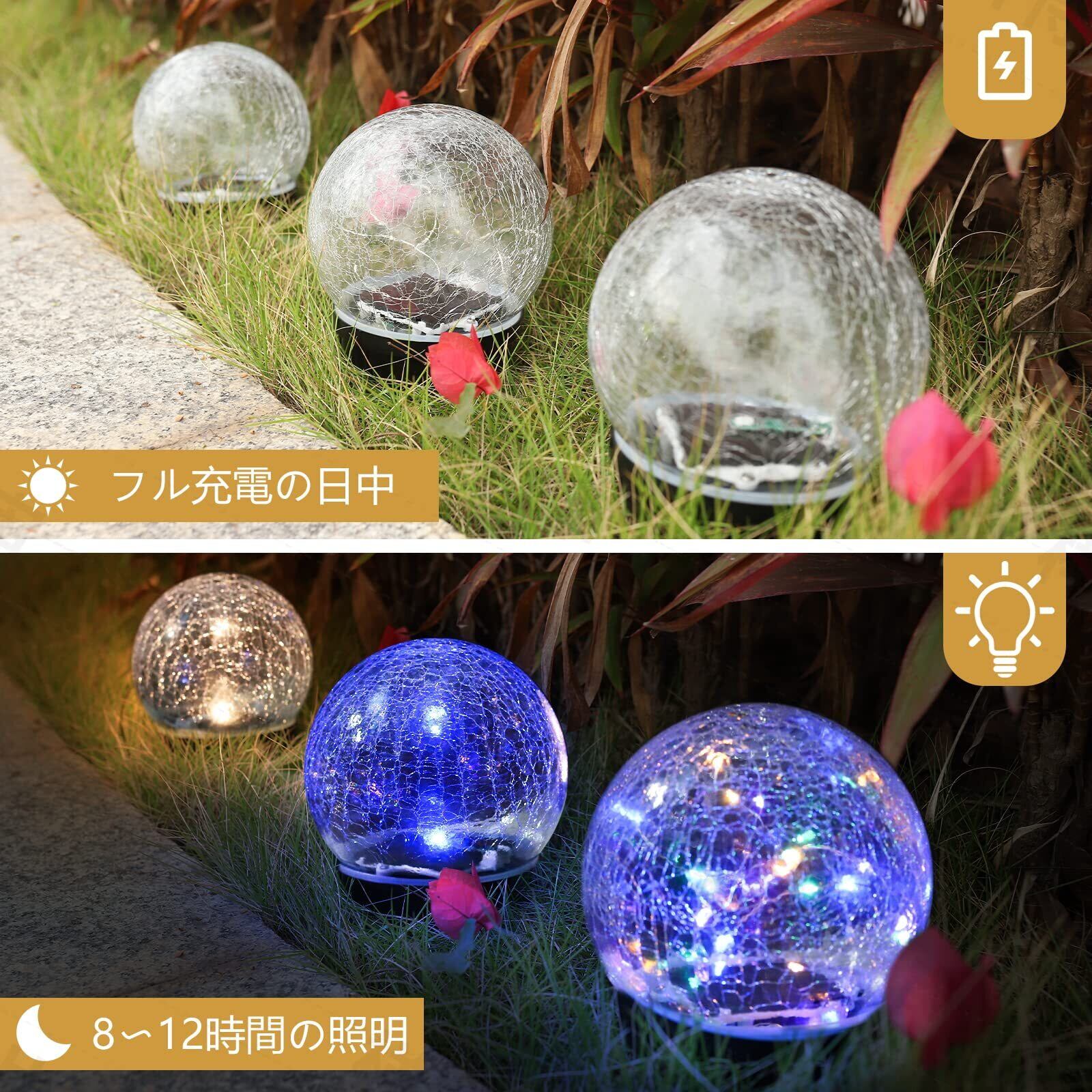 【一年間保証】ガーデンを美しく装飾するガラスボールライト、ポッと置くだけで手間いらず。お庭/パーティー会場などのイルミネーションのようなガーデンライトとして最適.