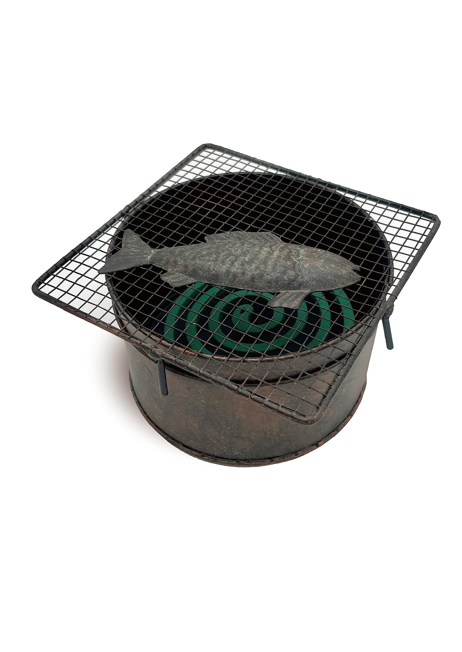 【 2024年 MWLife 蚊取り線香入れ 】 蚊取線香 ホルダー 器 皿 蚊遣り 蚊やり 蚊取り器 蚊遣り器 おしゃれ 七輪 魚 オブジェ インテリア 虫除け 置物 アイアン ブリキ アンティーク調