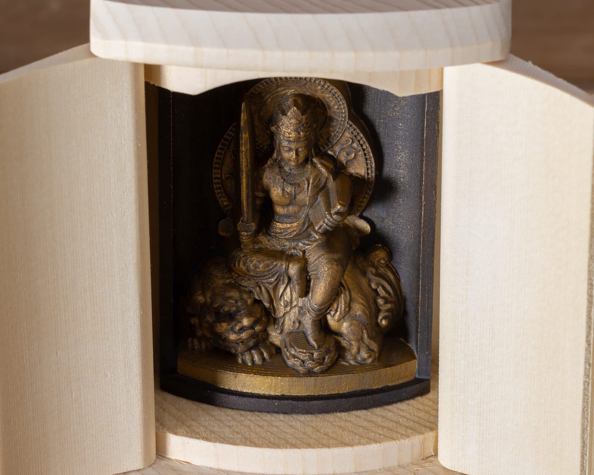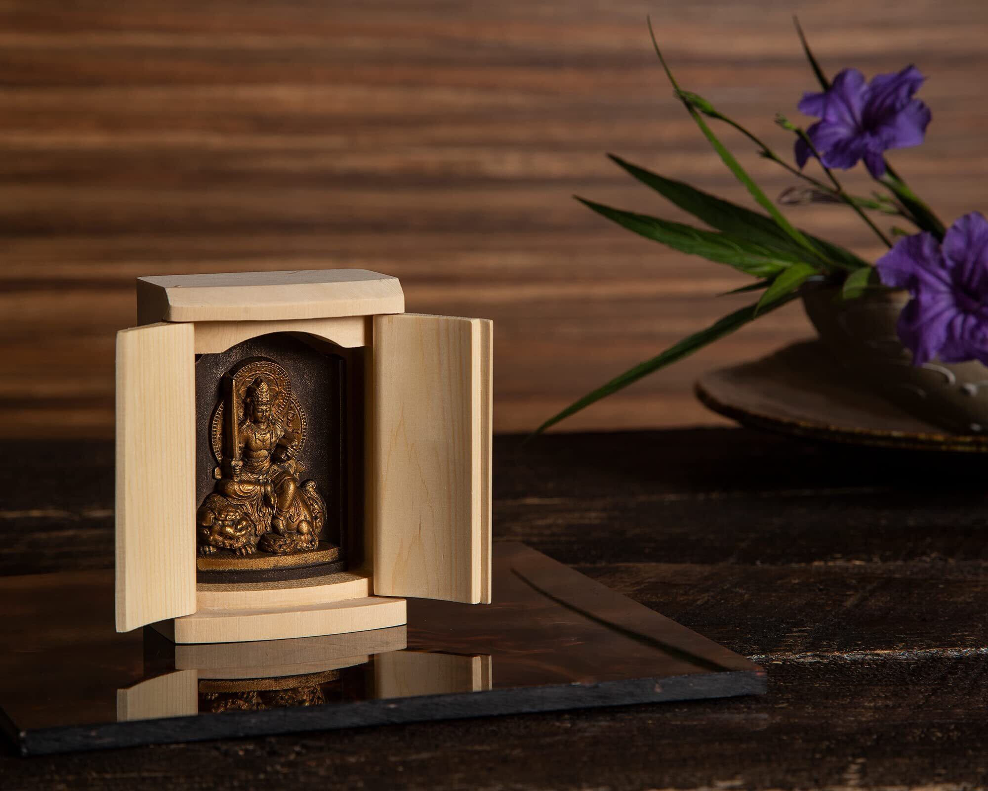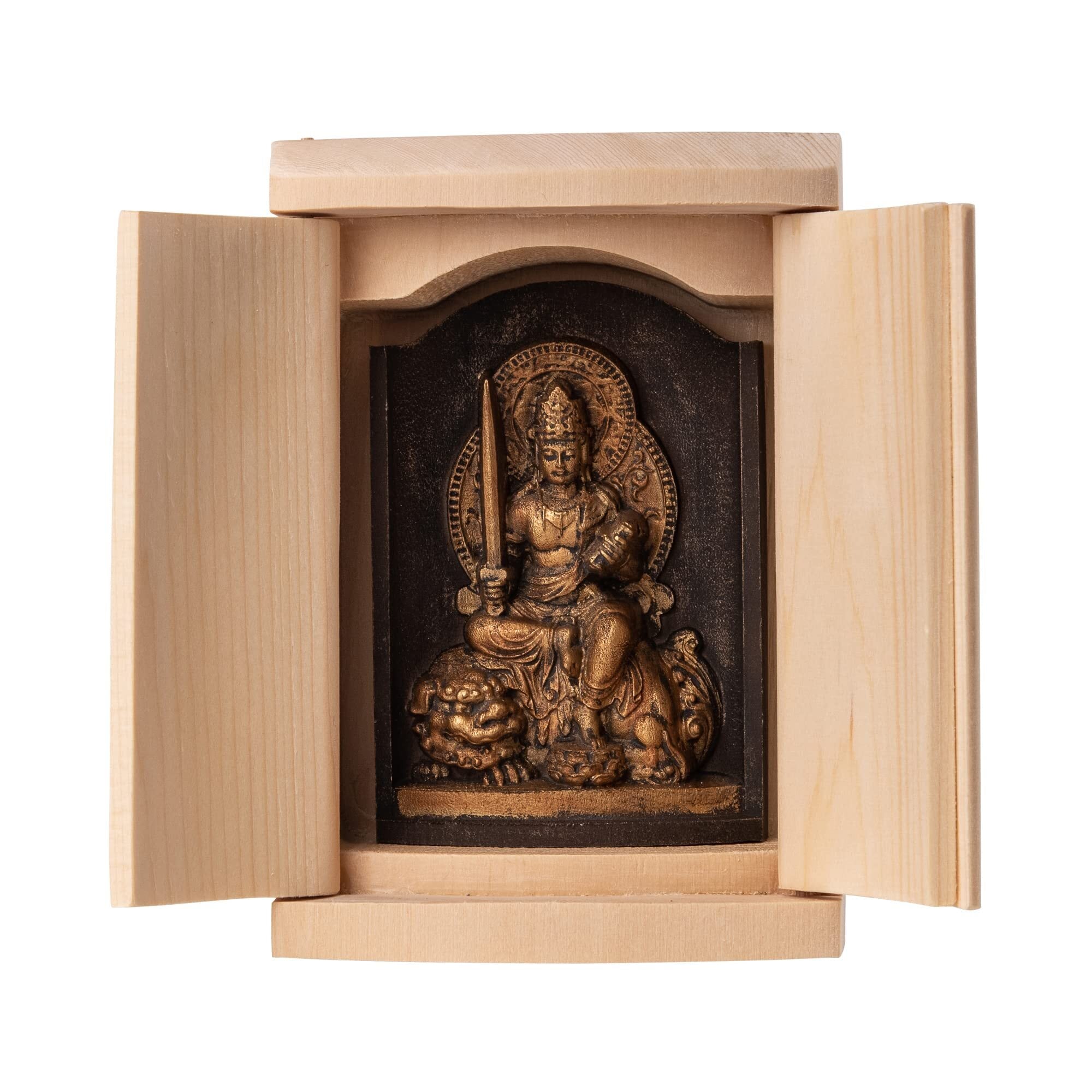 是空 文殊菩薩 厨子入りの仏像(金古美仕上げ) 高野山金剛三昧院御祈祷_卯年生まれ 十二支御守り本尊 干支(T00254-C