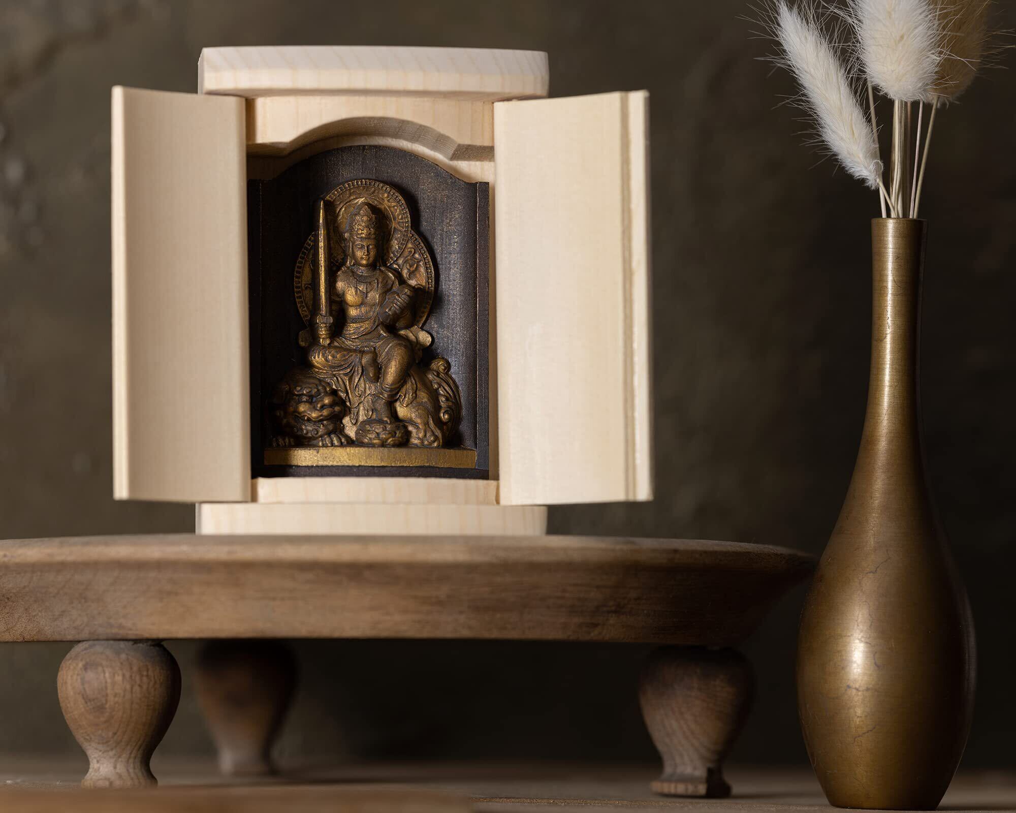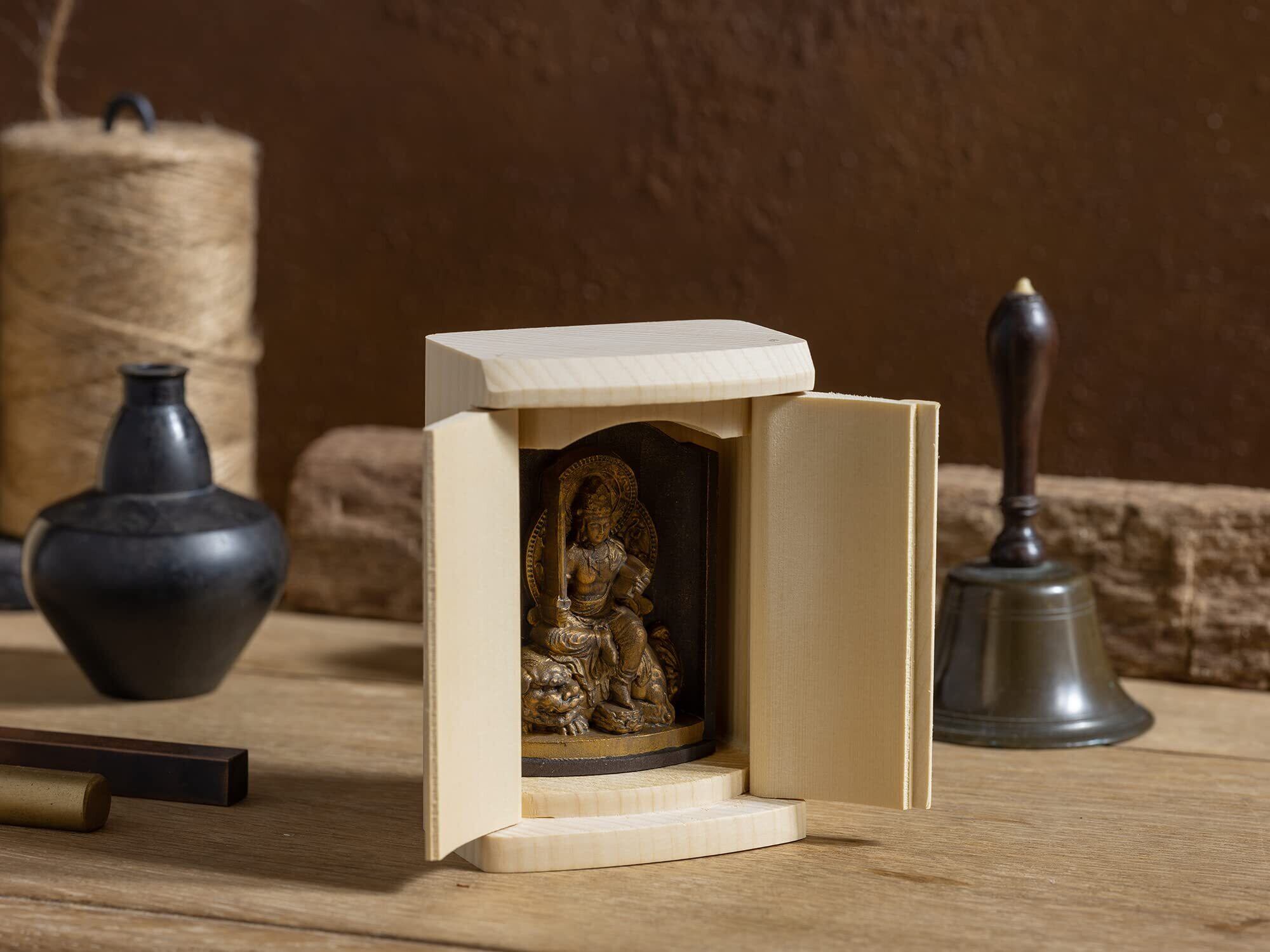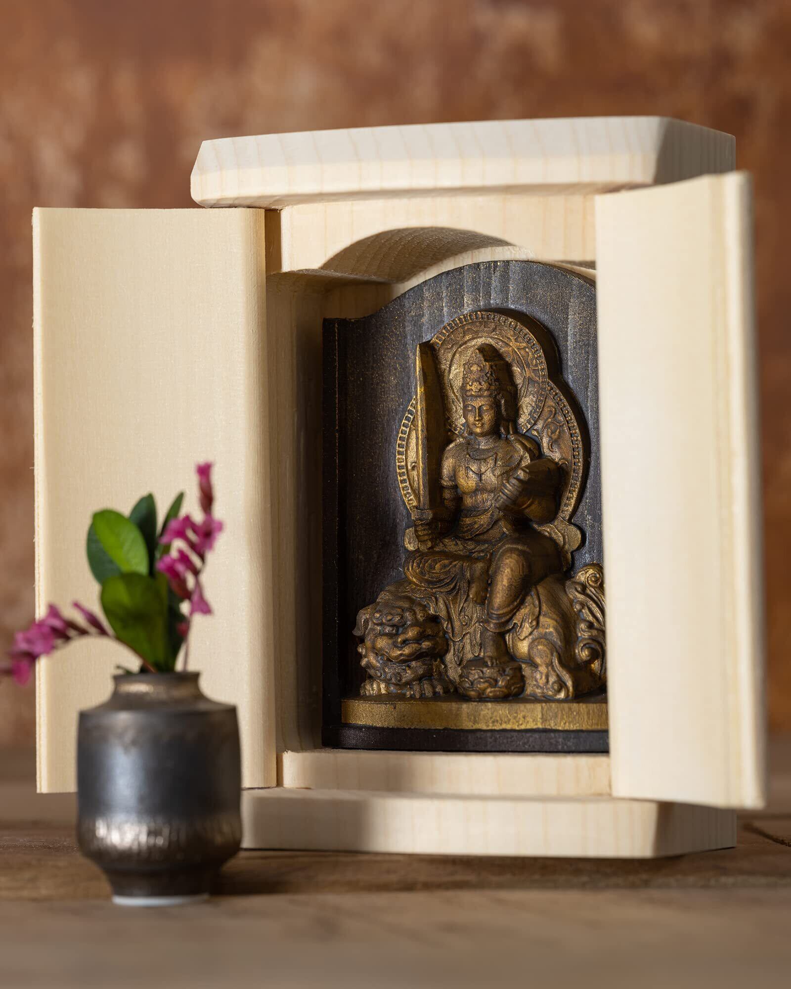 是空 文殊菩薩 厨子入りの仏像(金古美仕上げ) 高野山金剛三昧院御祈祷_卯年生まれ 十二支御守り本尊 干支(T00254-C