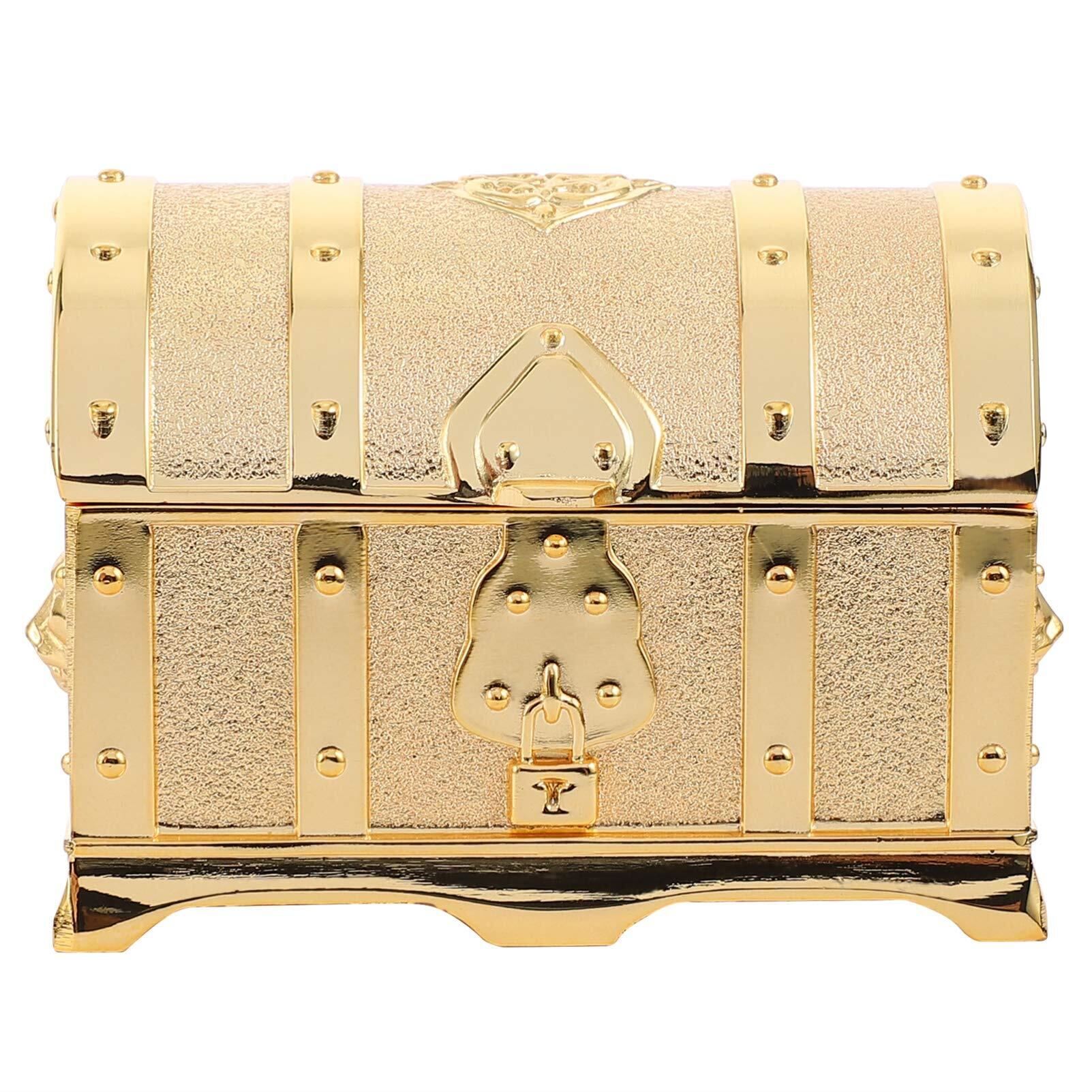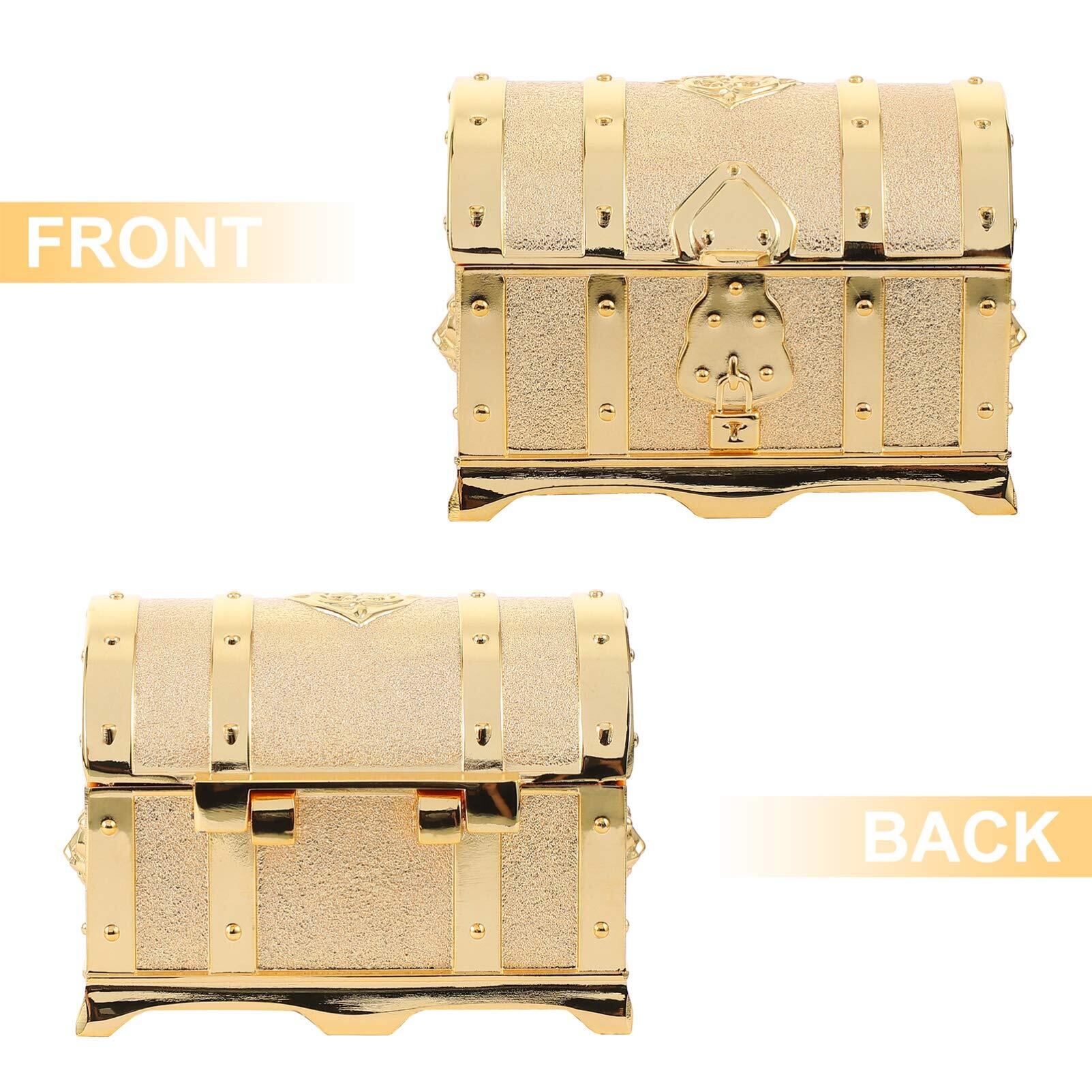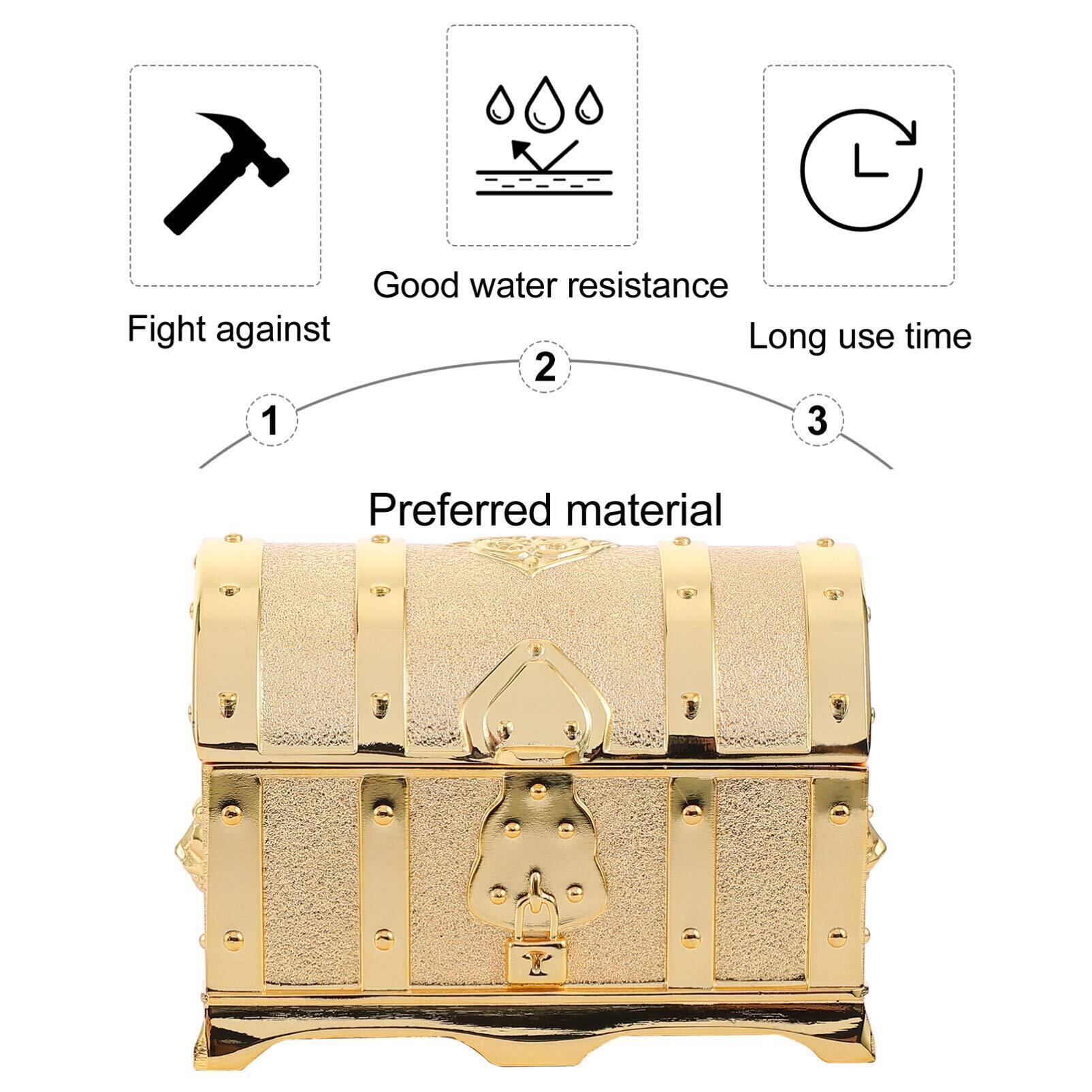 FRCOLOR 宝箱 ジュエリー箱 レトロ宝箱 アンティーク 宝石箱 鍵付き 南京錠付き 海賊 木箱 小物入れ アンティーク箱 貯金箱 見せる収納 撮影小物 ジュエリーボックス アクセサリー入れ ゴールド