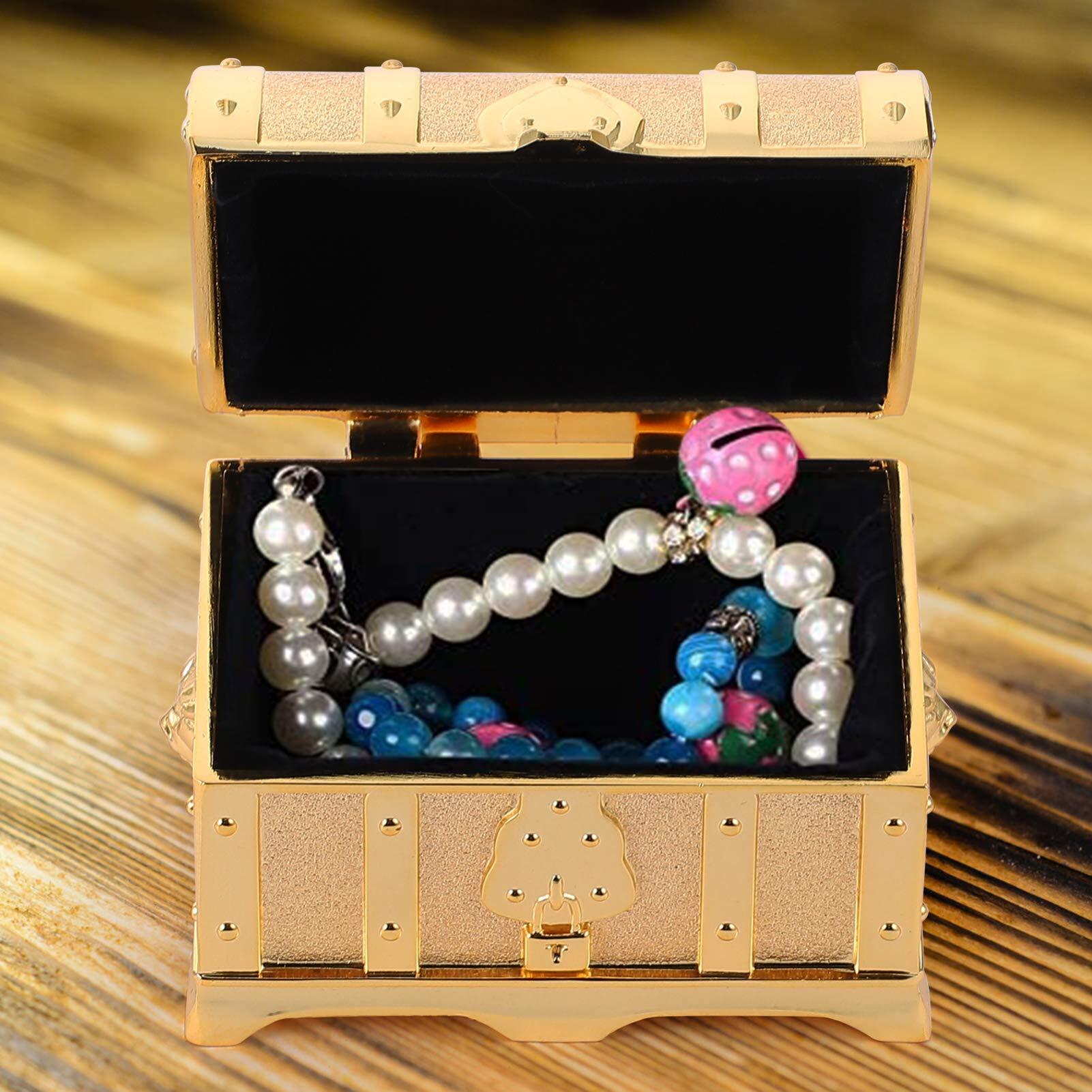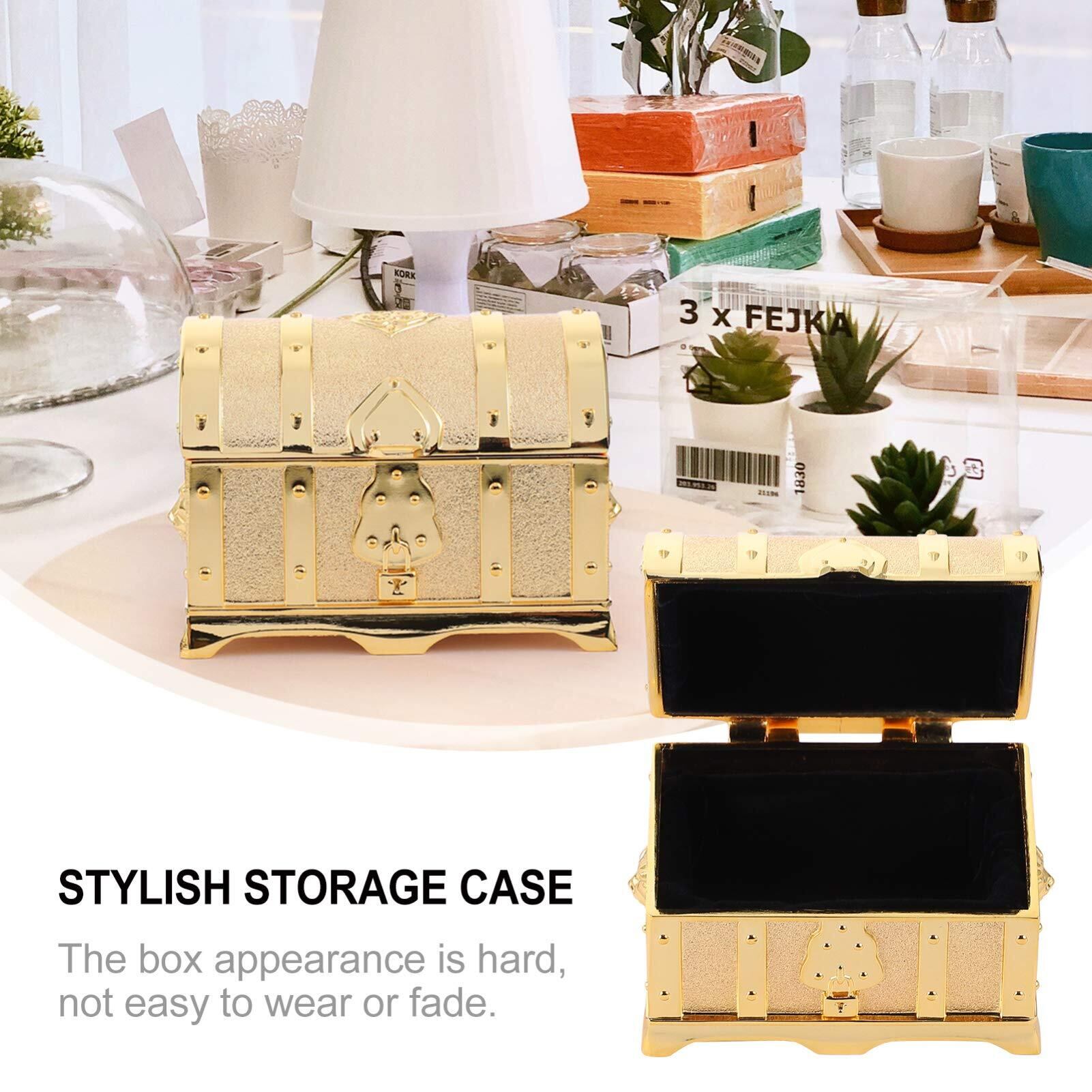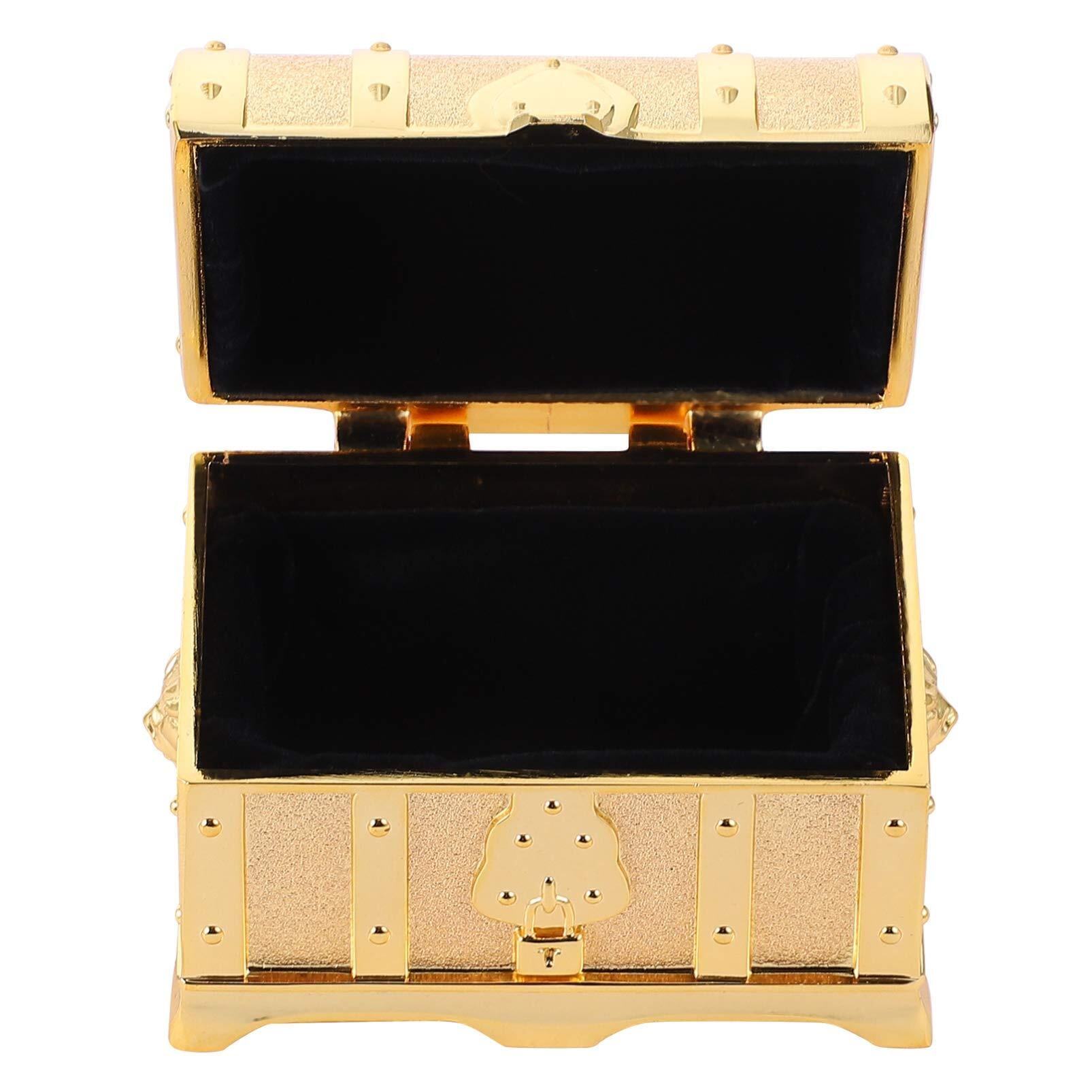 FRCOLOR 宝箱 ジュエリー箱 レトロ宝箱 アンティーク 宝石箱 鍵付き 南京錠付き 海賊 木箱 小物入れ アンティーク箱 貯金箱 見せる収納 撮影小物 ジュエリーボックス アクセサリー入れ ゴールド