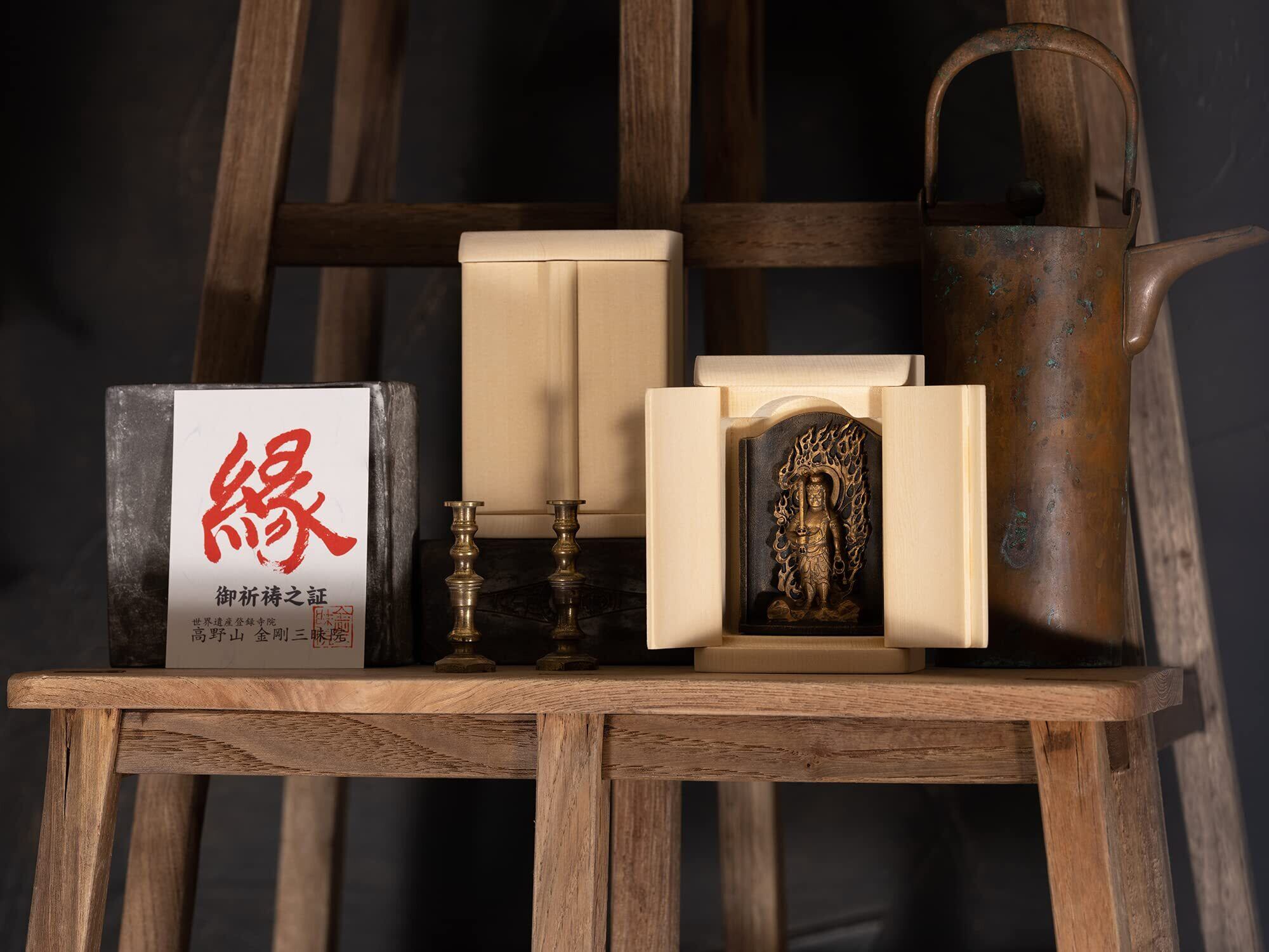 備考:本製品は高野山金剛三昧院にて御祈祷を賜っています。天然木のため木目等は選べません。尊像部はアンティーク調の金古美彩色でカスレなどを表現しております。