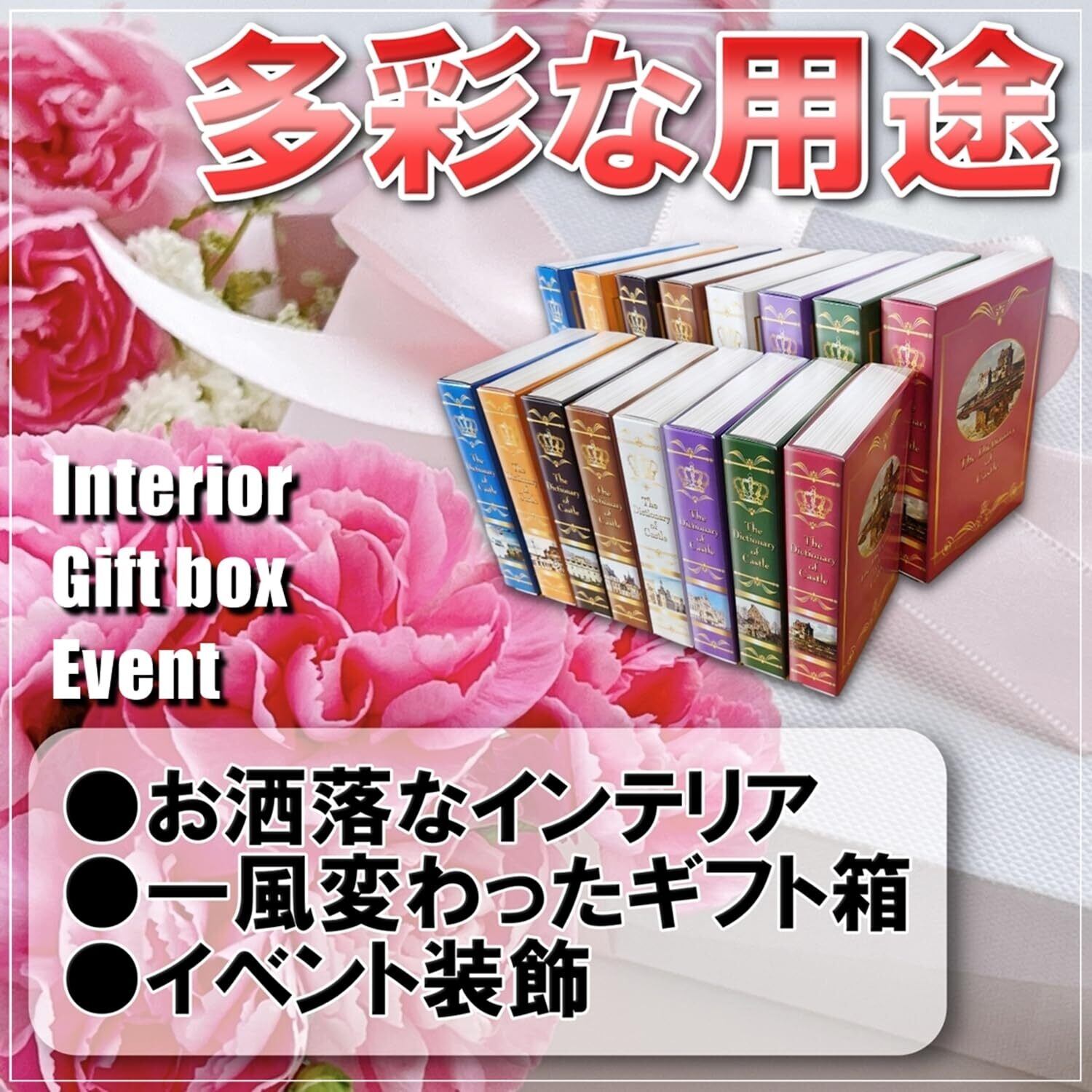 辞書を模した、洋書型のフェイク本です。本棚・空きスペースのスペーサーやお洒落な室内インテリアとしてご活用いただけます。もちろんギフト箱や化粧箱としてもお使いいただけます。