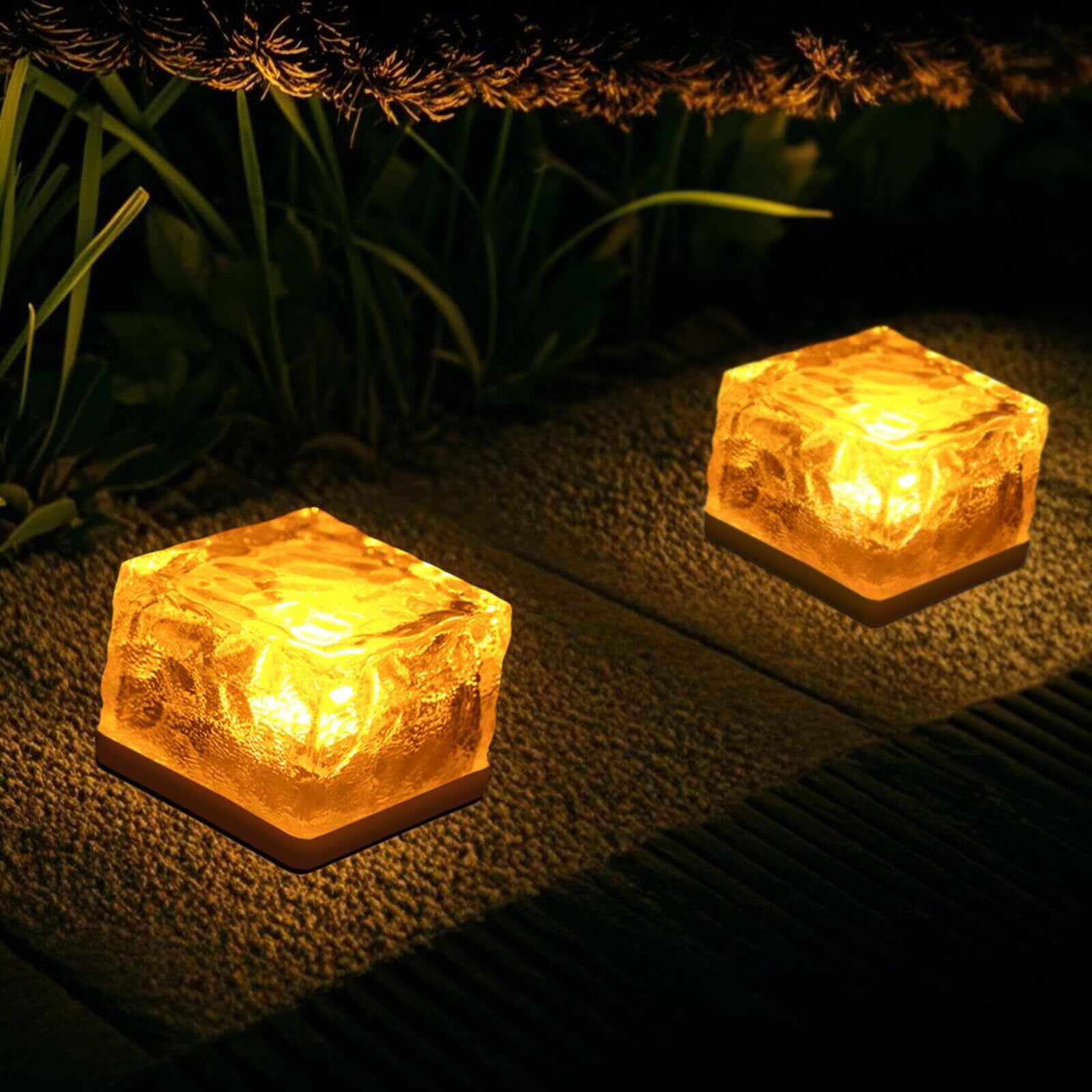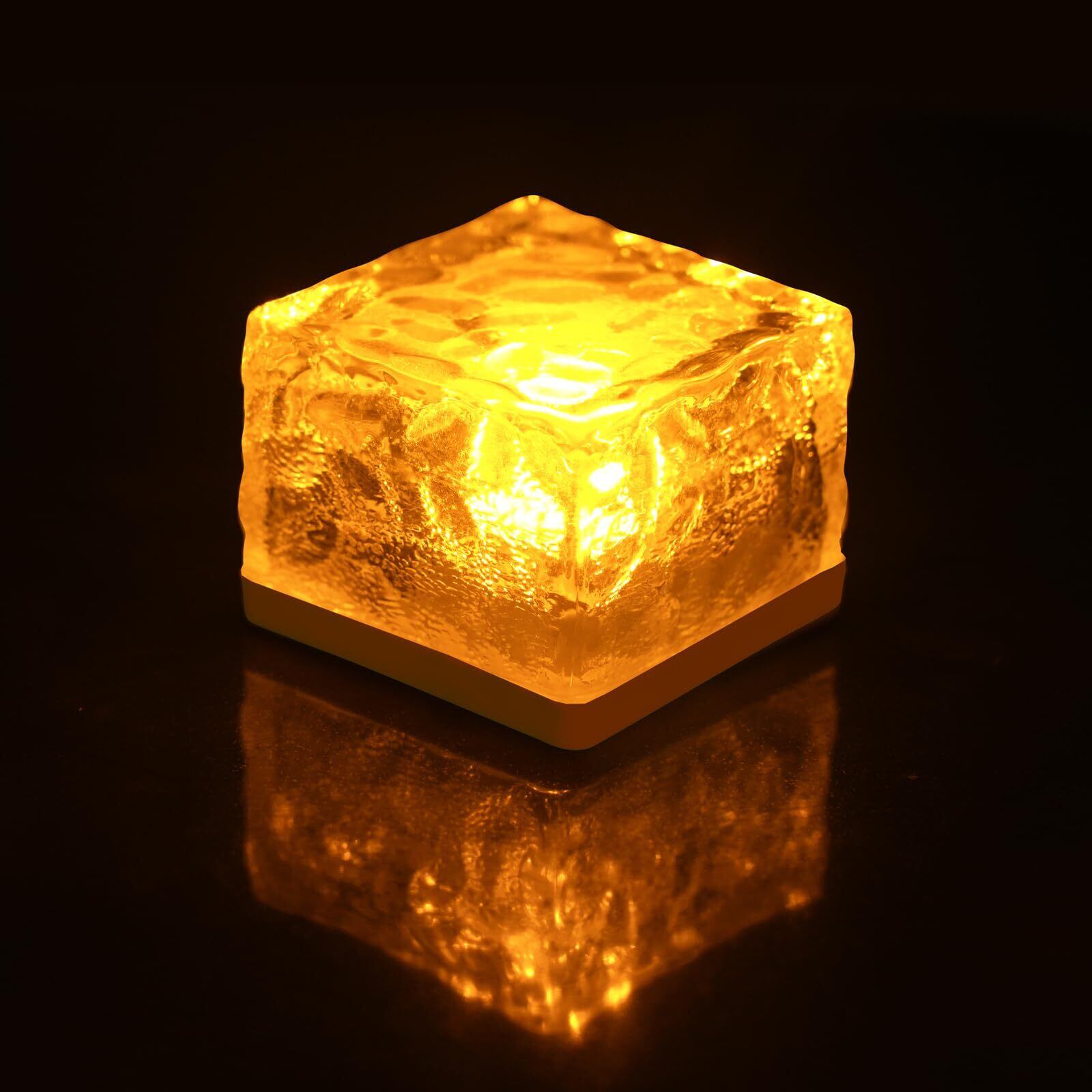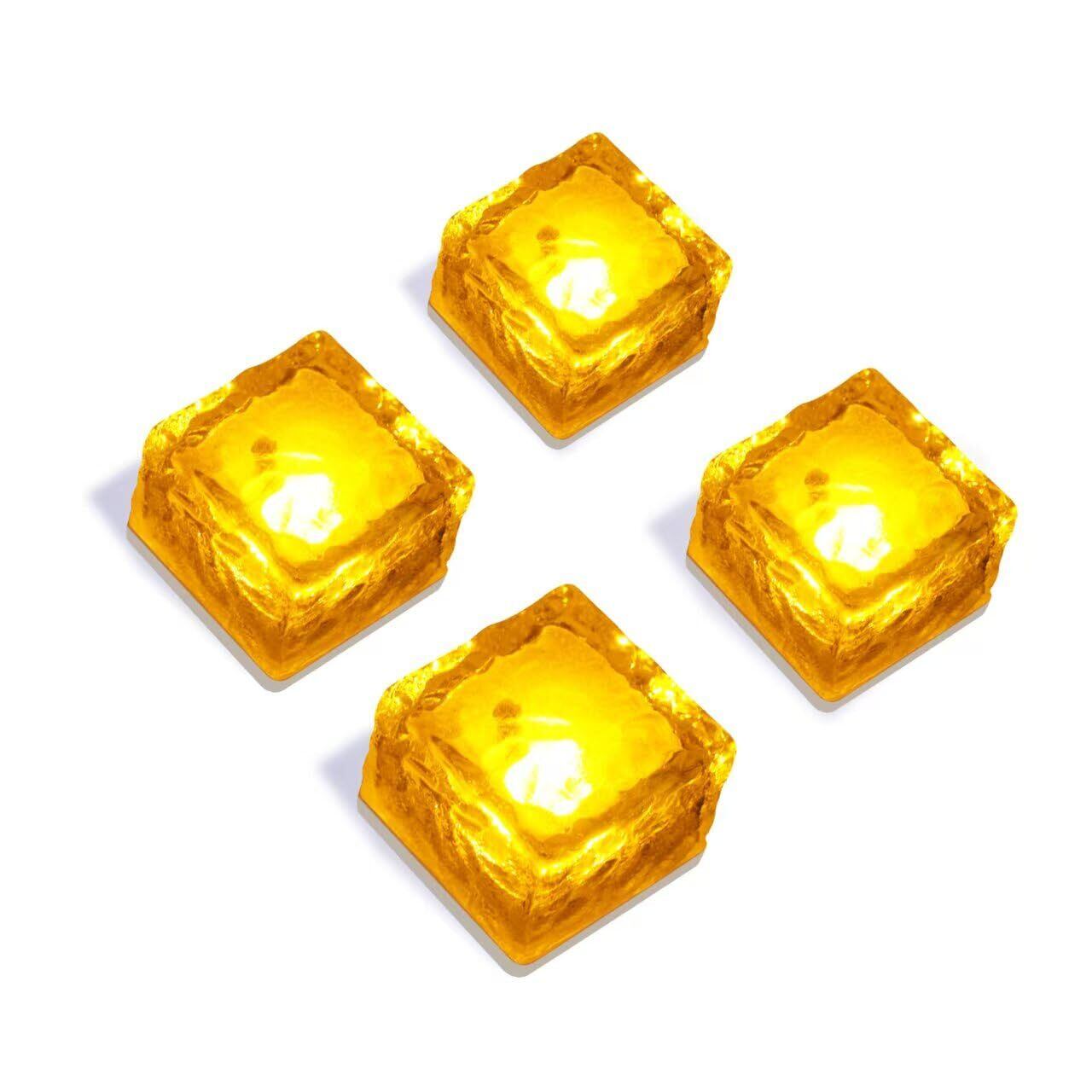 【新着商品】置くだけ!! GWSOLAR ソーラーライト ナトリウム灯色 4個セット埋め込み式 ガーデンライト【美しいブリックアイス模様の角ガラスから流れる幻想的な光り!!】アンティーク調 幻想的なLED 自動点灯消灯 IP65防水 地中埋め込み 置物ライト 7cm角サイズお庭 歩道 卓上 ガーデン テラス ベランダランタン 装飾 GWソーラー 型番: GW-GS101/N 4pcs | paghag