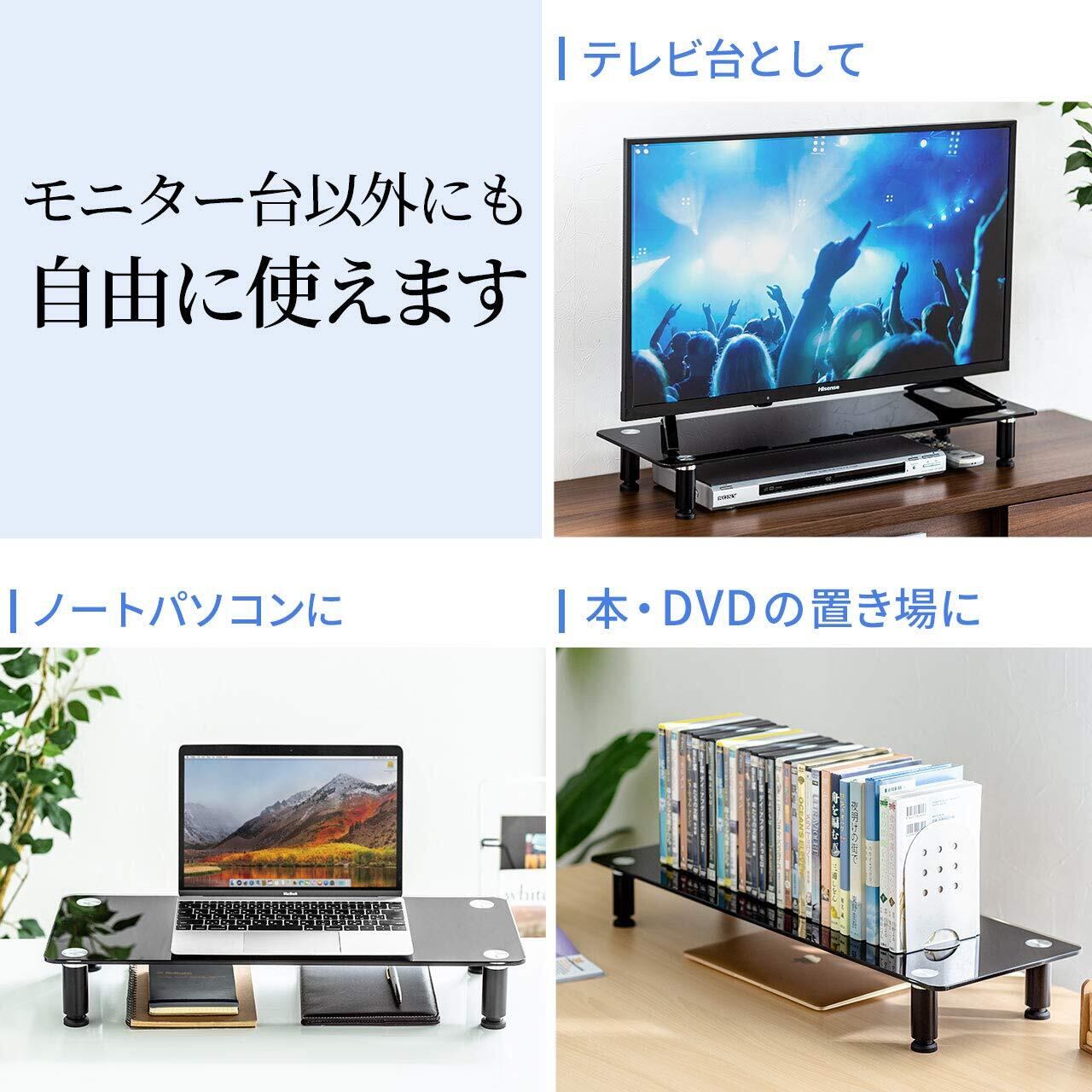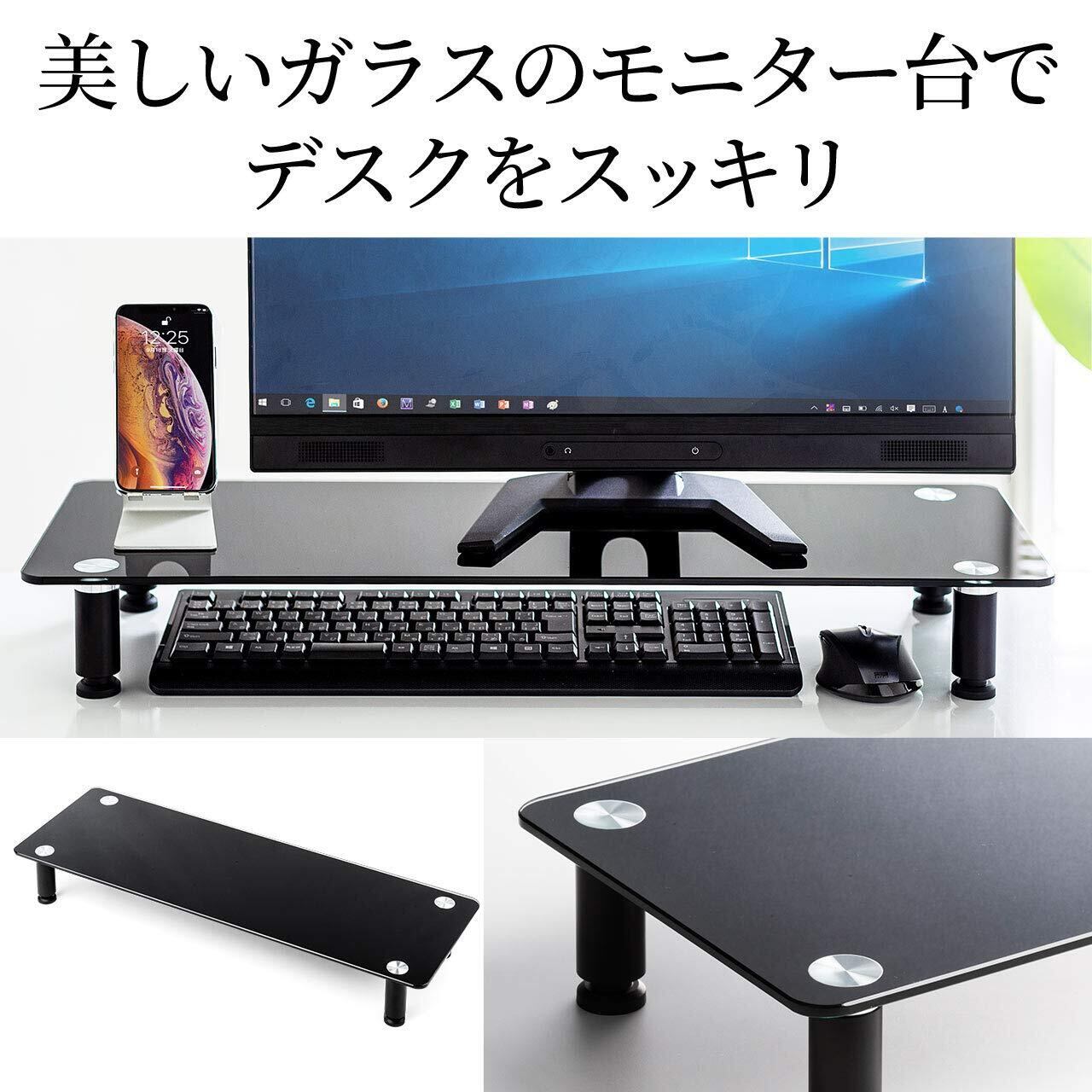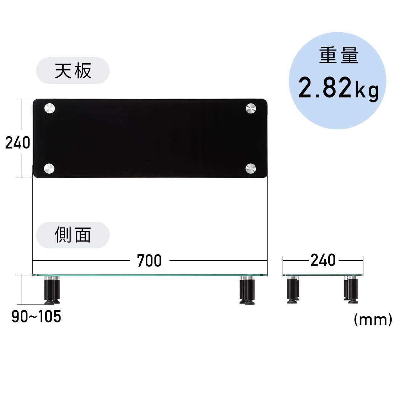 サンワダイレクト モニター台 強化ガラス製 幅70×奥行24cm 耐荷重10kg 高さ調整 9~10.5cm ブラック 100-MR146GBK