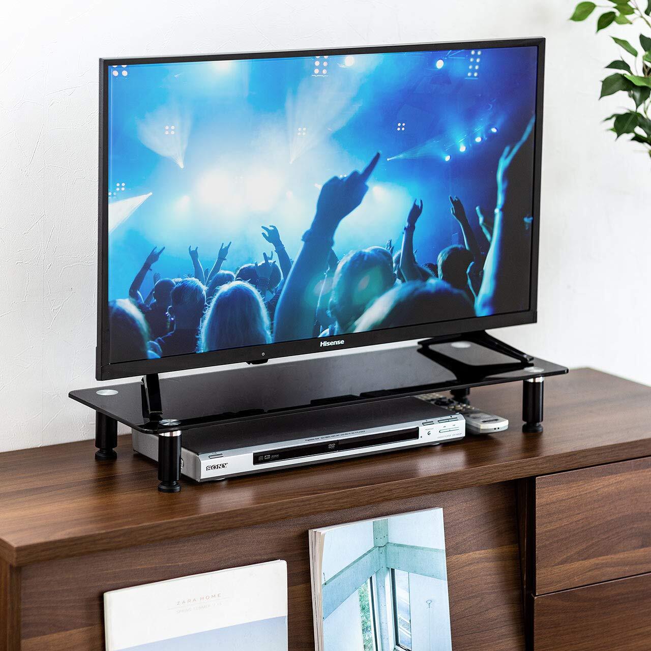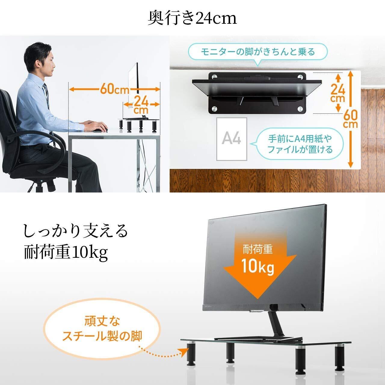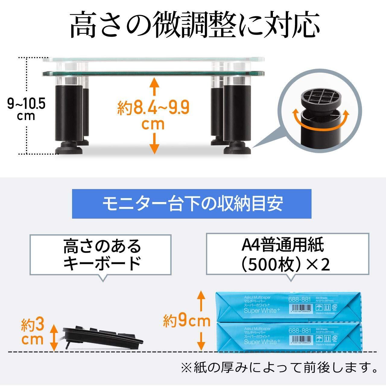 サンワダイレクト モニター台 強化ガラス製 幅70×奥行24cm 耐荷重10kg 高さ調整 9~10.5cm ブラック 100-MR146GBK