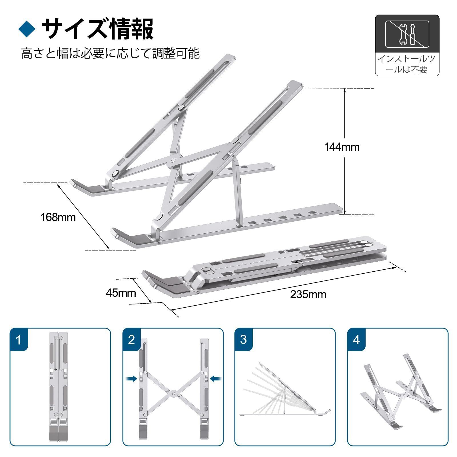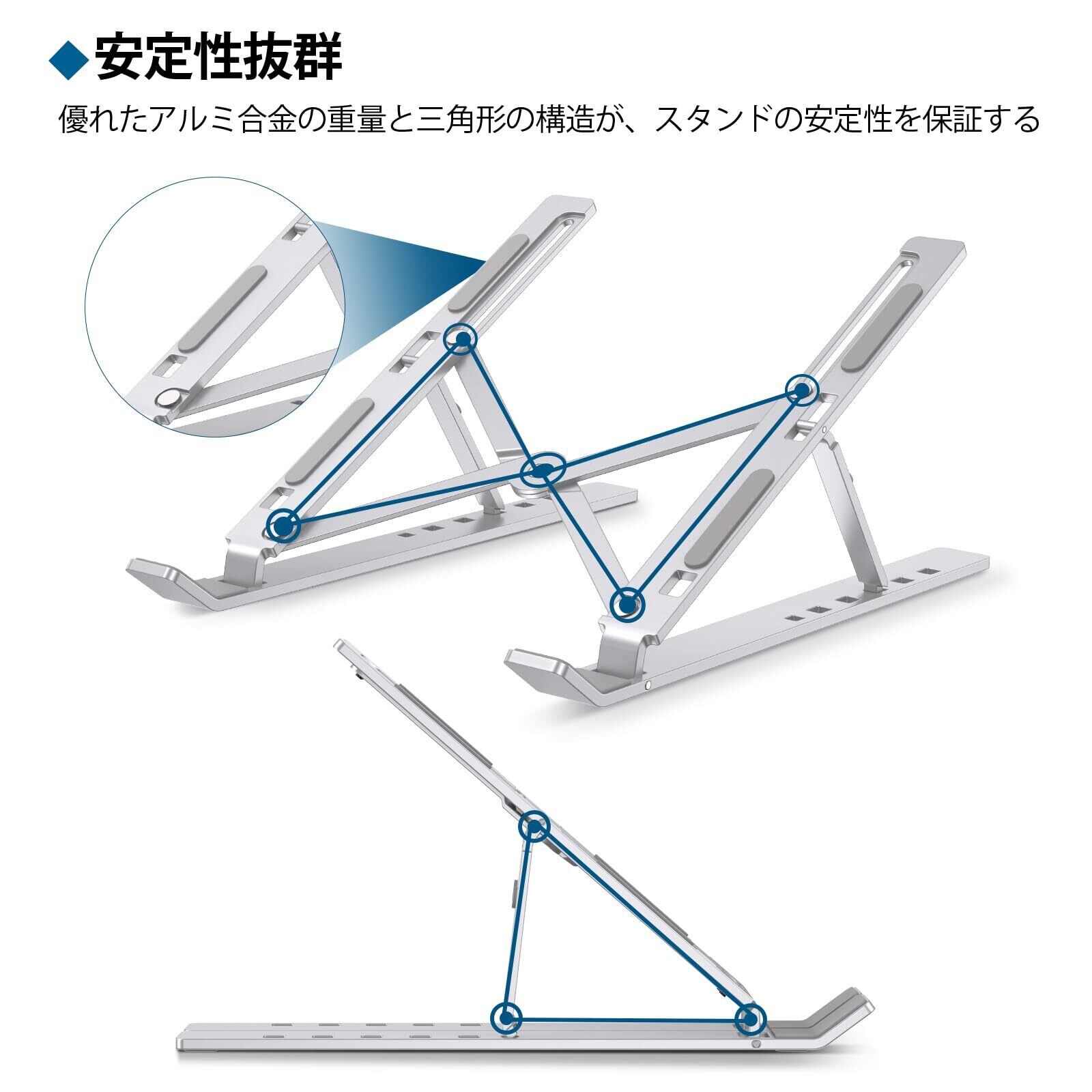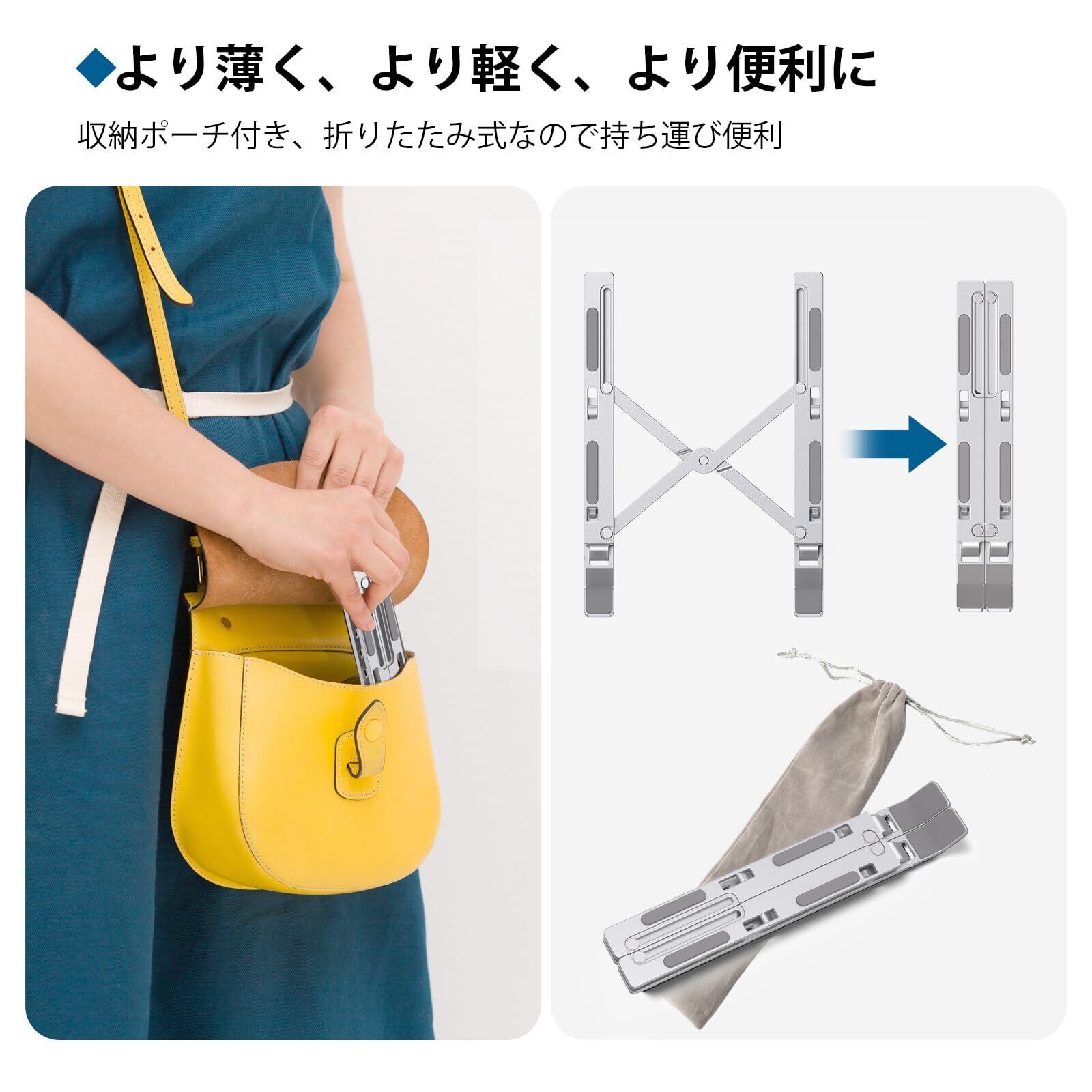 OMOTON ノートパソコンスタンド pcスタンド アルミ合金製 ノートpc スタンド macbook スタンド ラップトップスタンド 折り畳み式 6段階調節可能 滑り止め 軽量 ポータブル PC/iPad/タブレットスタンド 収納袋付き シルバー
