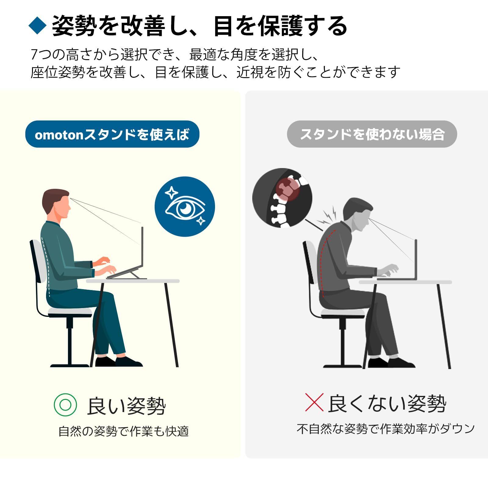 【新着商品】OMOTON ノートパソコンスタンド pcスタンド アルミ合金製 ノートpc スタンド macbook スタンド ラップトップスタンド 折り畳み式 6段階調節可能 滑り止め 軽量 ポータブル PC/iPad/タブレットスタンド 収納袋付き シルバー