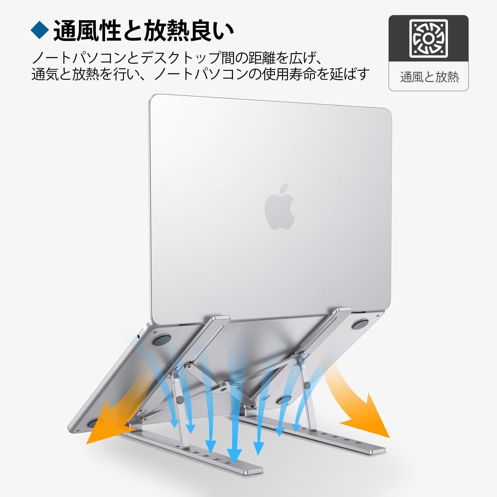 【冷却機能】このノートパソコンホルダーは、下を自由に通気できるため、デバイスの過熱を防ぎます