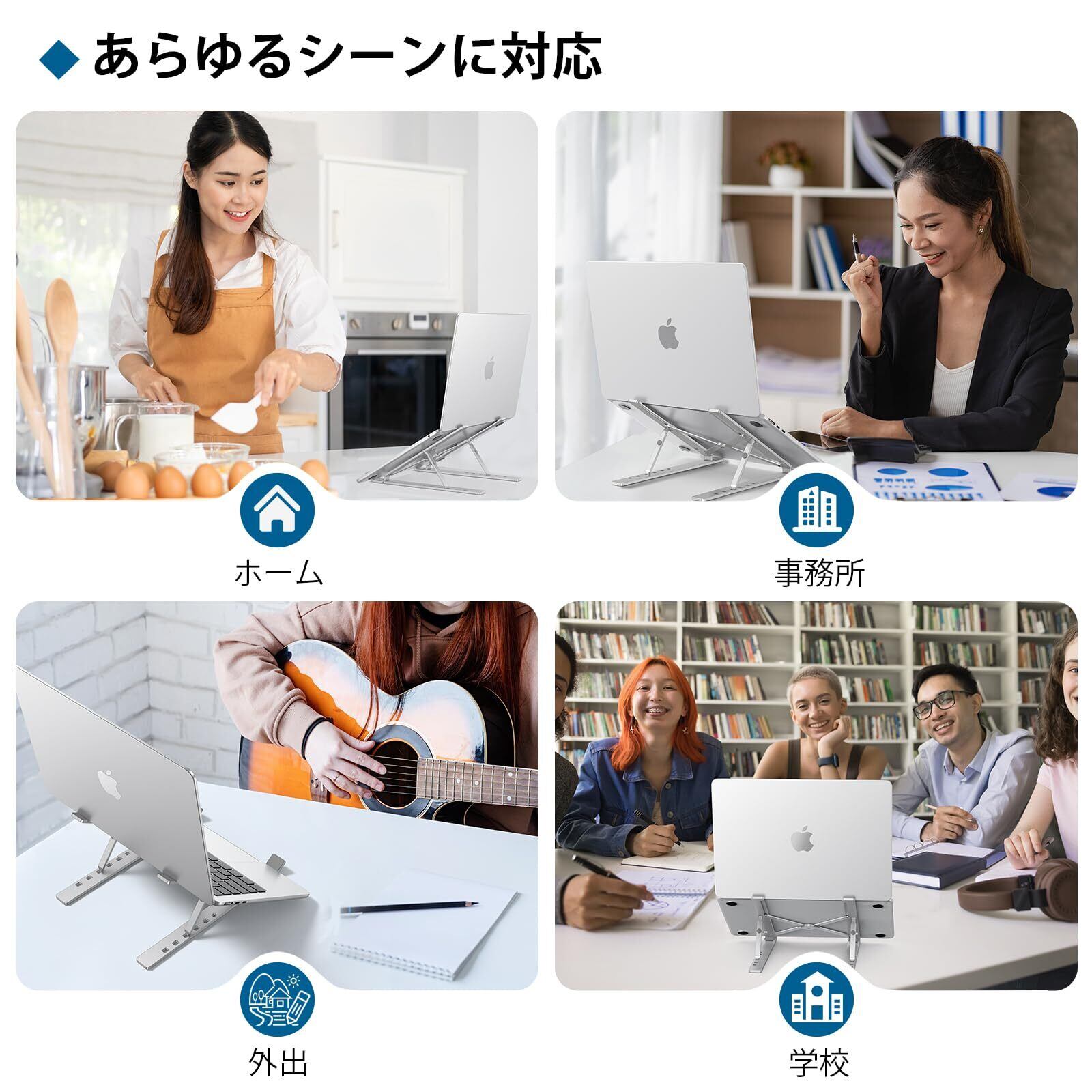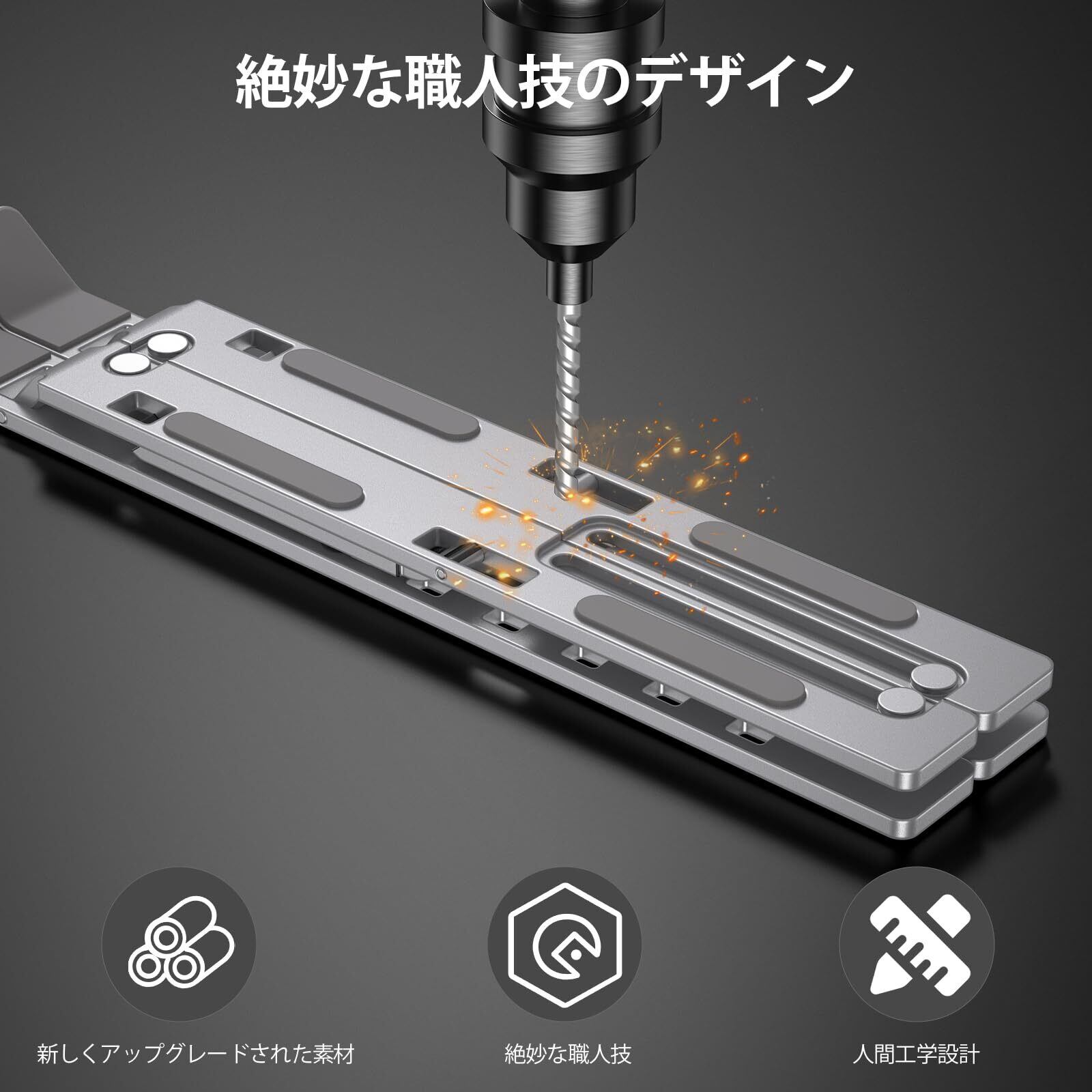 【高さ調節可能】このノートパソコン&タブレットスタンドは、デバイスを6つの異なる高さに持ち上げ、さまざまなニーズを満たします