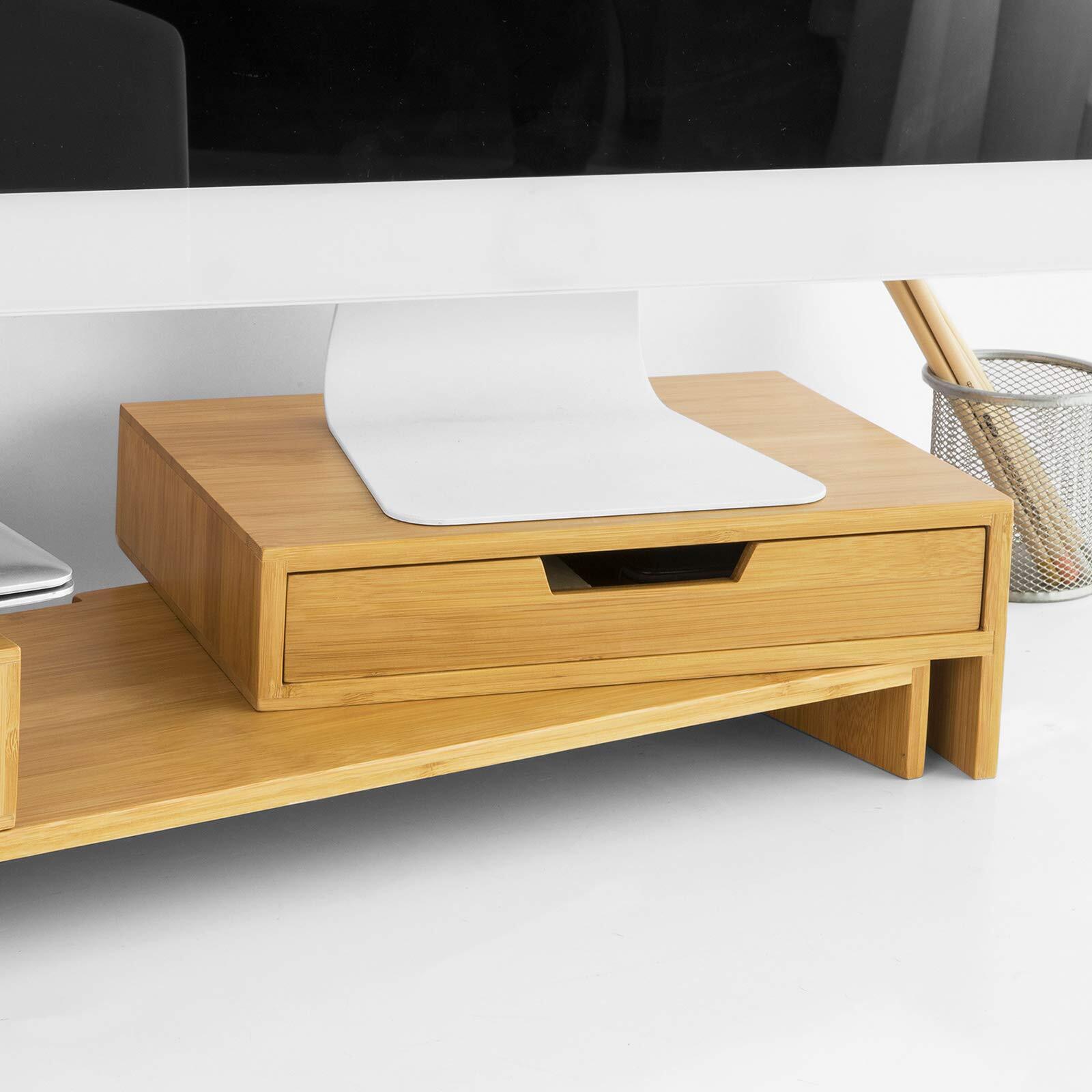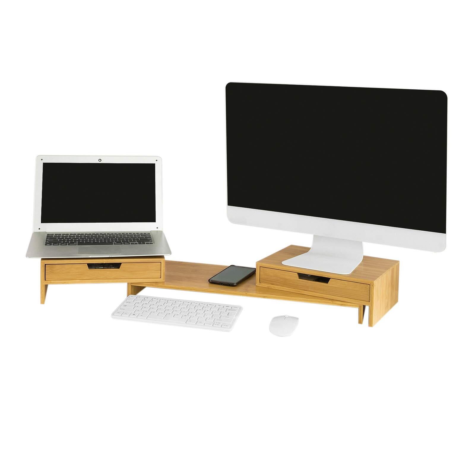【特価商品】SoBuy モニター台 モニタースタンド パソコン台 机上ラック 二台置き可能 パソコンスタンド 幅60~106×奥行き22×高さ11cm 机上台 竹製 幅調整可能 デスク上置棚 キーボード収納 卓上 卓上ラック ディスプレイ台 PCスタンド (BBF04-N ) | paghag