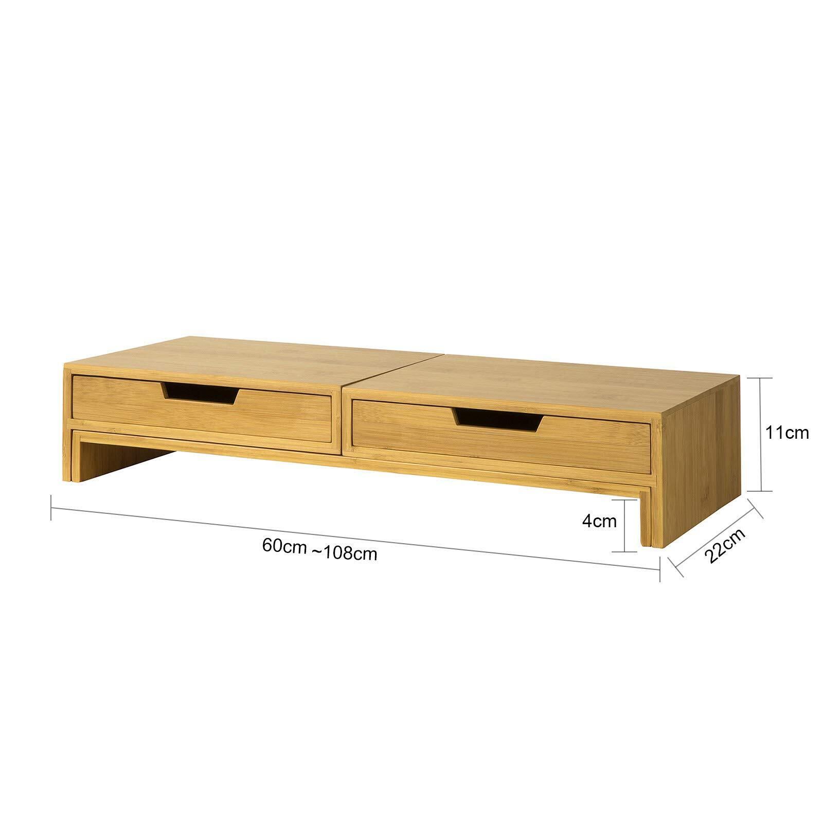 SoBuy モニター台 モニタースタンド パソコン台 机上ラック 二台置き可能 パソコンスタンド 幅60~106×奥行き22×高さ11cm 机上台 竹製 幅調整可能 デスク上置棚 キーボード収納 卓上 卓上ラック ディスプレイ台 PCスタンド (BBF04-N )