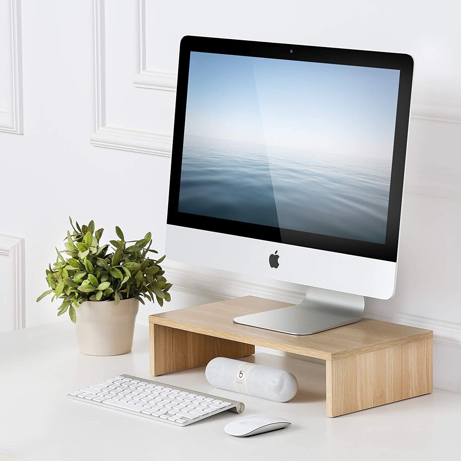 【モニター台】シンプルな風格、机上台にモニターを乗せることで画面の位置を上げ見やすくすることができるモニタースタンドです。