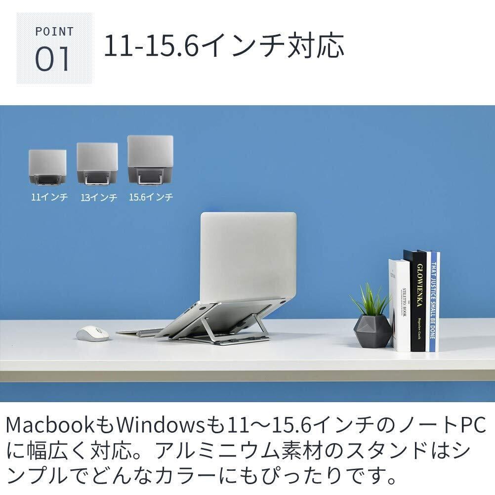 [ デザイン ] MacbookもWindows PCも11~15.6インチのノートPCに幅広く対応。アルミニウム素材のスタンドはシンプルでどんなカラーにもぴったりです。