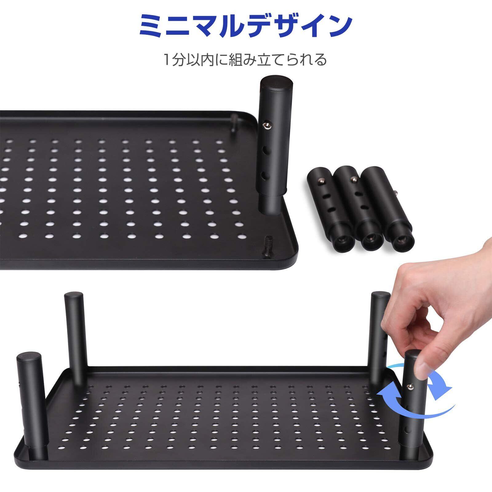 【組み立て簡単】-このコンピュータモニタスタンドは、1つのメッシュホールプラットフォームと4つの脚が付属しています。4本の脚をプラットフォームにねじ込むだけです。