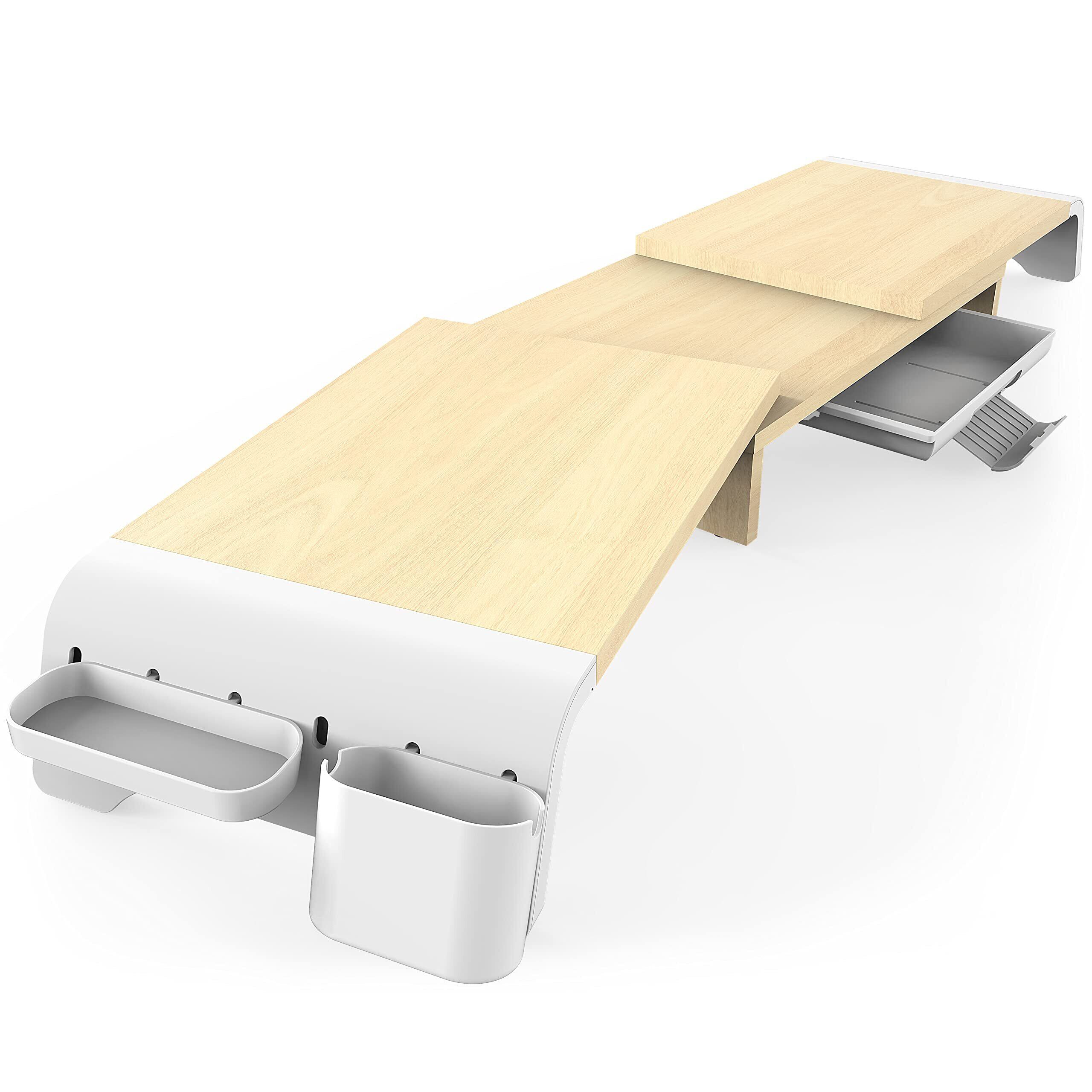Fenge モニター台 机上台 机上ラック 引き出し付き 74cm~107cm幅調整可能 木製 キーボード収納 組み立て簡単 耐荷重25kg モニタースタンド ノートパソコン台 卓上ラック ホワイトG04B1101C
