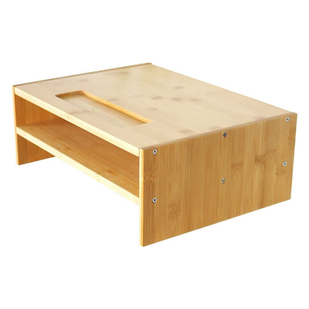 【数量限定】WKWKER 机上台 モニター台 卓上収納 机上収納 竹製 2段式 パソコンスタンド 机上ラック キーボード収納 小物入れ (ナチュラル) pcスタンド ディスプレイ 台