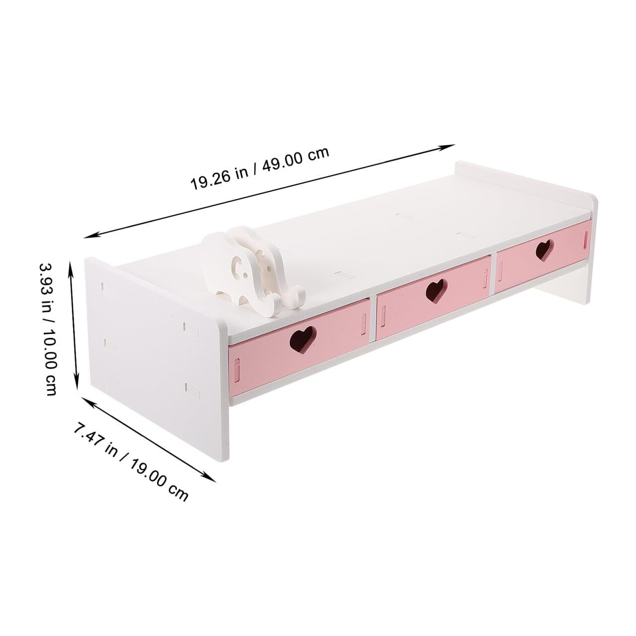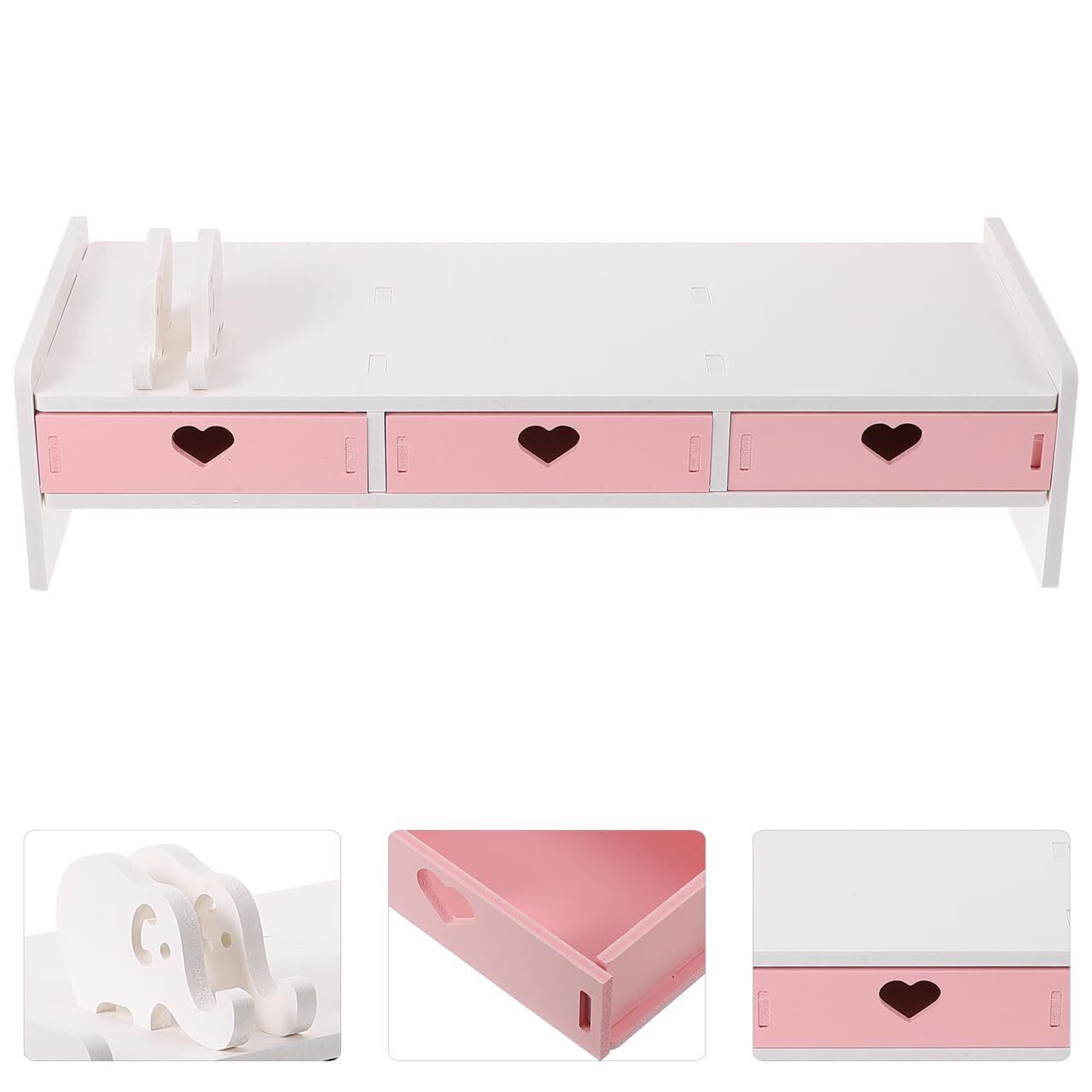 ledmomo モニター台 卓上 モニタースタンド 引き出し付き パソコン台 卓上収納 机上台 ディスプレイ台 2段式 3引き出し パソコンスタンド 幅50×奥行20×高さ10cm モニター 上 小物置き キーボード収納 文具収納 ピンク ピンク