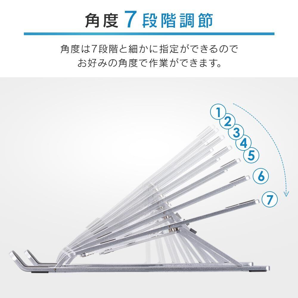 超軽量で持ち運びに最適、角度が7段階に調節可能なPCスタンドです。