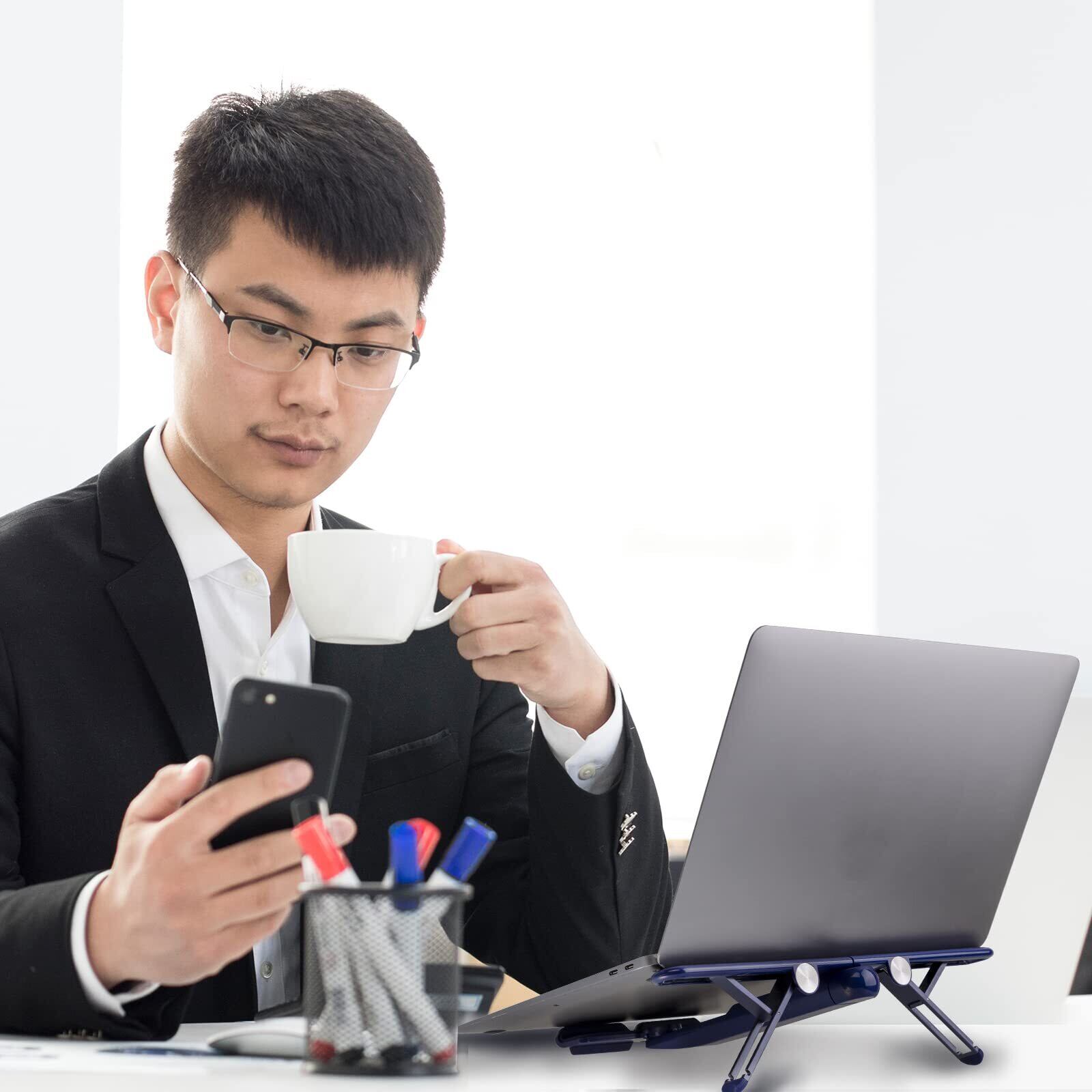 【2022最新】ノートパソコンスタンド 折りたたみ 軽量 パソコン スタンド 4段高さ調節 滑り止め 収納可能 ノートpc スタンド 持ち運び ABS アルミ合金 シリコン パソコンスタンド 放熱性 安定 ラップトップスタンド ノートパソコン pc スタンド コンパクト 17インチ対応 pcスタンド 台 卓上 在宅勤務 laptop stand ノート 10kg荷重 飛行機型 (ブルー) | paghag