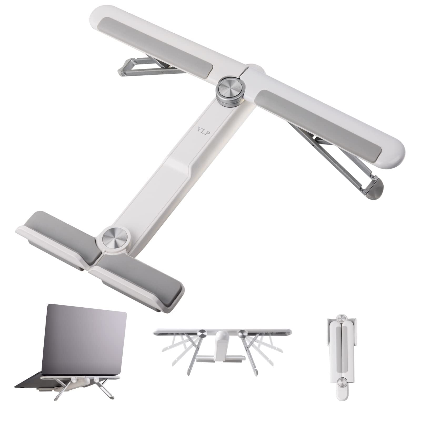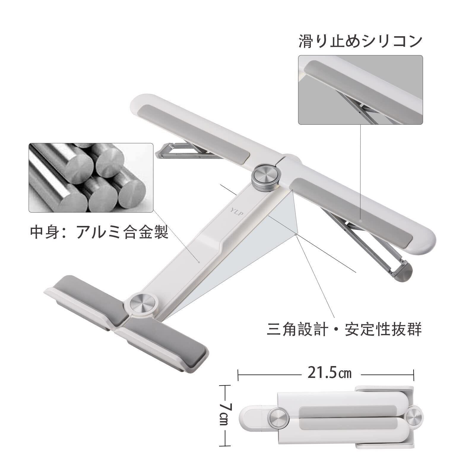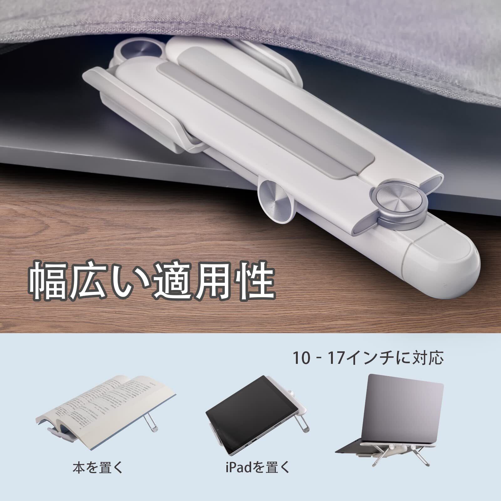 ノートパソコンスタンド 折りたたみ 軽量 パソコン スタンド 4段高さ調節 滑り止め 収納可能 ノートpc スタンド 持ち運び ABS アルミ合金 シリコン パソコンスタンド 放熱性 安定 ラップトップスタンド ノートパソコン pc スタンド コンパクト 17インチ対応 pcスタンド 台 卓上 在宅勤務 laptop stand ノート 10kg荷重 飛行機型 (ホワイト)