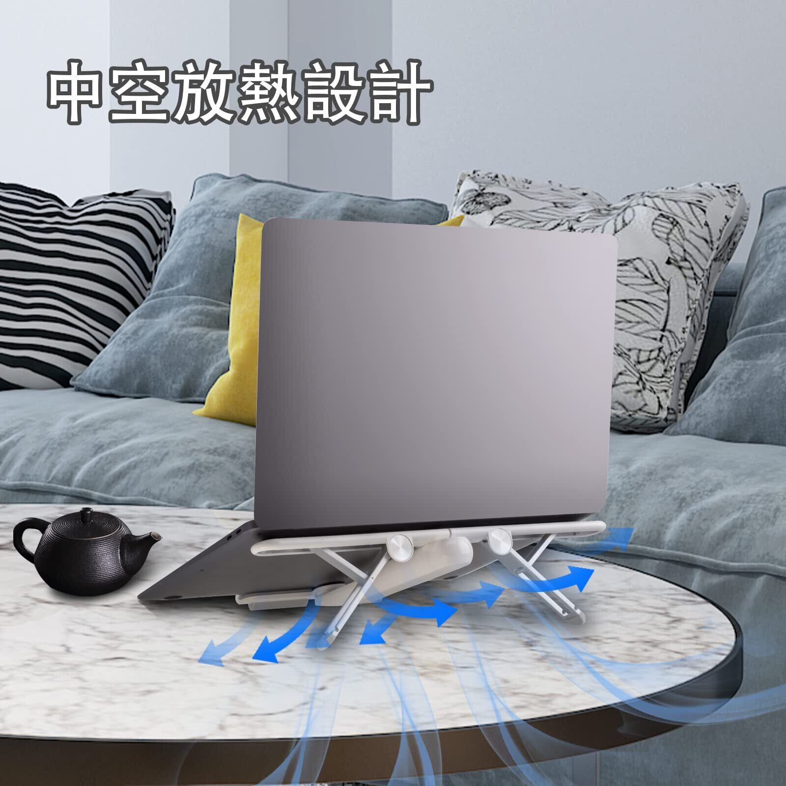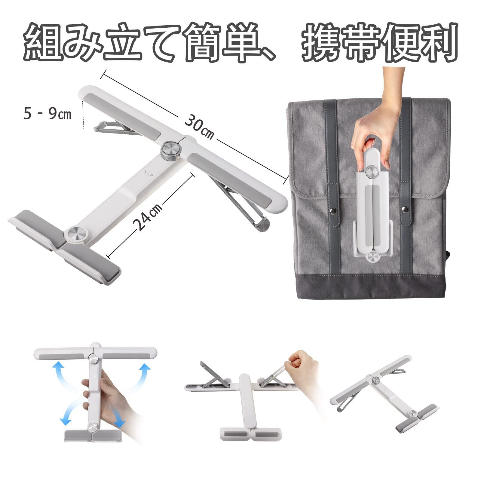 【2022新登場・折りたたみ式】従来のプラスチック、重い合金から改良して、回転軸の部分はアルミ合金を採用しながら特別な中空デザインで、放熱面積が最大限度に広げて、耐久性も優れて長時間でも使用可能です。さらに、わずか219gの超軽型かつ折りたたみ式なので、ノートパソコンを外出先で使うことにも便利です。