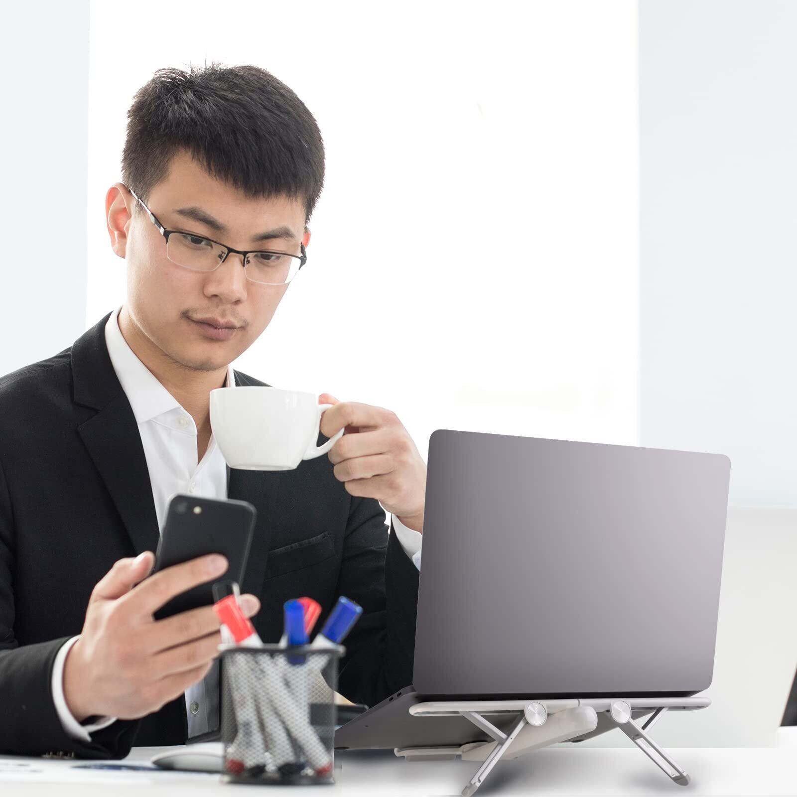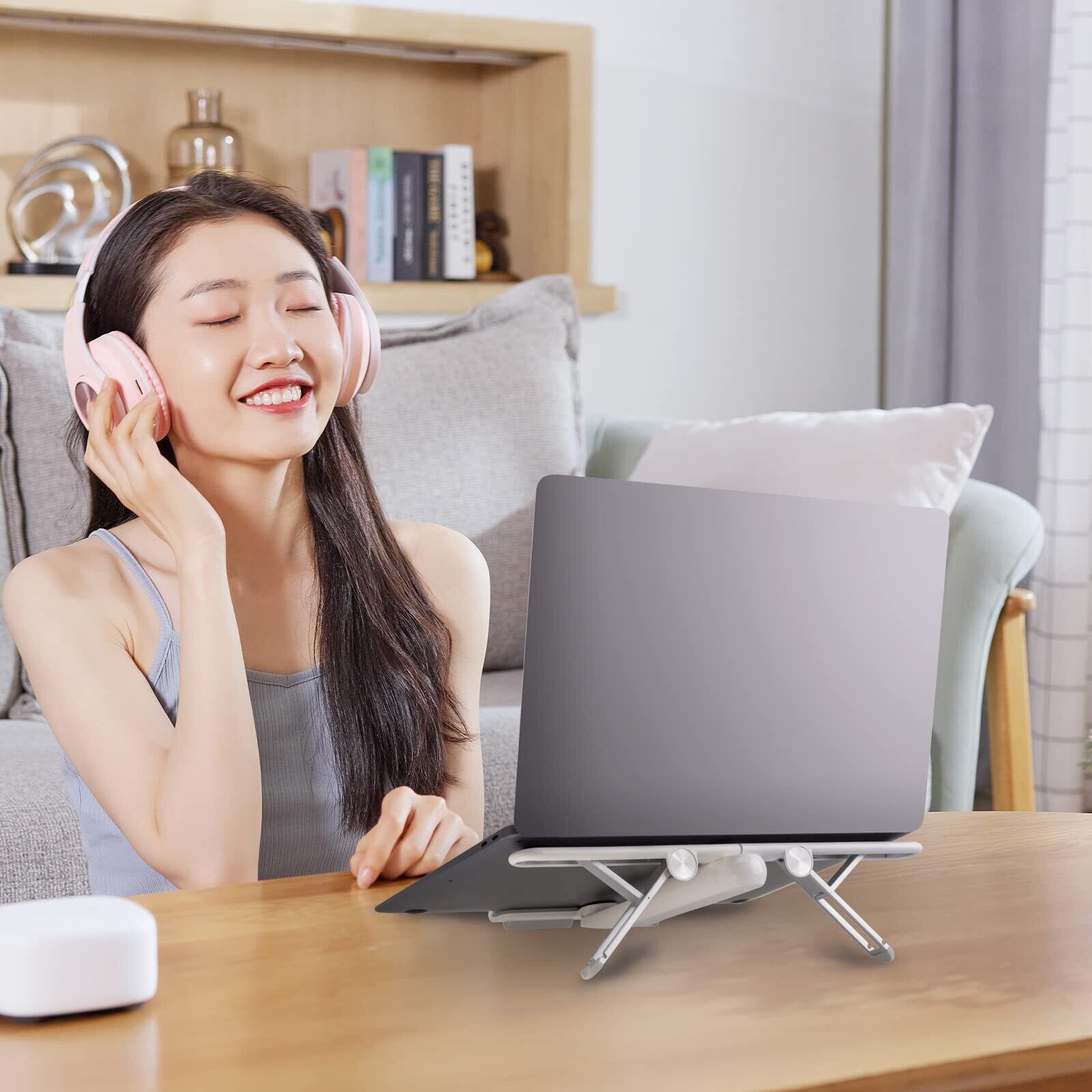 【人間工学設計&4段角度調節可能】ノートパソコンスタンドは人間工学デザインにより、4段角度調節可能を設計しております。15度から40度までを調節できるため、お好みによってパソコンの高さを調節できることになります。自然な姿勢で集中して、首の痛みや目の疲れを軽減させることが可能で、作業効率も上がります。