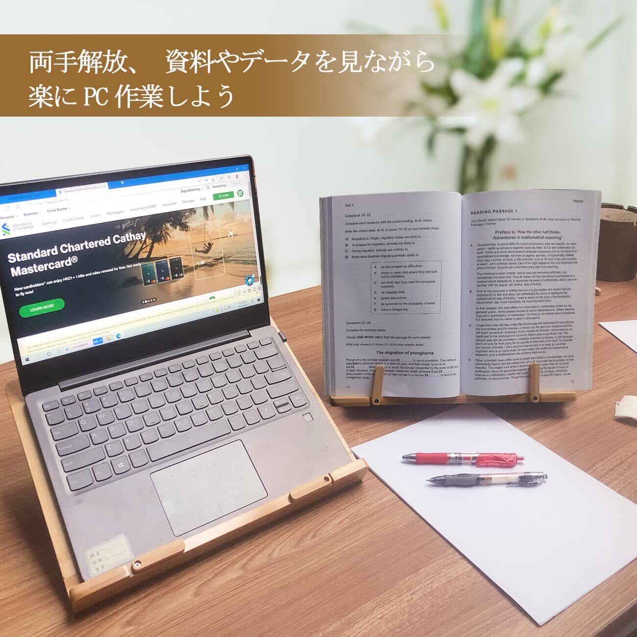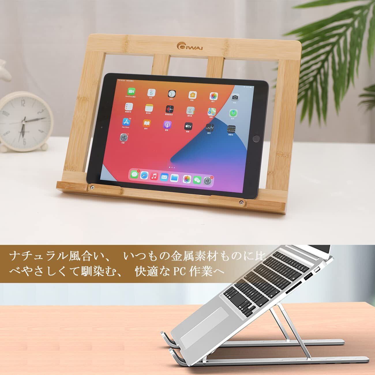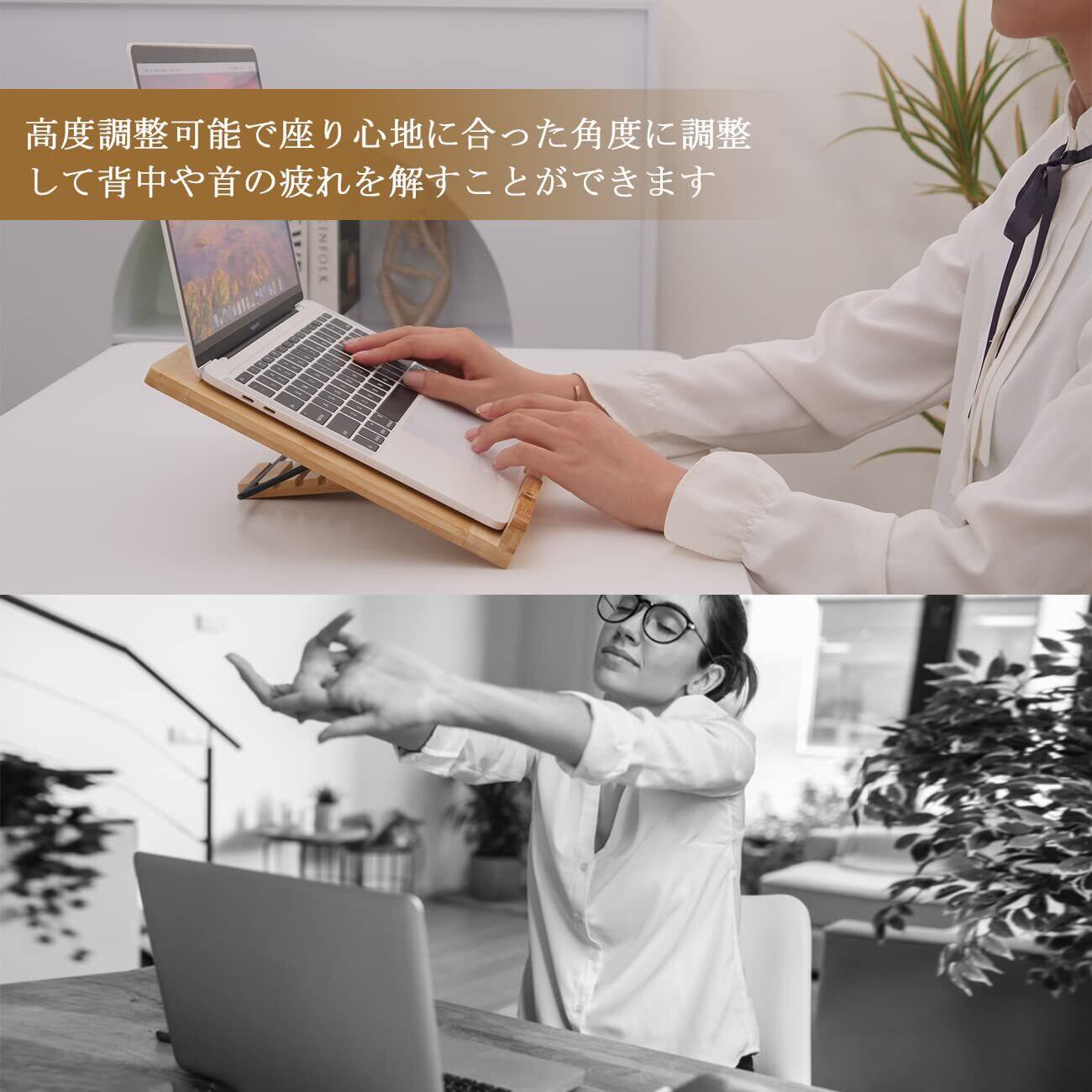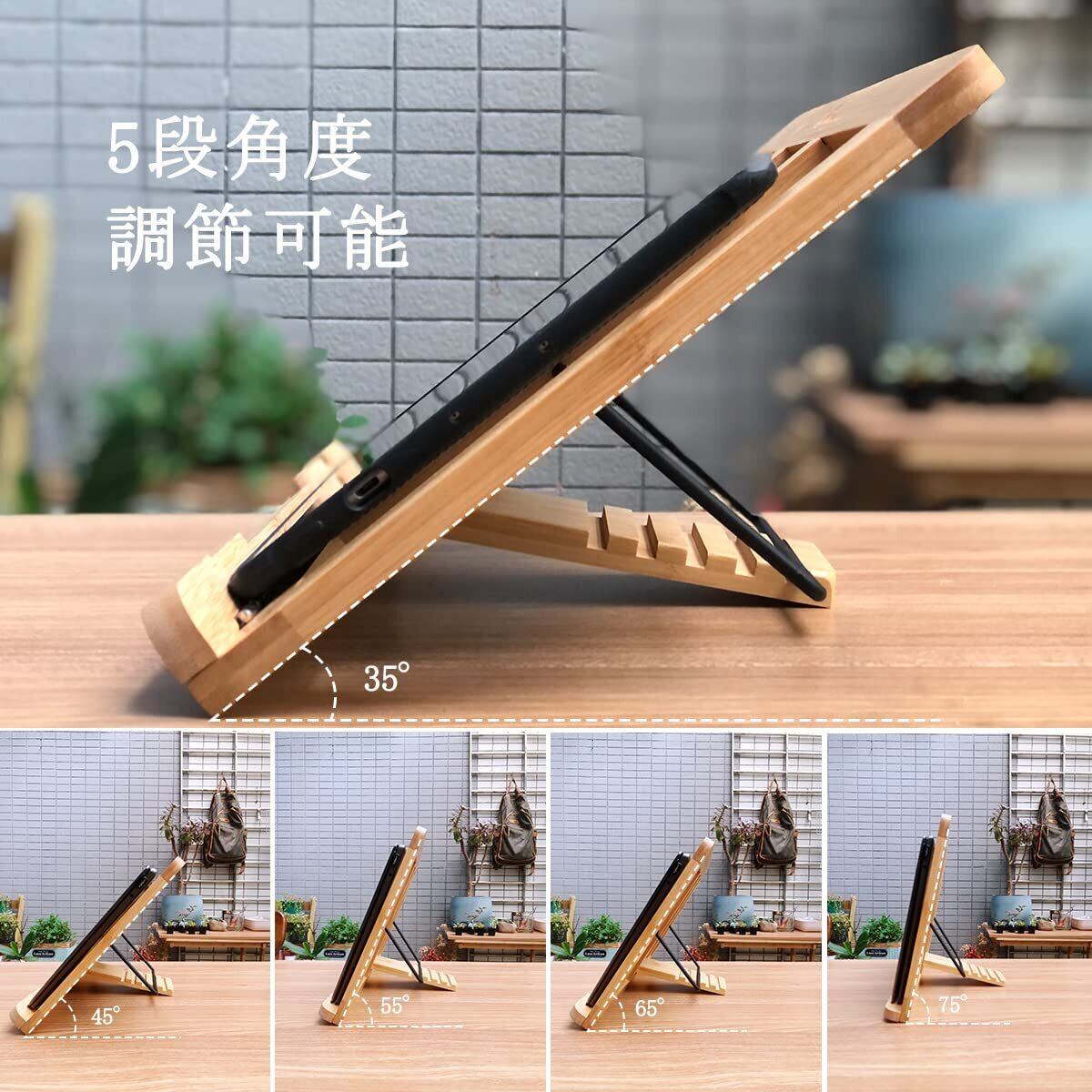 OIWAI ノートパソコン、 パソコンスタンド 木製 タブレット、ブックスタンド 書見台 読書台 楽譜 多機能 5段角度調整 放熱対策 軽量 竹製