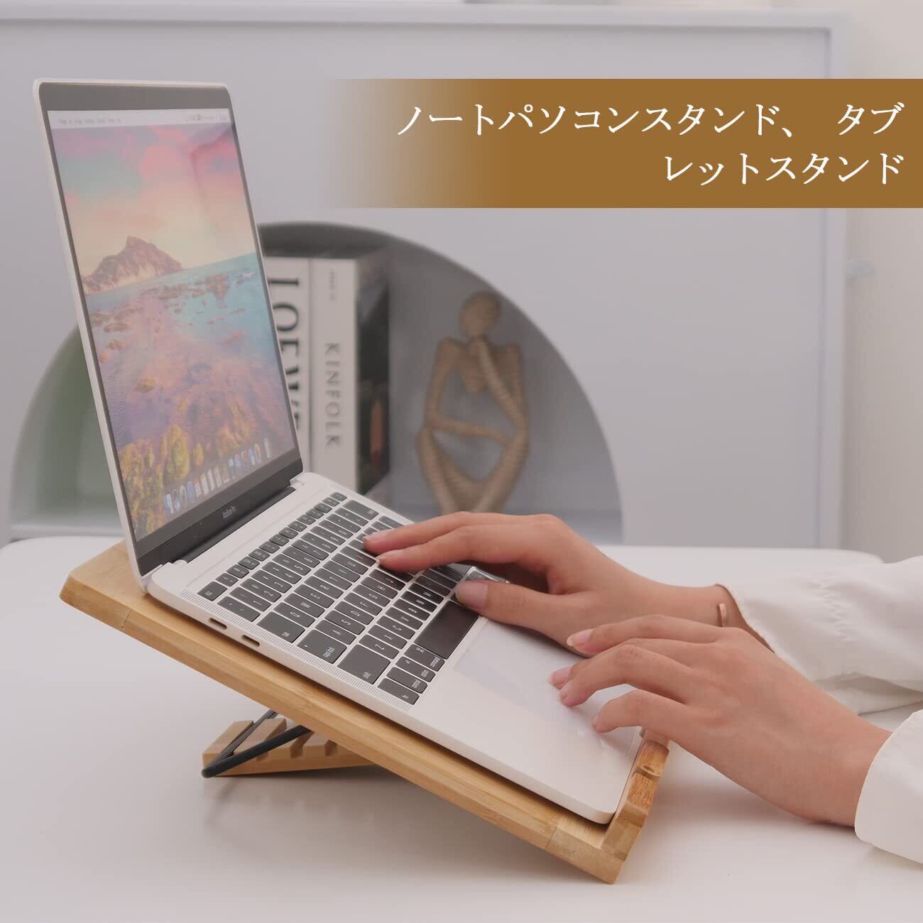【ノートパソコンスタンド竹製】このパソコンスタンドは自然竹素材で作られたスタンドです、ナチュラル風合い、いつもの金属素材ものに比べやさしくて馴染む、より手触りや心地が良く、快適なPC作業へ。