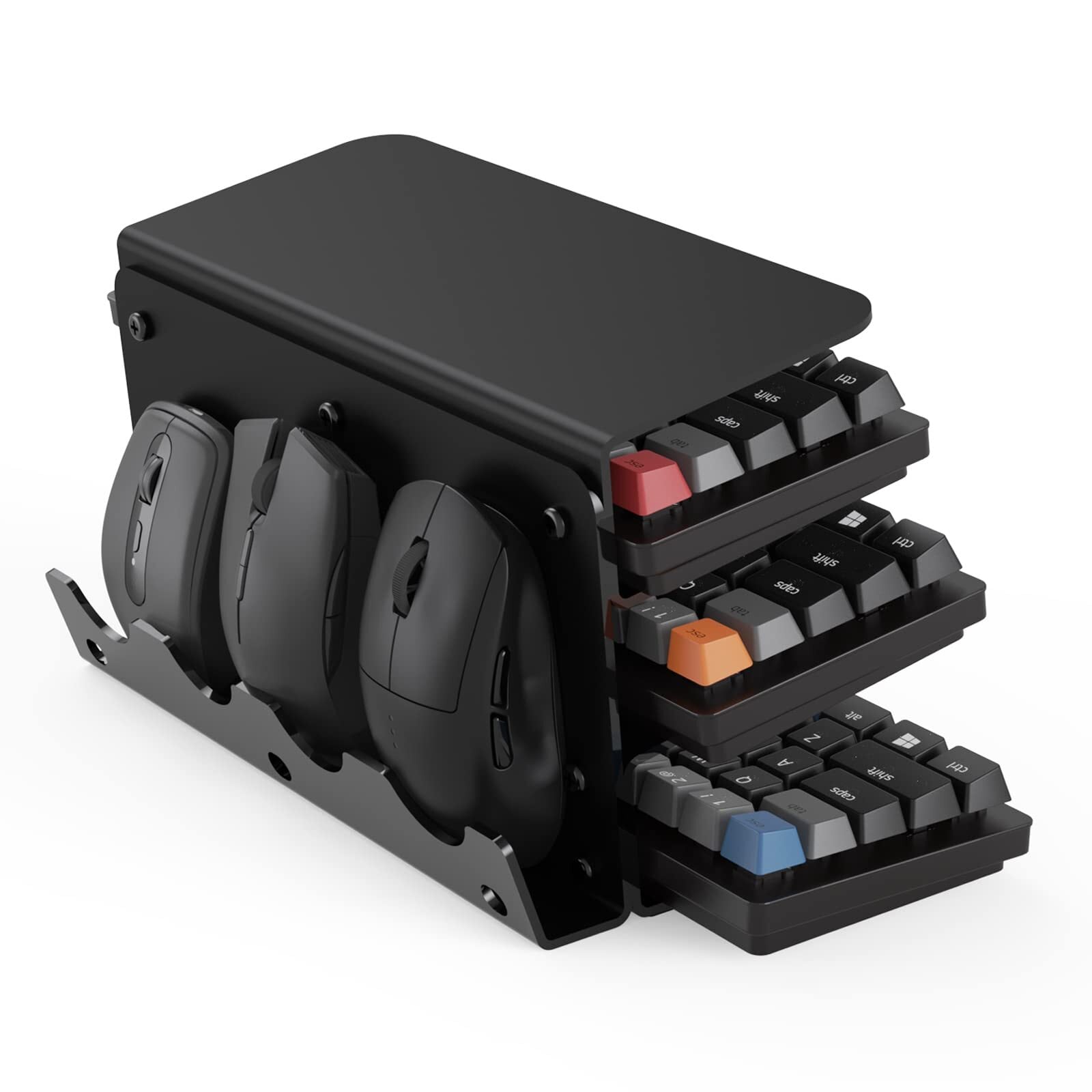 工匠藤井 アクリル製 キーボード収納ラック ディスプレイスタンド 3段階キーボードホルダー 卓上収納 多機能ディスプレイスタンド マウススタンド メカニカルキーボードに対応可能 組み立て簡単 ブラック