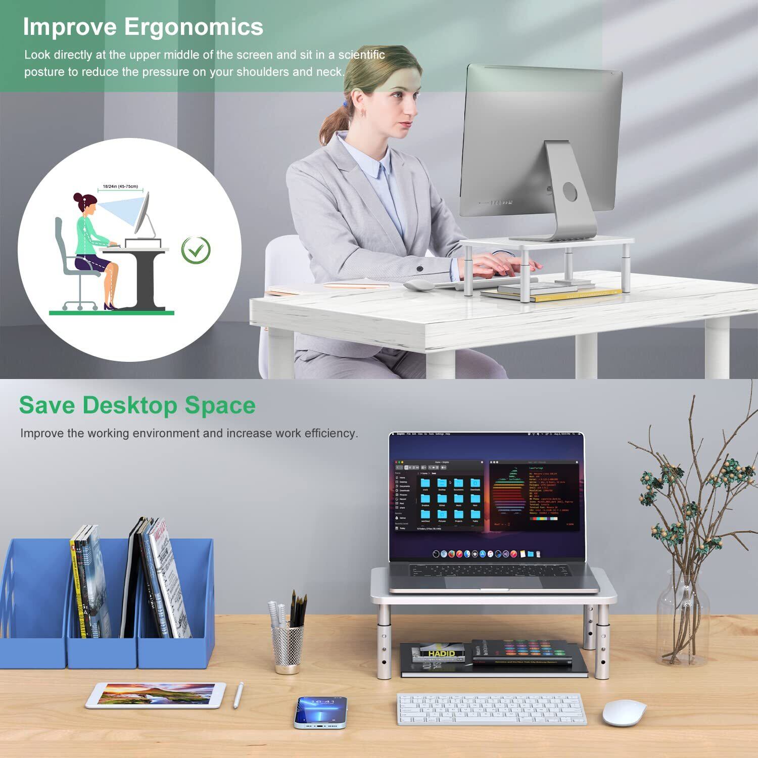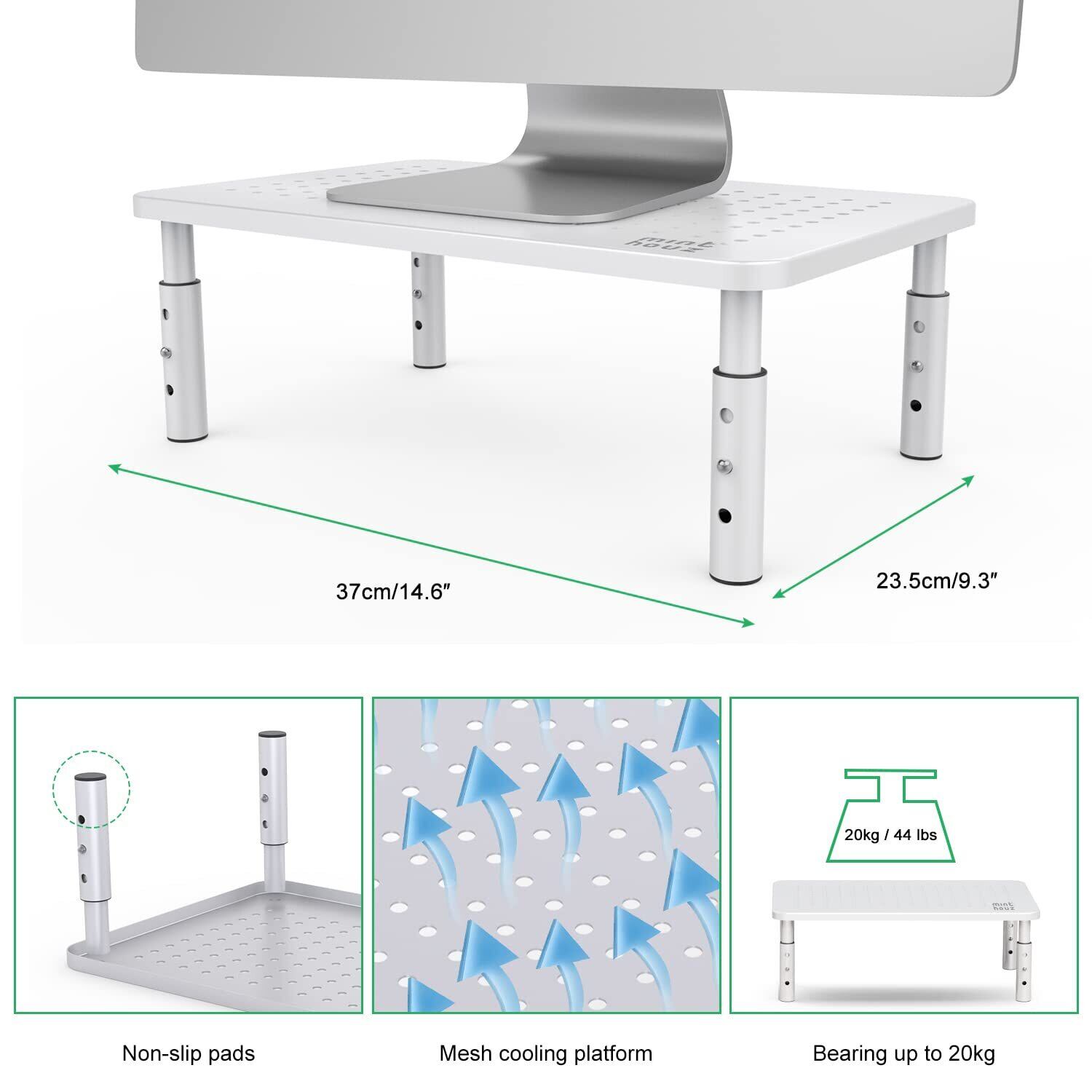 モニタースタンド モニター台 机上台 パソコンスタンド 机上ラック 卓上台 PCスタンド パソコン台 3段高さ調節可 安定性良い 放熱孔設計 滑り止めマット付き 20kg荷重 金属製PCスタンド 白い