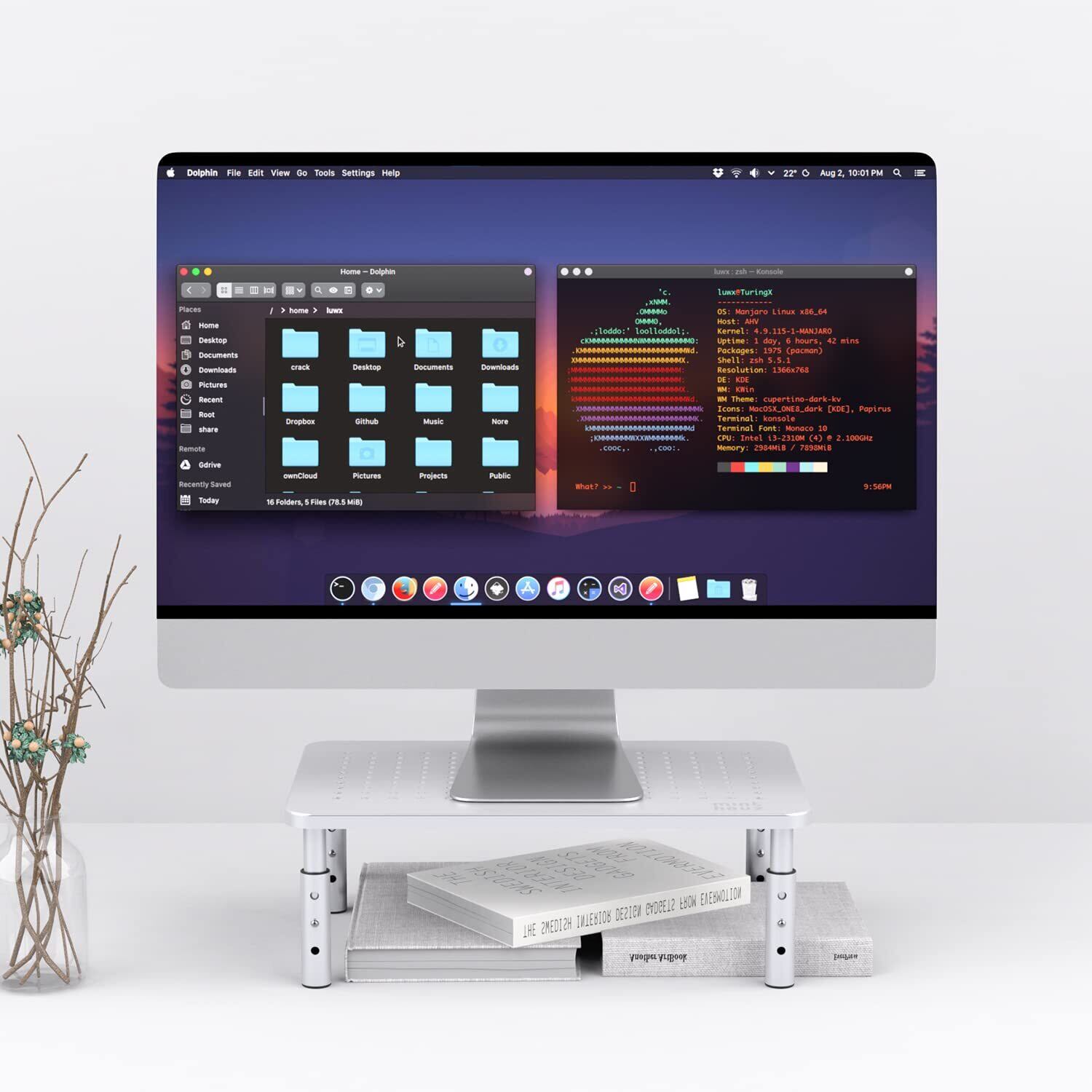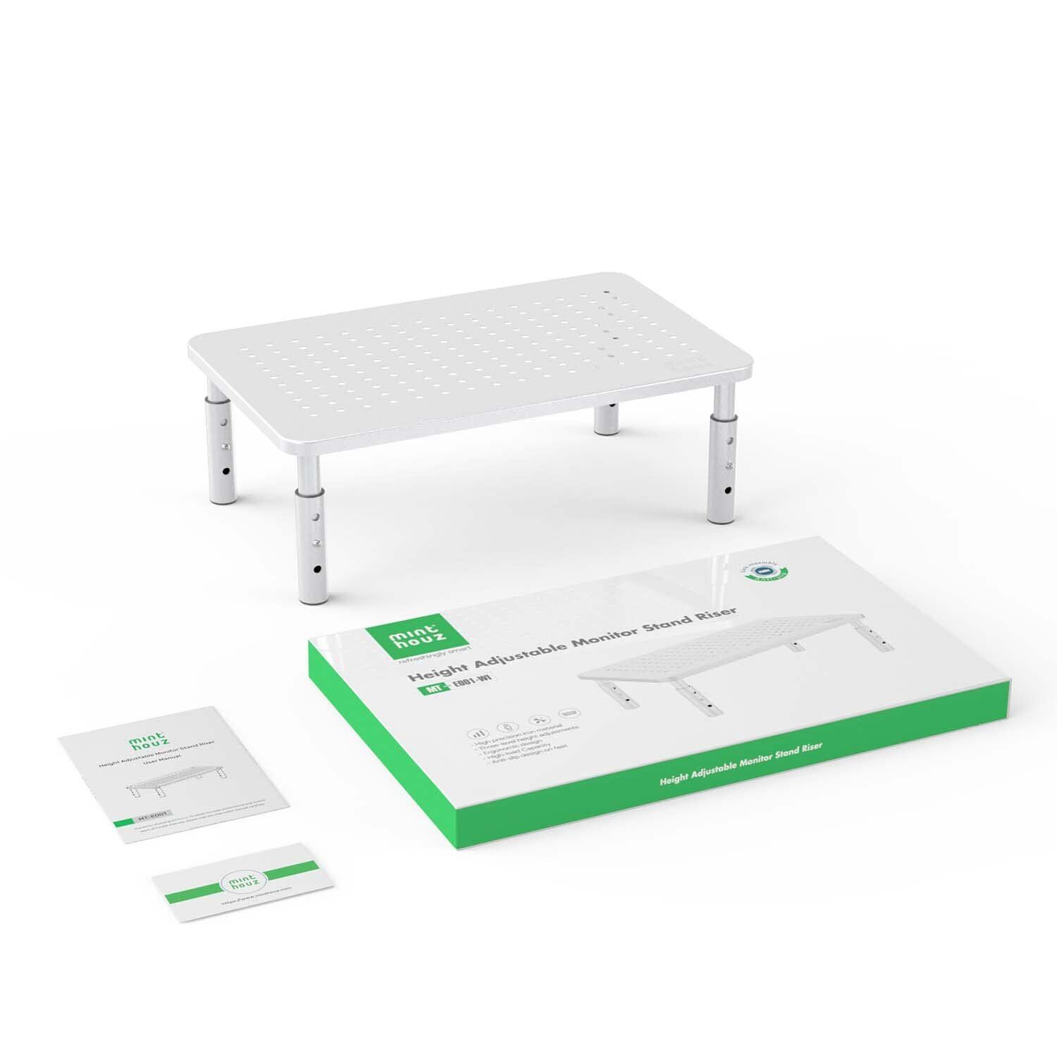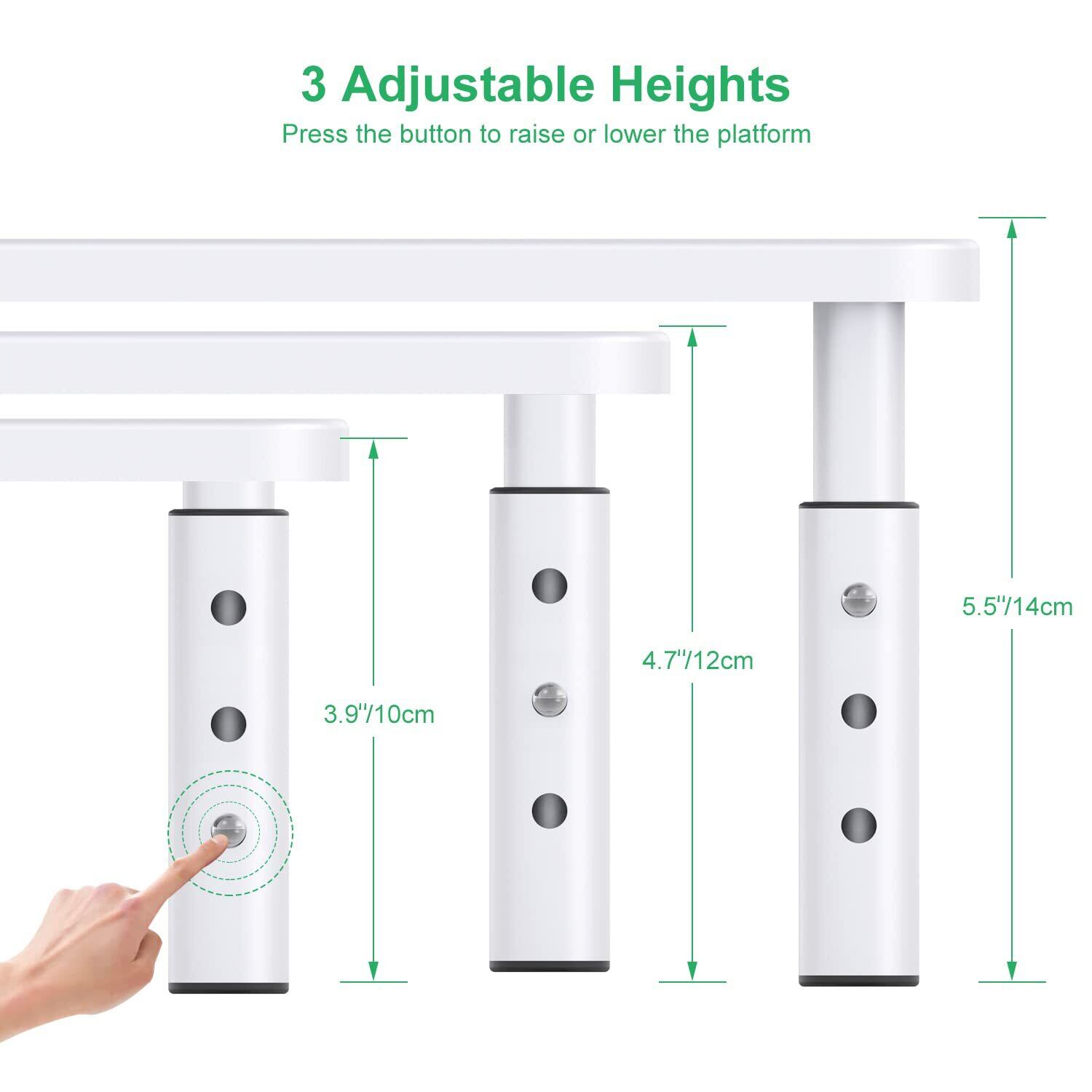 【三段式調節】:Minthouzモニタースタンドは三つの高さレベル(10/12/14cm)があります。足のボタンを押して、モニタースタンドの高さを高めて、モニタースタンドと目を揃えて、肩と首のリラックスを確保します。人体工学設計の安全安定に適合しています。