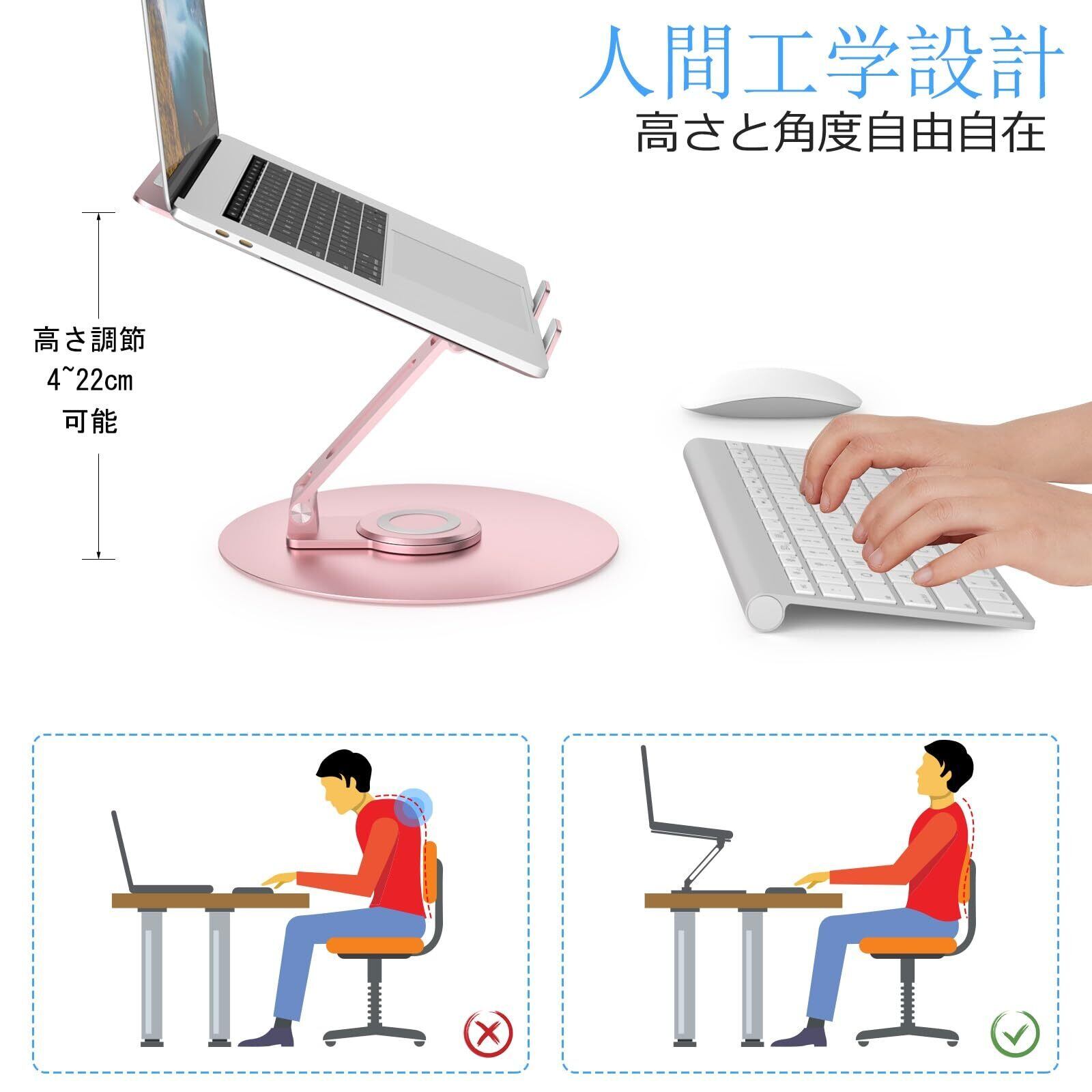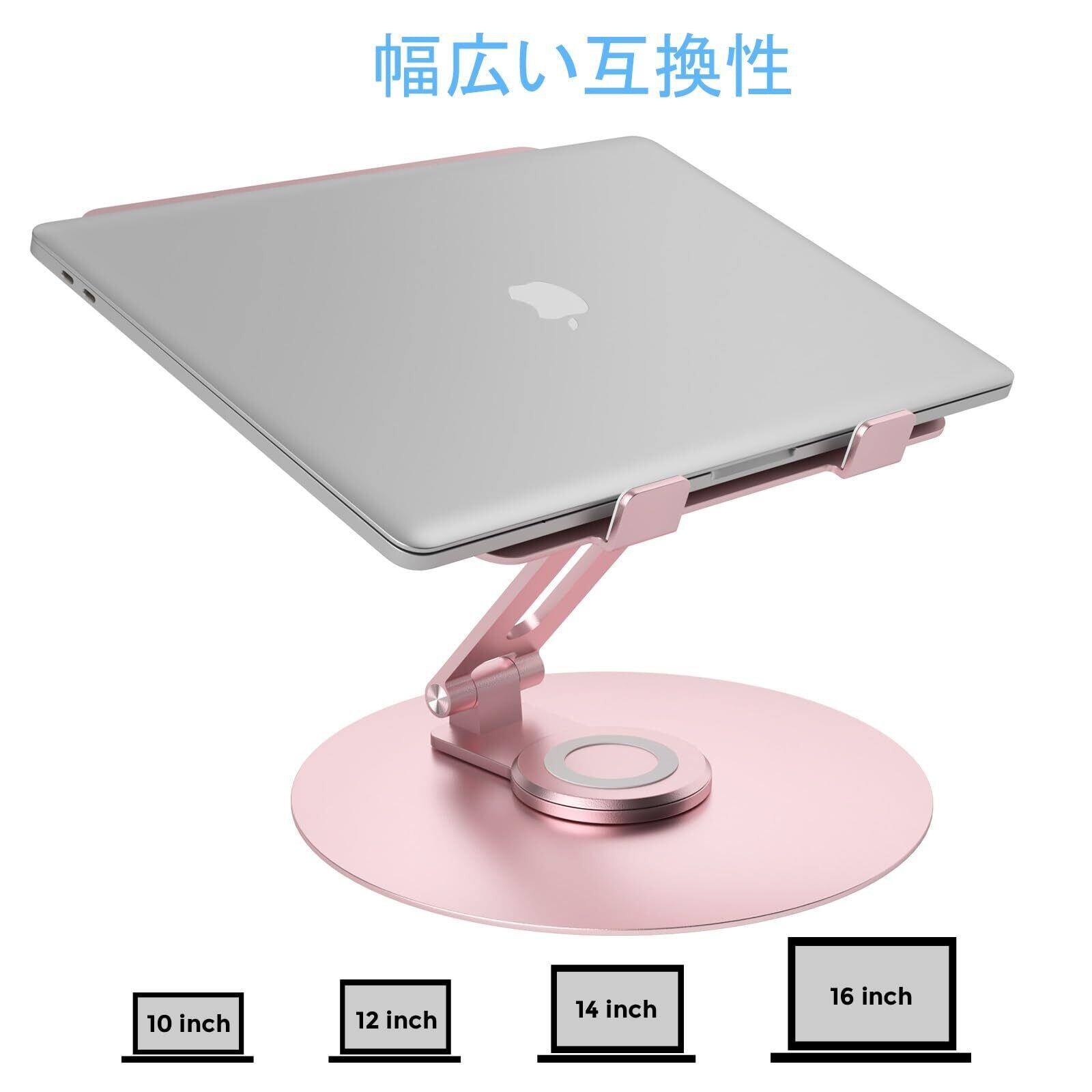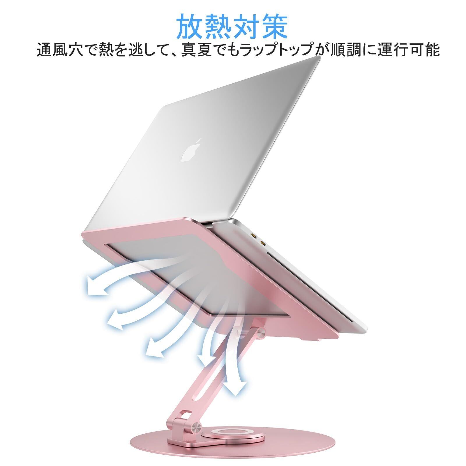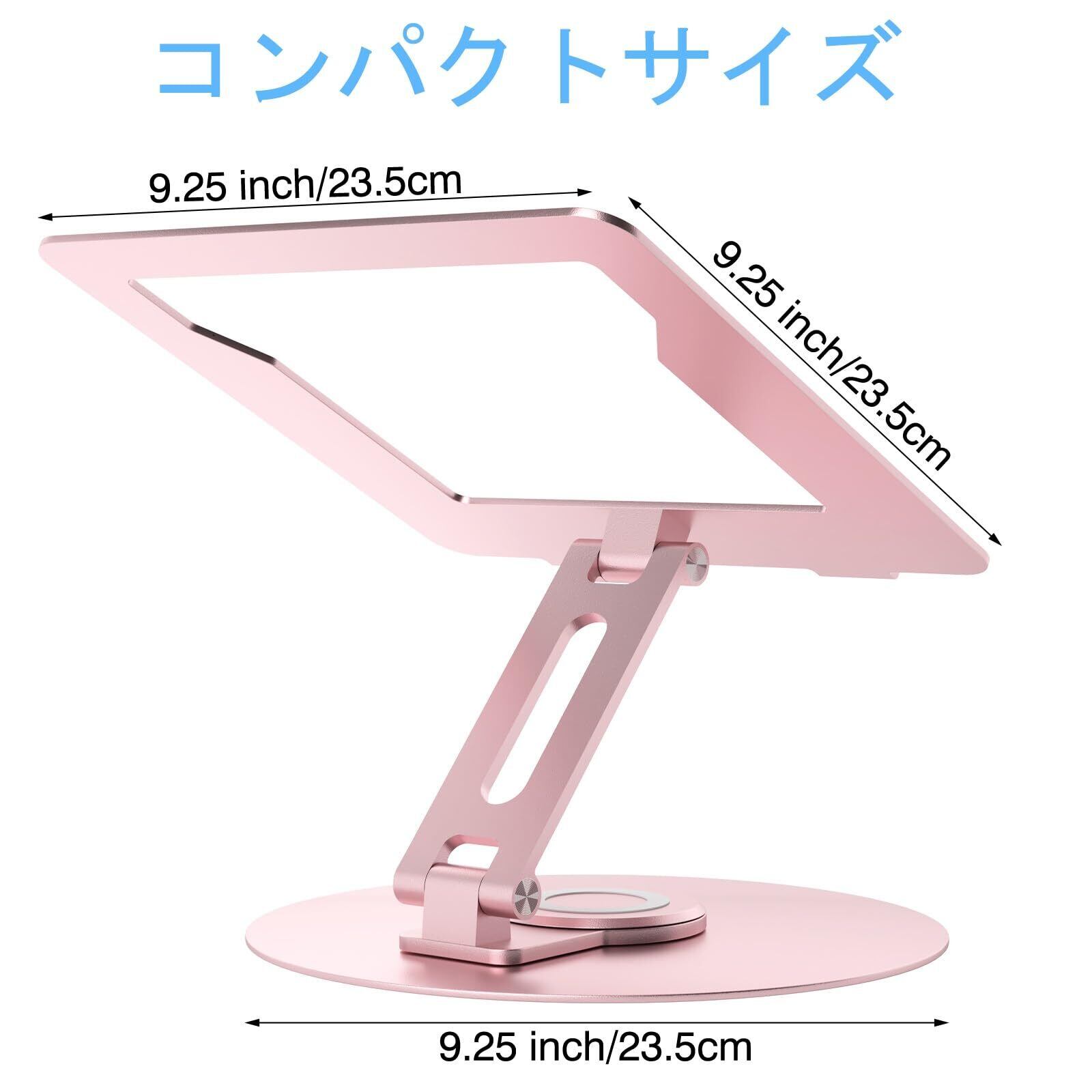 ノートパソコンスタンド 360回転式 タブレットスタンド 滑り止め 姿勢改善 ノートスタンド 角度調整可能 腰痛/猫背解消 折りたたみ式 アルミ合金製 pcスタンド 人間工学設計 放熱対策 無段階高さ調節 タブレットなどテレワーク 教卓スタンド プレゼン 在宅ワーク 放熱性 省スペース ネットワーク会議 Macbook/Macbook Air/ノートPCなど17インチまでに対応 丸型 ピンク