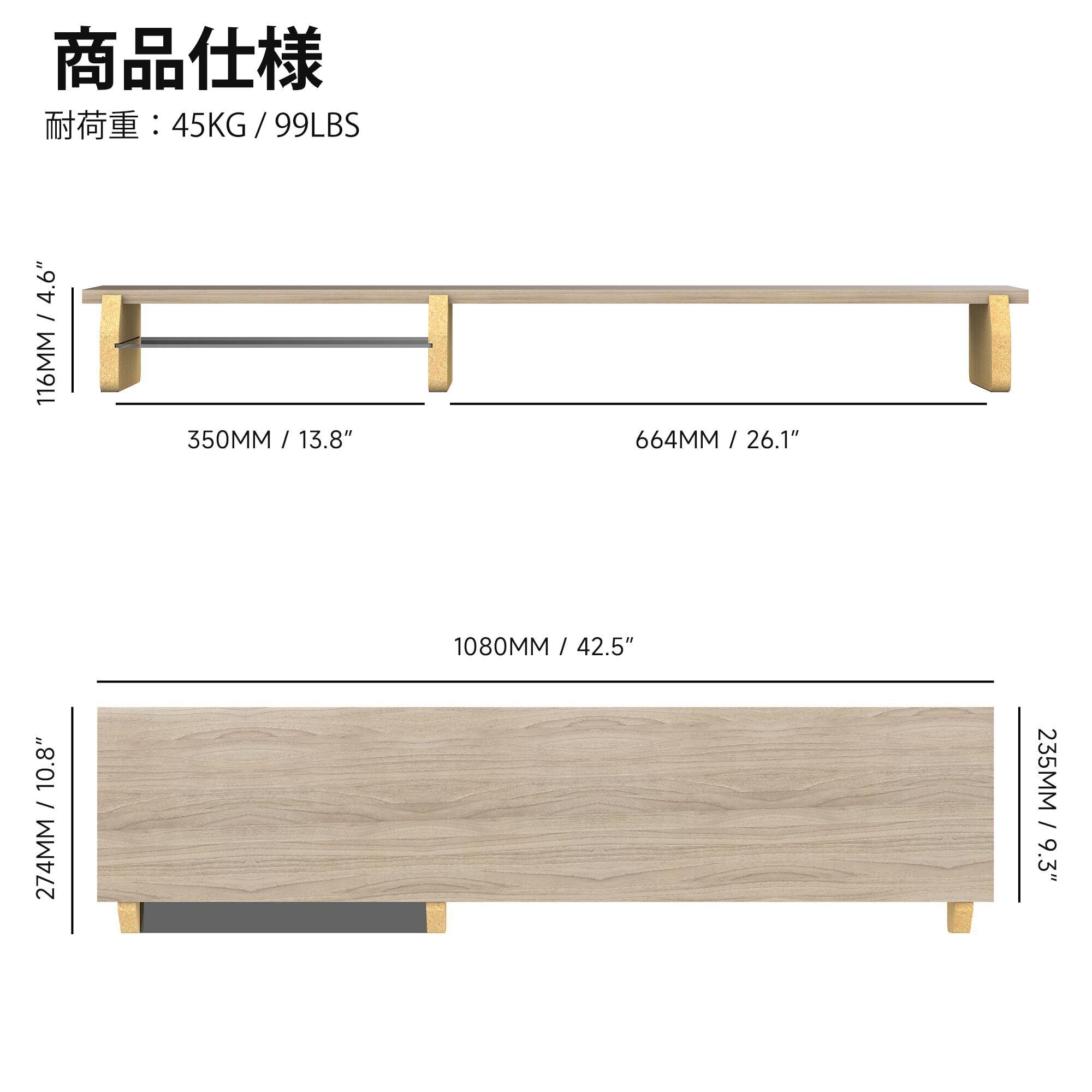 Fenge机上台 モニター台 パソコン台 モニタースタンド 108cm横幅 木製天板 PC台卓上 パソコンスタンド デスクトップ用 机上 机上ラック 机上台 pcモニター台 パソコンラック 卓上 収納 整理整頓オークG04B1103C