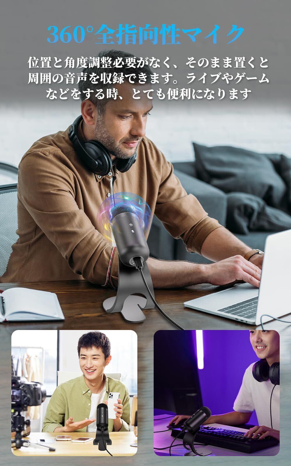 【.jp限定】HAO BOSCH USBマイク PCマイク 高感度 スタンドマイク 無(全)指向性 パソコンマイク リマインダーライト ィング ワンタッチミュート プラグ&プレイ 360˚全方向集音 ゲーミング ゲーマー向け 小型 超コンパクト テレワーク 会議用 配信用 録音 ゲーム実況 ボイズチャット 有線タイプ PC/PS 4/PS 5/Windows/マック 日本語取扱説明書