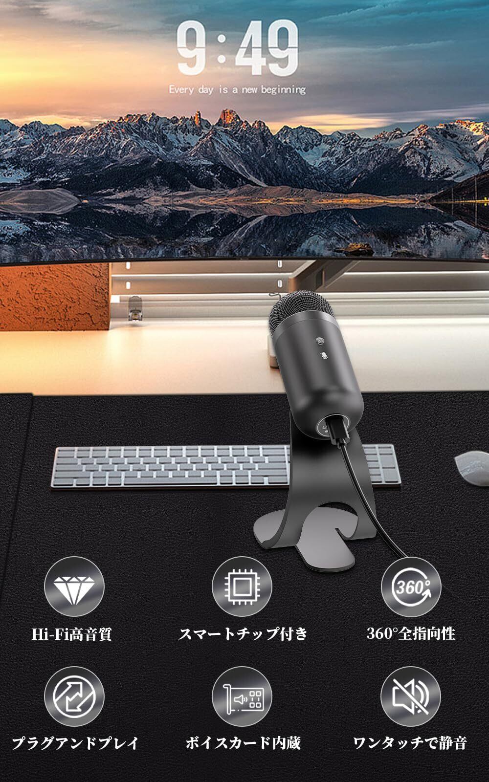 【数量限定】【.jp限定】HAO BOSCH USBマイク PCマイク 高感度 スタンドマイク 無(全)指向性 パソコンマイク リマインダーライト ィング ワンタッチミュート プラグ&プレイ 360˚全方向集音 ゲーミング ゲーマー向け 小型 超コンパクト テレワーク 会議用 配信用 録音 ゲーム実況 ボイズチャット 有線タイプ PC/PS 4/PS 5/Windows/マック 日本語取扱説明書