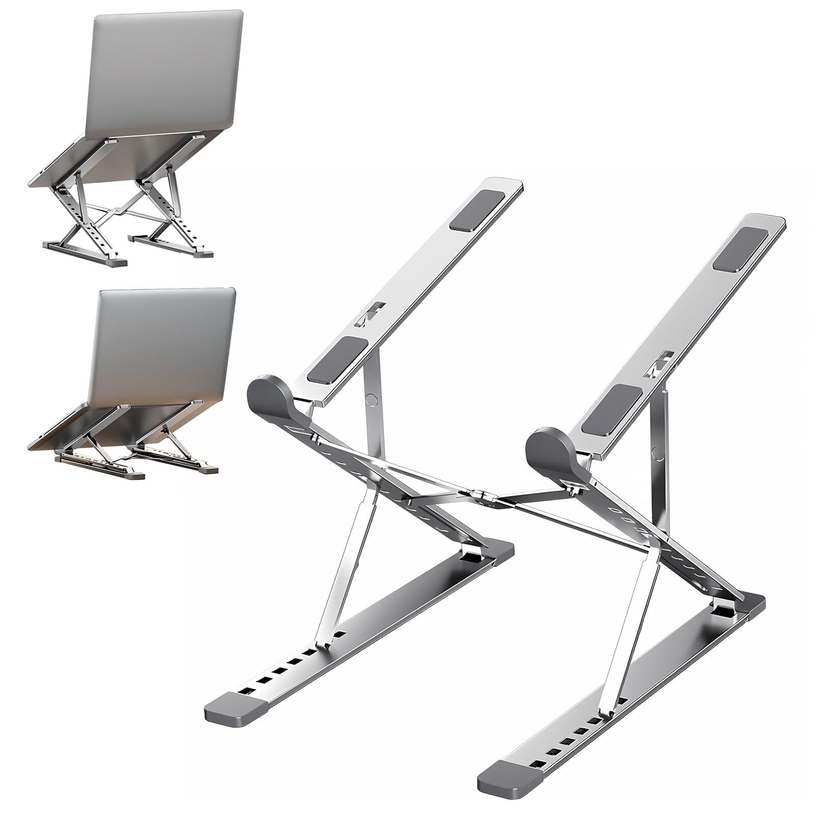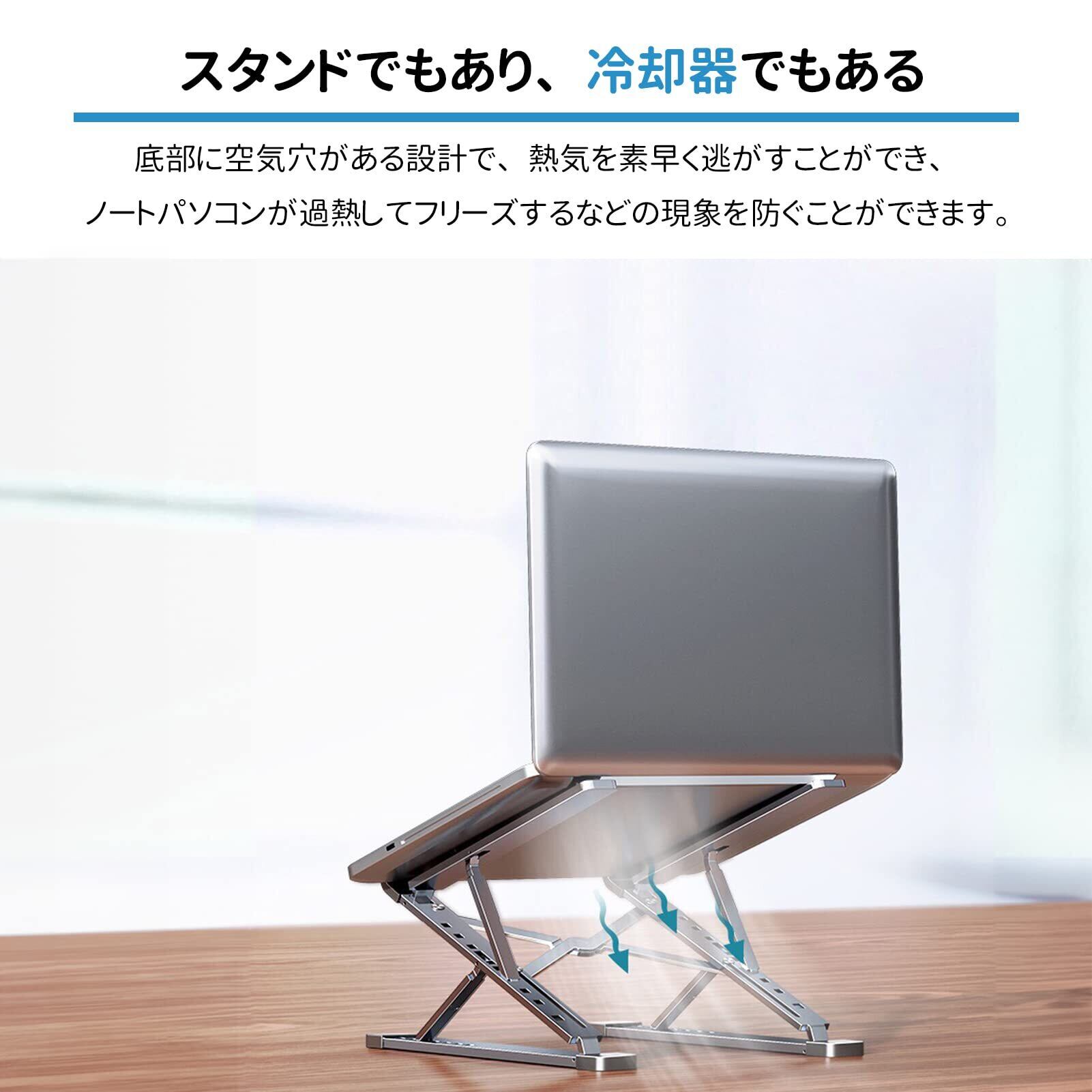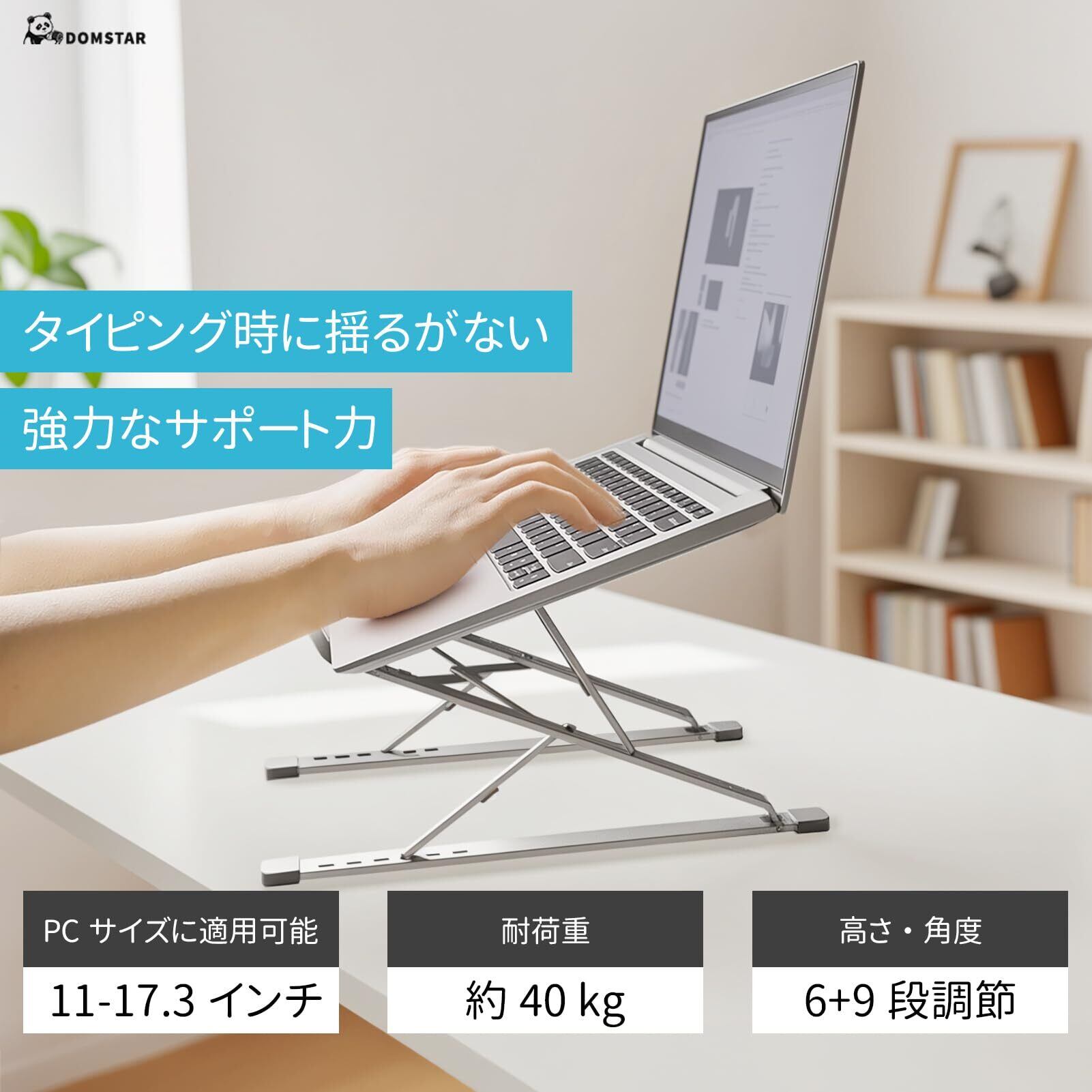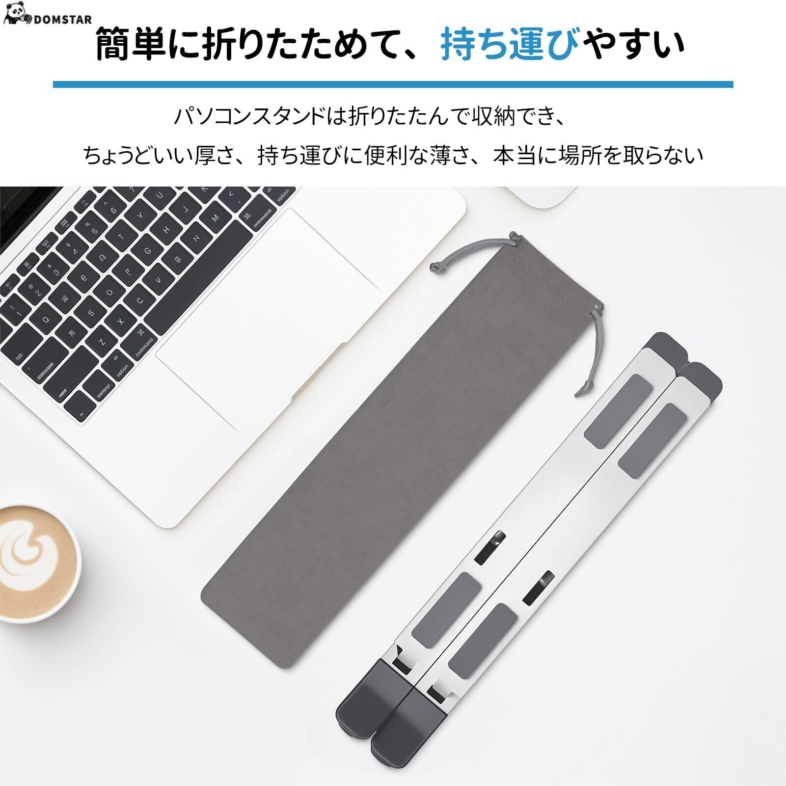 Domstar ノートパソコンスタンド 高さと角度の調整 折りたたみ式 滑り止め 持ち運び アルミ合金製 pcスタンド 収納袋付き シルバー