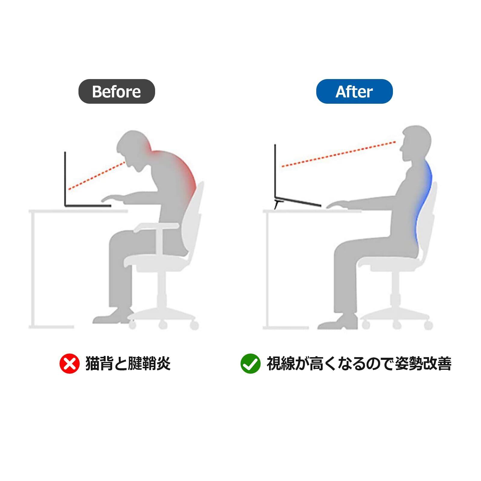 【人間工学的&健康を犠牲にしません】ノートパソコンは非常に機能的ですが、画面が非常に低くなる傾向があります。 これはよく画面を見るために、目や首、背骨にさえ負担をかけなければならないことを意味します。 当社のスタンドは、ノートパソコンの画面を 1 インチに上げ、前傾角度15 °で人間工学的に動作し、姿勢を補正し、デスクでの作業中により快適な体験を実現します。