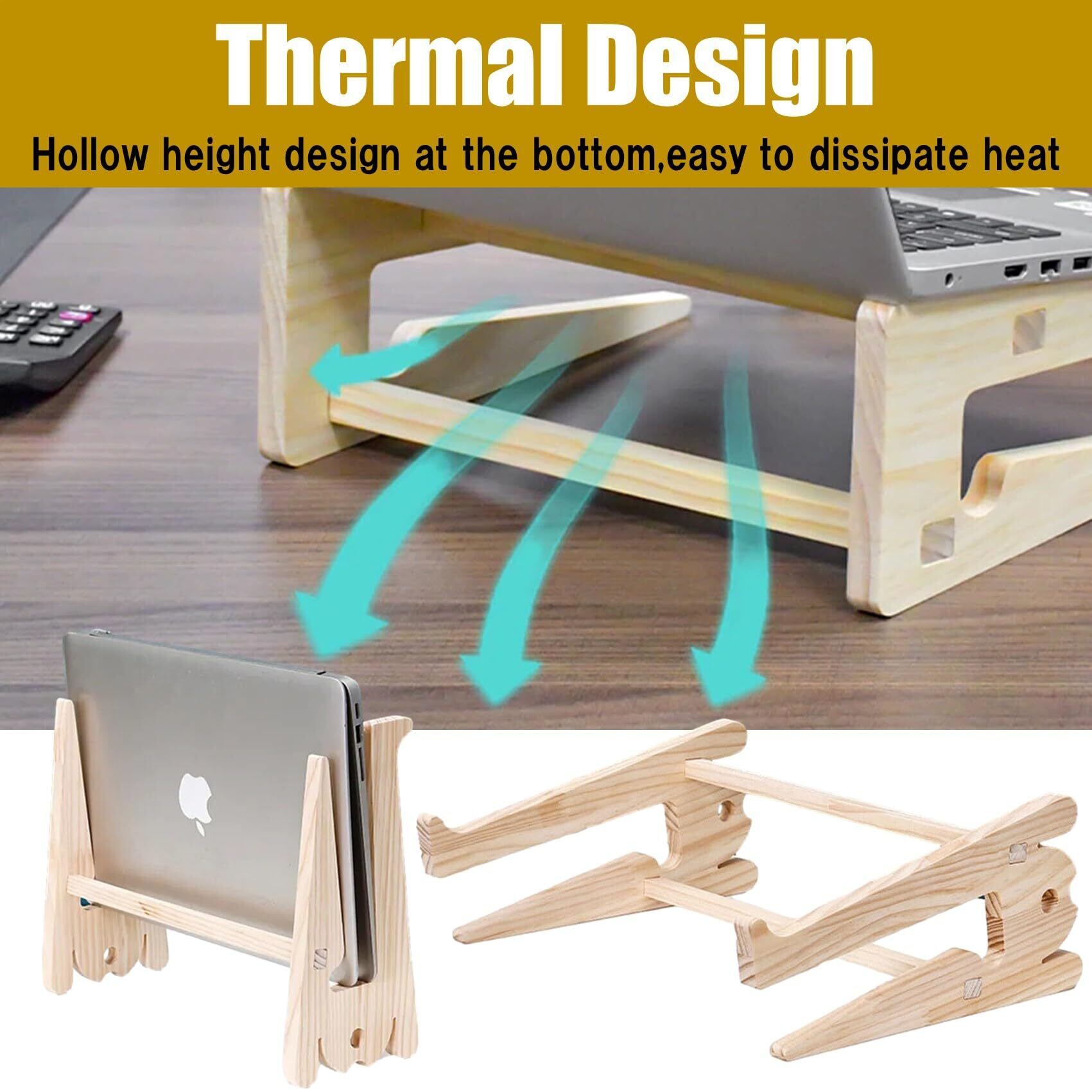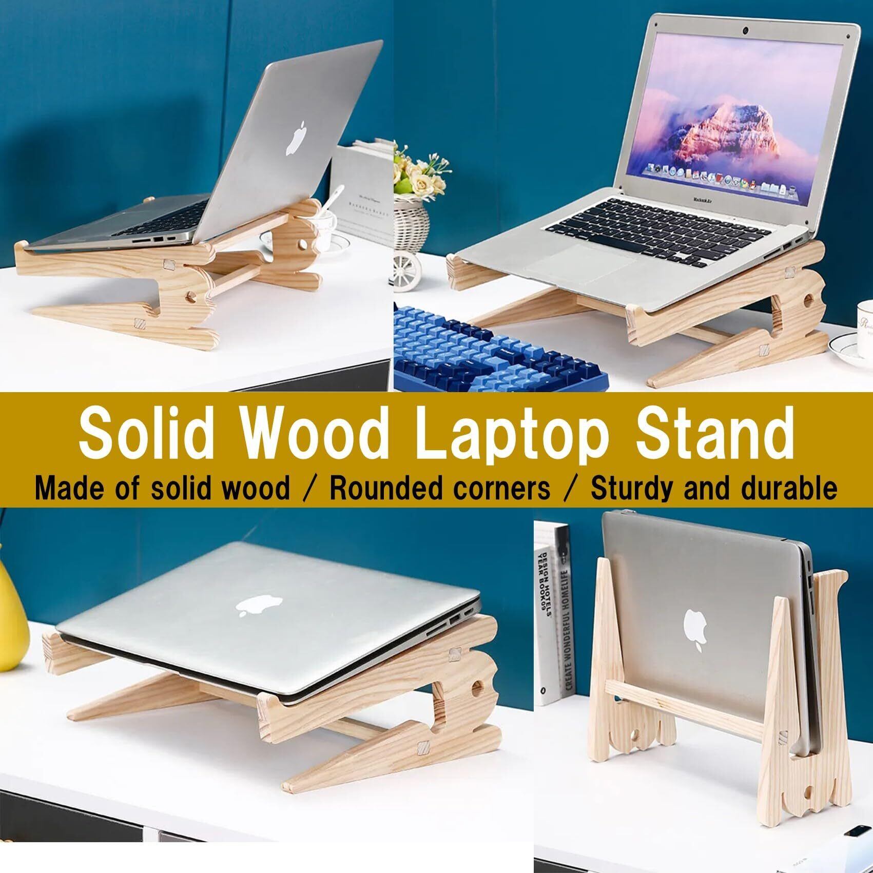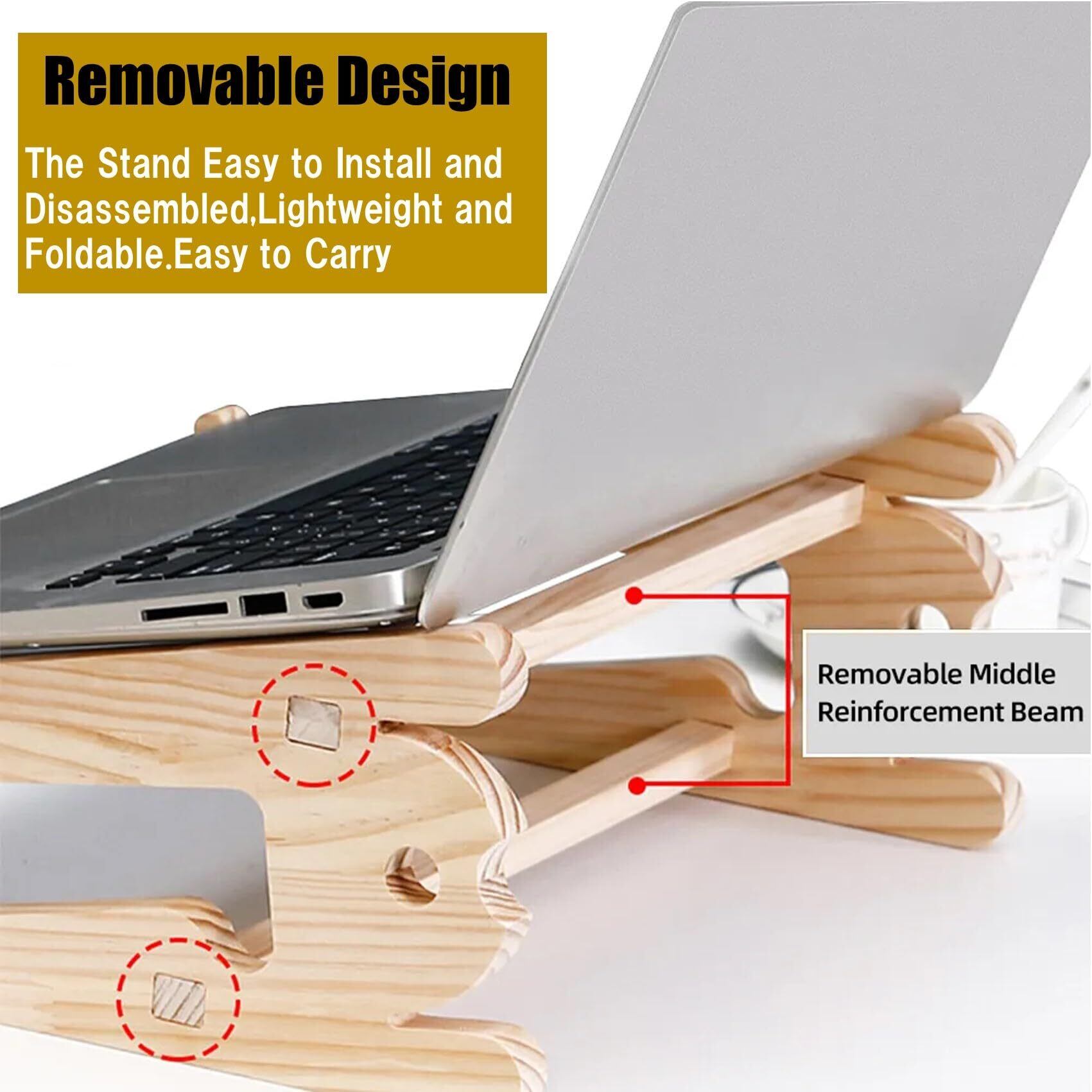 【Removable design】 このノートパソコンスタンドは組立と分解を容易に行うことが可能です。軽量ポータブルで外出時の持ち運びにも便利です。【High quality wood】材質は高品質の無垢材(木材)を使用し、軽量かつ強度と耐久性に優れています。木材のラップトップスタンドは環境にも優しく外観もナチュラルモダンで作業環境を落ち着いた雰囲気にします。