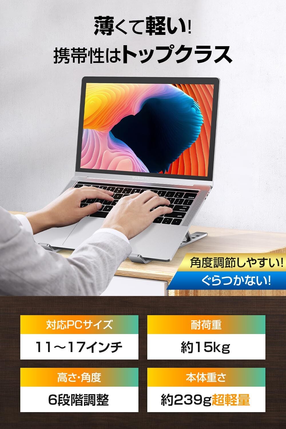 【特価商品】【2023新登場・安定感MAX】 ノートパソコンスタンド 超軽量 パソコンスタンド 折り畳み pcスタンド 人間工学設計 ノートパソコン スタンド 高さ・角度調整可能 姿勢改善 腰痛/猫背解消 ノートpc スタンド 卓上 pc スタンド 滑り止め ノートpcスタンド アルミ合金製 放熱性 laptop stand macbook mac スタンド 11~17インチ対応 (シルバー)