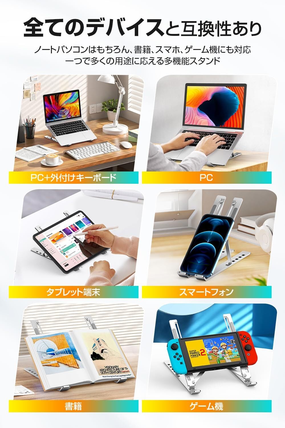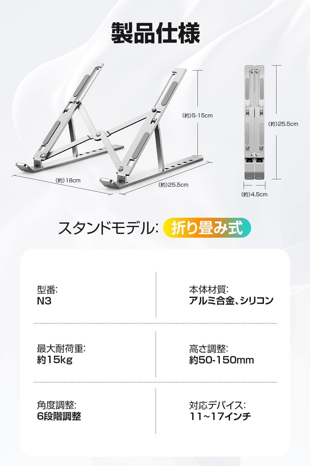 【2023新登場・安定感MAX】 ノートパソコンスタンド 超軽量 パソコンスタンド 折り畳み pcスタンド 人間工学設計 ノートパソコン スタンド 高さ・角度調整可能 姿勢改善 腰痛/猫背解消 ノートpc スタンド 卓上 pc スタンド 滑り止め ノートpcスタンド アルミ合金製 放熱性 laptop stand macbook mac スタンド 11~17インチ対応 (シルバー)