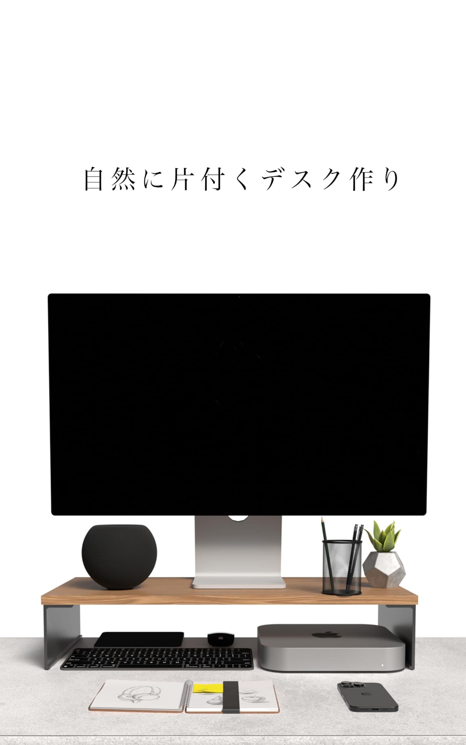 【新春セール】amesoba™ モニタースタンド 卓上 木製 アルミ × 木目天板 二段 (ウッド, シングル)