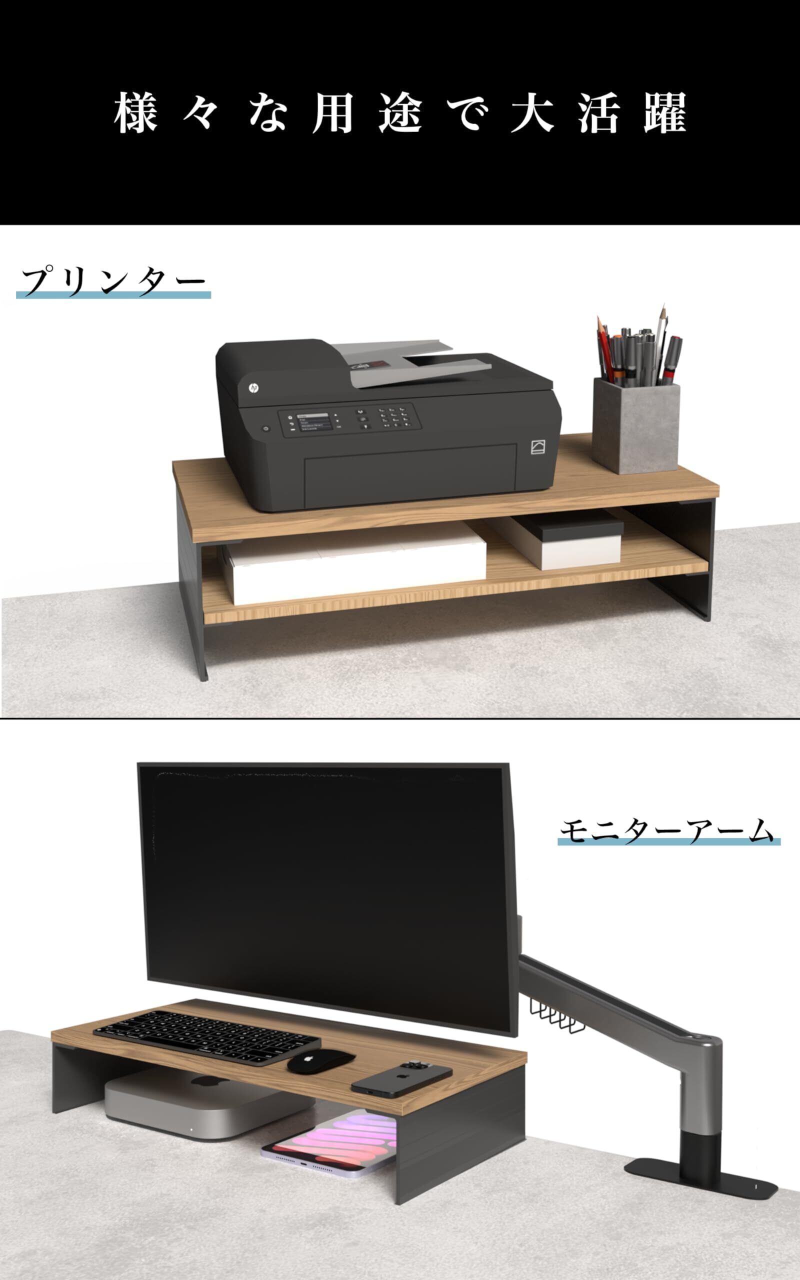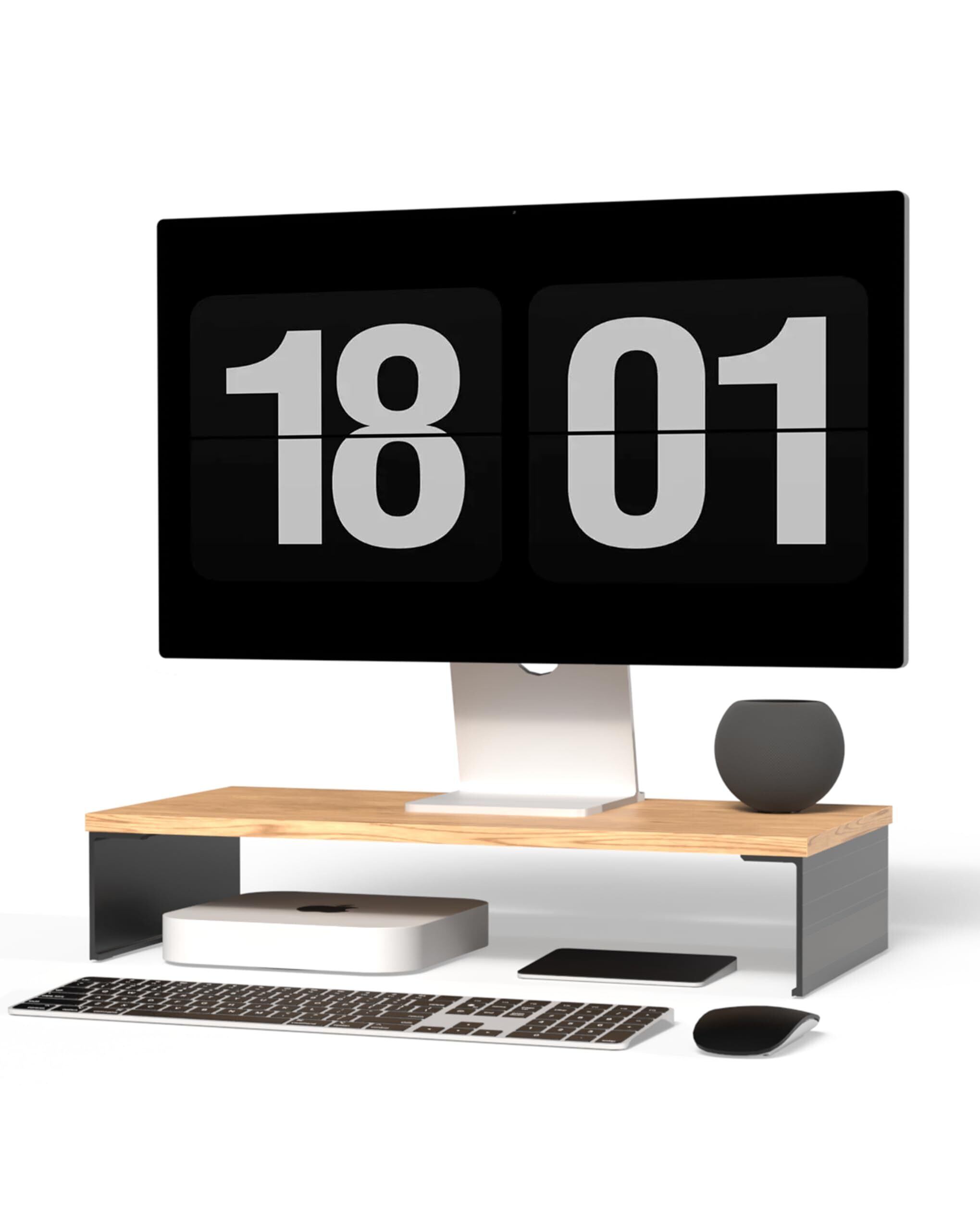 amesoba™ モニタースタンド 卓上 木製 アルミ × 木目天板 二段 (ウッド, シングル)