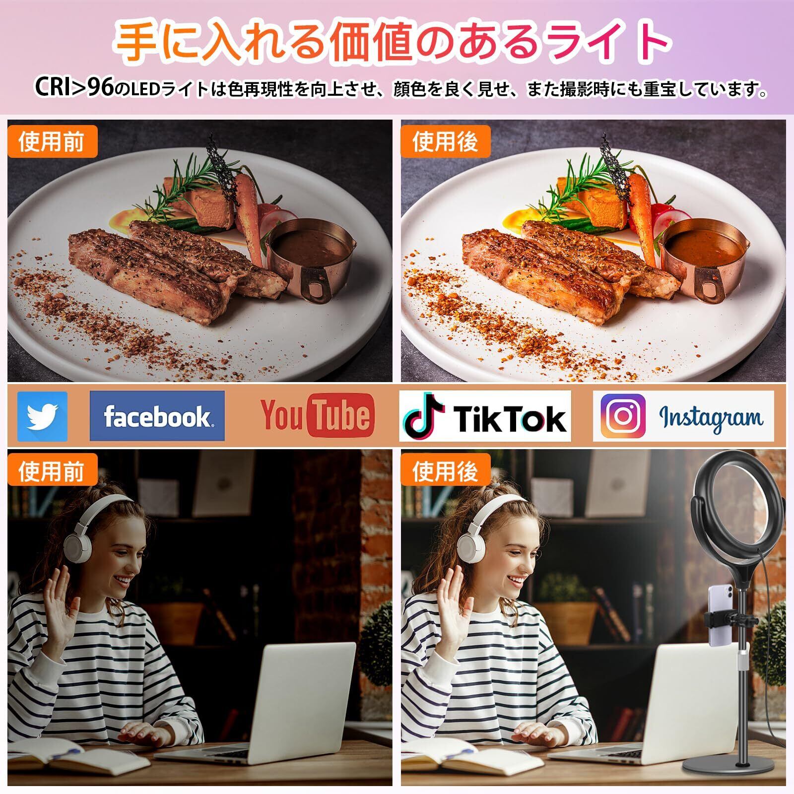 【合金製台座が超大型・安定性抜群】ライトの台座は直径15CMで、重量は453gの合金製の大型円盤で、自重だけでなく一眼レフカメラやビデオカメラなど、最大で4kgまでの重さを支えることができます。このものは卓上撮影用ライトです。デスクスペースを節約するだけでなく、安定性も最高です。動画撮影やライブ配信時に、ライトが倒れたり操作を妨げたりする不都合な状況を防ぎます。安定した光源は、より完璧な作品を撮影するのに役立ちます。